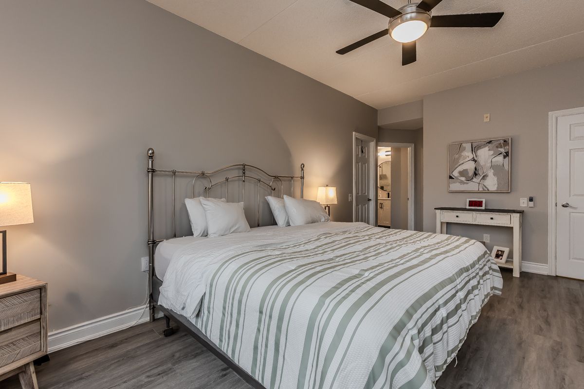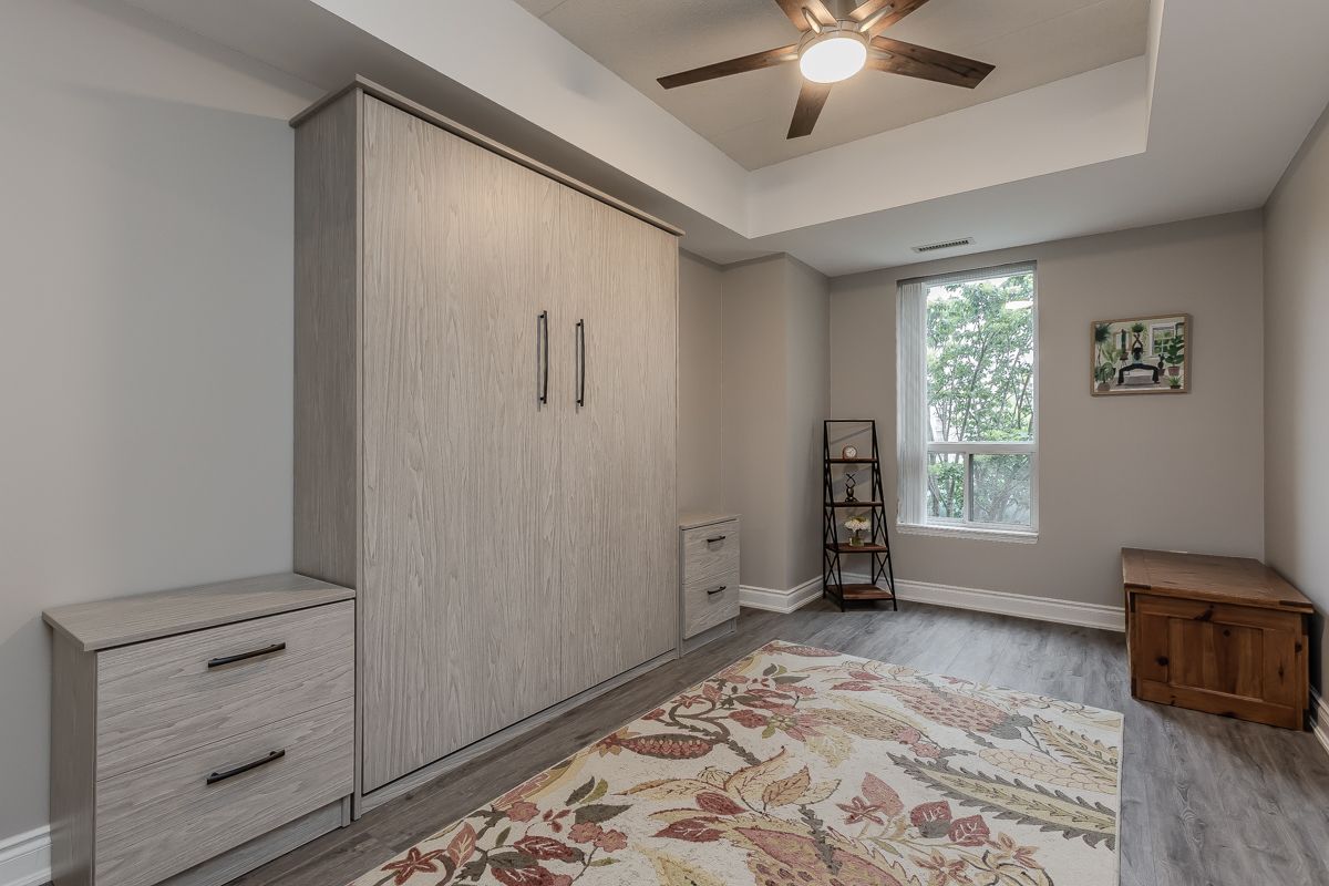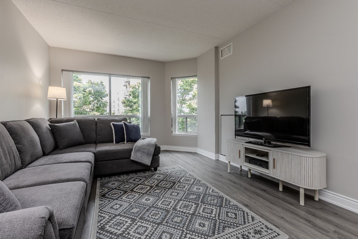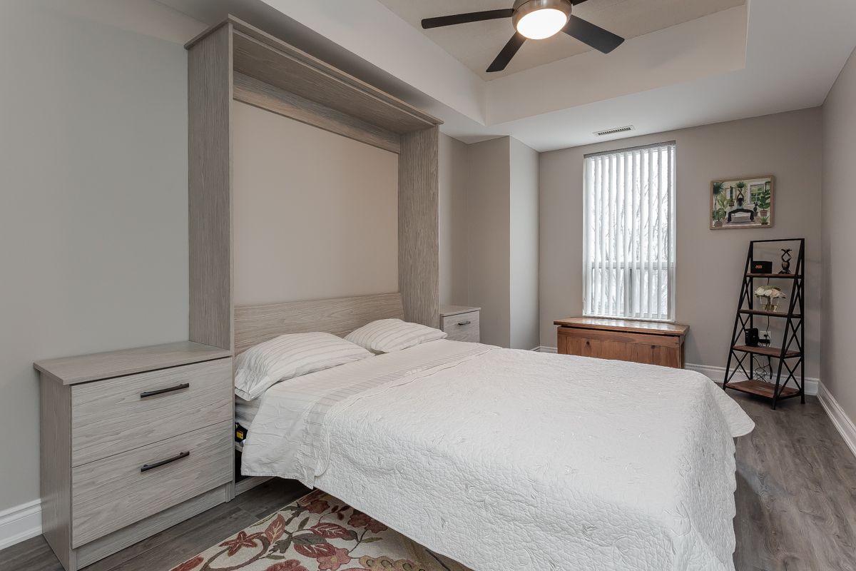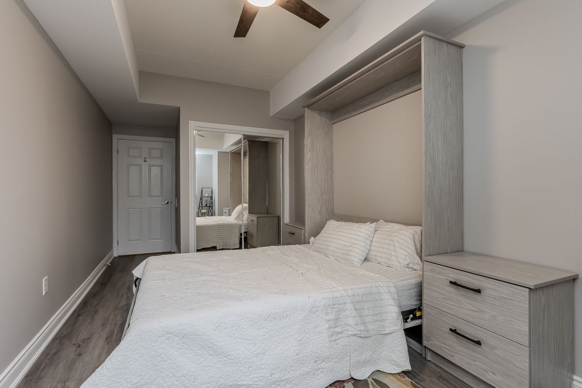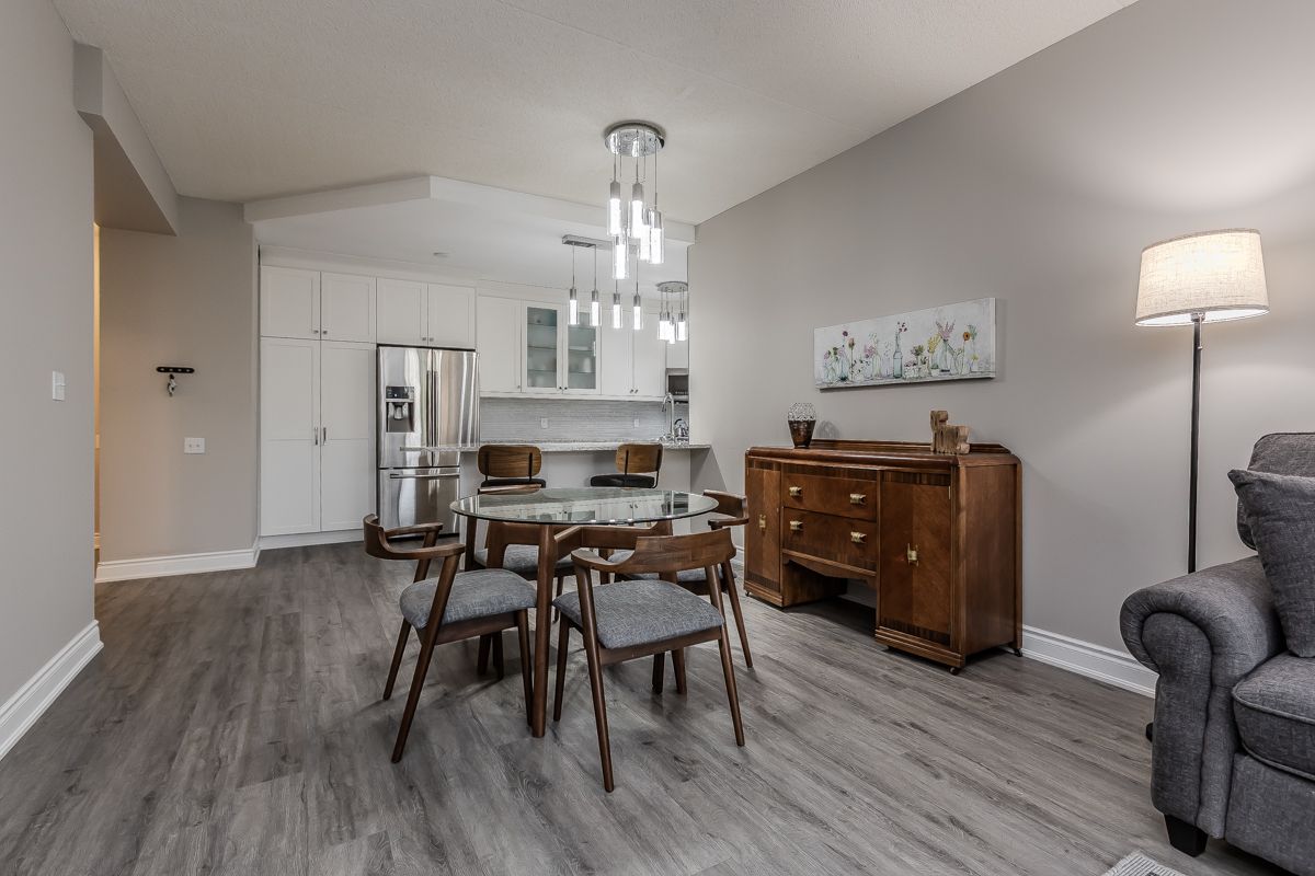 Welcome to this turnkey suite in the highly desirable condominium community of "the balmoral". Offering over 1,200 square feet of thoughtfully designed living space, this luxurious 2-bedroom, 2-bathroom condo comes complete with 2 underground parking spaces and a locker. From the moment you step inside, you'll appreciate the open-concept layout--an ideal blend of style and functionality. The spacious kitchen seamlessly flows into the dining and living areas, perfect for entertaining or relaxing. The kitchen is a true showstopper, featuring quartz countertops, stainless steel appliances, under-cabinet lighting, a beverage fridge, a breakfast bar, a pantry with slide-out drawers, and custom cabinetry throughout. The primary suite offers a peaceful retreat with exclusive access to its private west-facing balcony, a walk-in closet with custom built-ins, and custom 3-piece ensuite complete with a glass shower, vanity, and toilet. The second bedroom is equally versatile, which can easily double as a guest room or home office with easy access to a stylish 3-piece main bathroom. Additional highlights include a spacious in-suite laundry room with extra storage, soaring 9 ceilings, custom built-in closets, recessed lighting, and neutral decor throughout. Enjoy peace of mind with condo fees that even include bell fibe high-speed internet & tv! Building amenities enhance your lifestyle with a party room, exercise room, hobby space, car wash bay, and bbq areas. Ideally located just minutes from tyandaga golf course, shopping, the niagara escarpment, major highway access, and vibrant downtown burlington. This turn-key suite offers refined living in a prime location. Don't miss your opportunity to call it home!