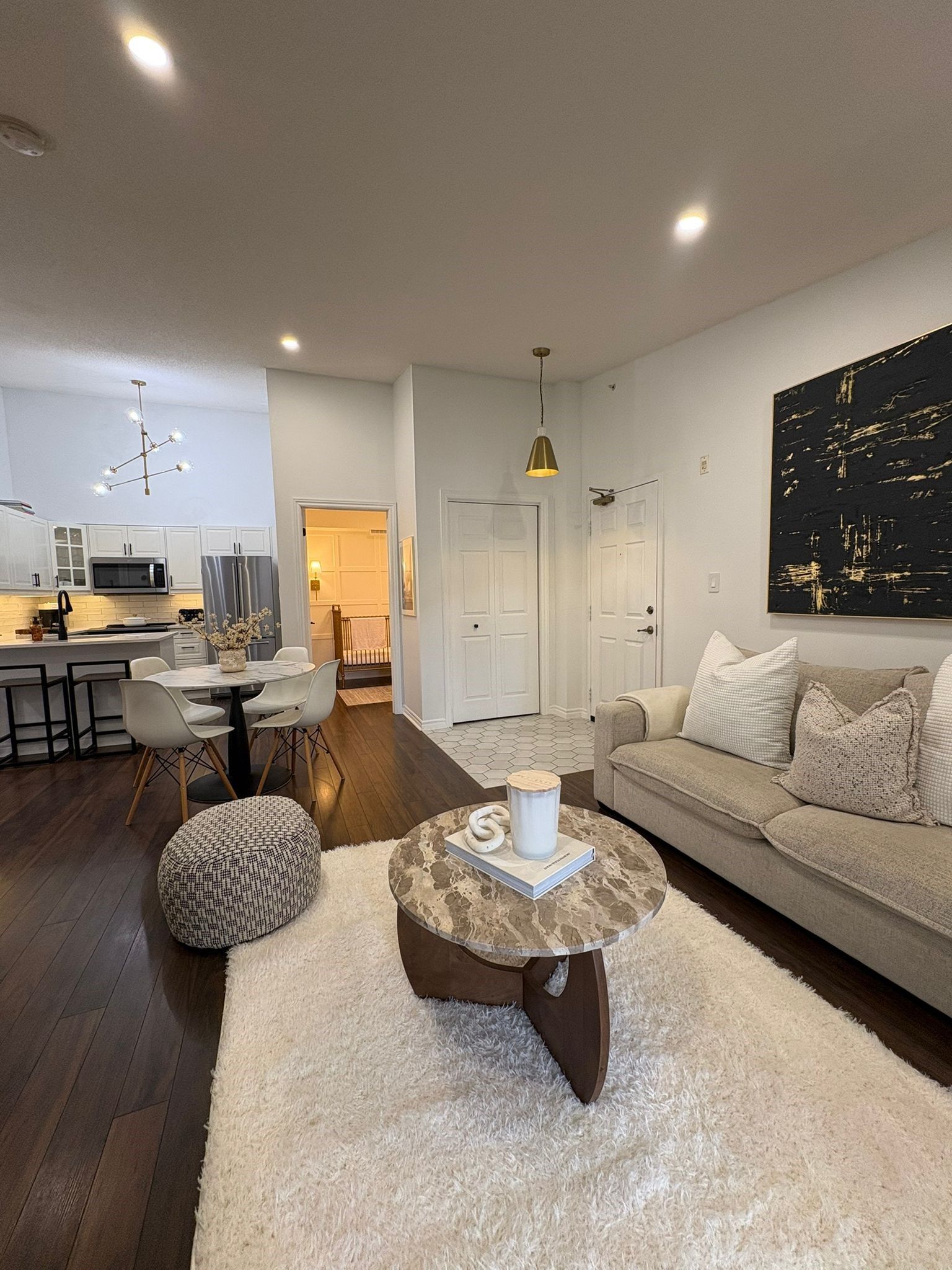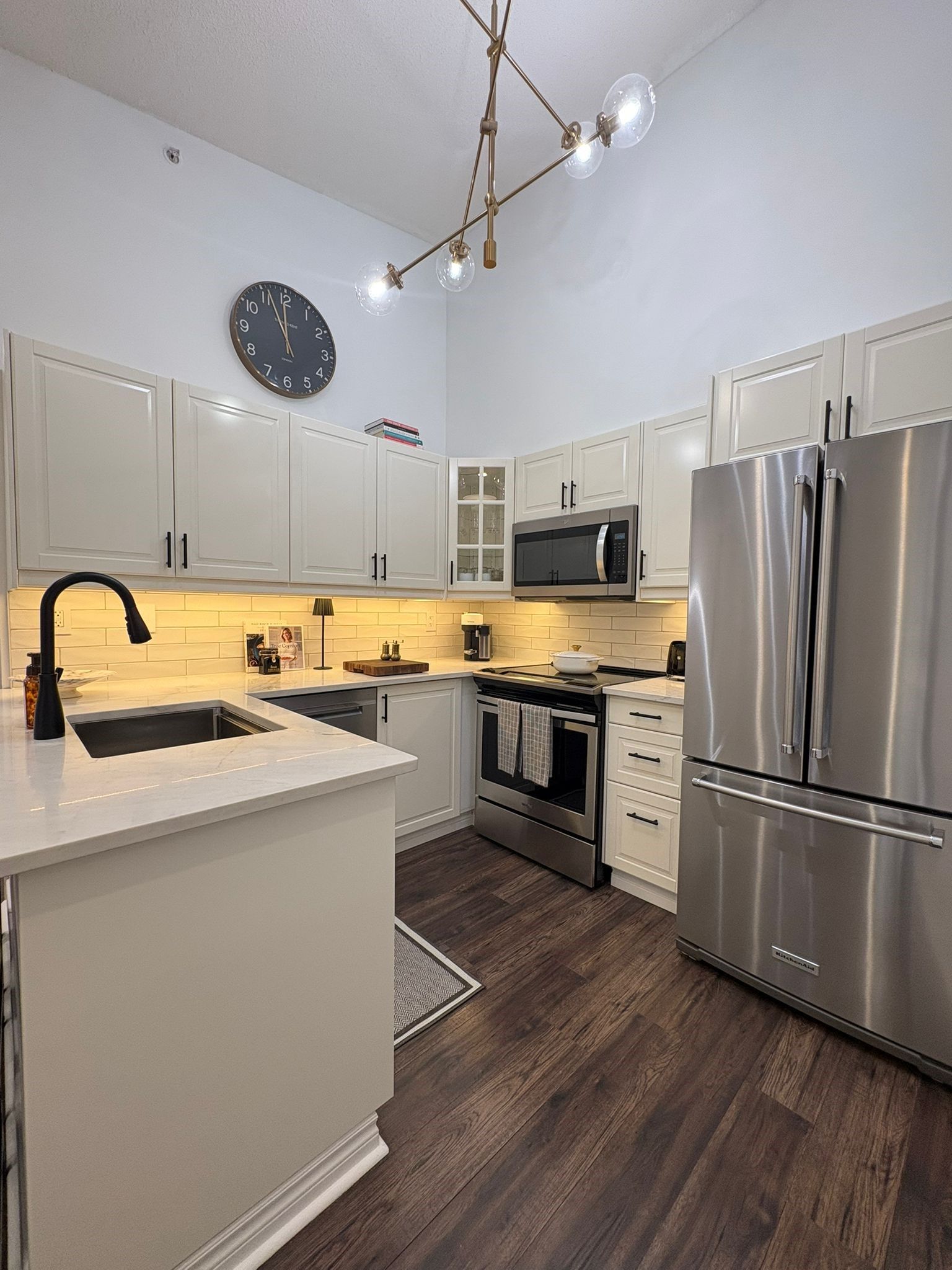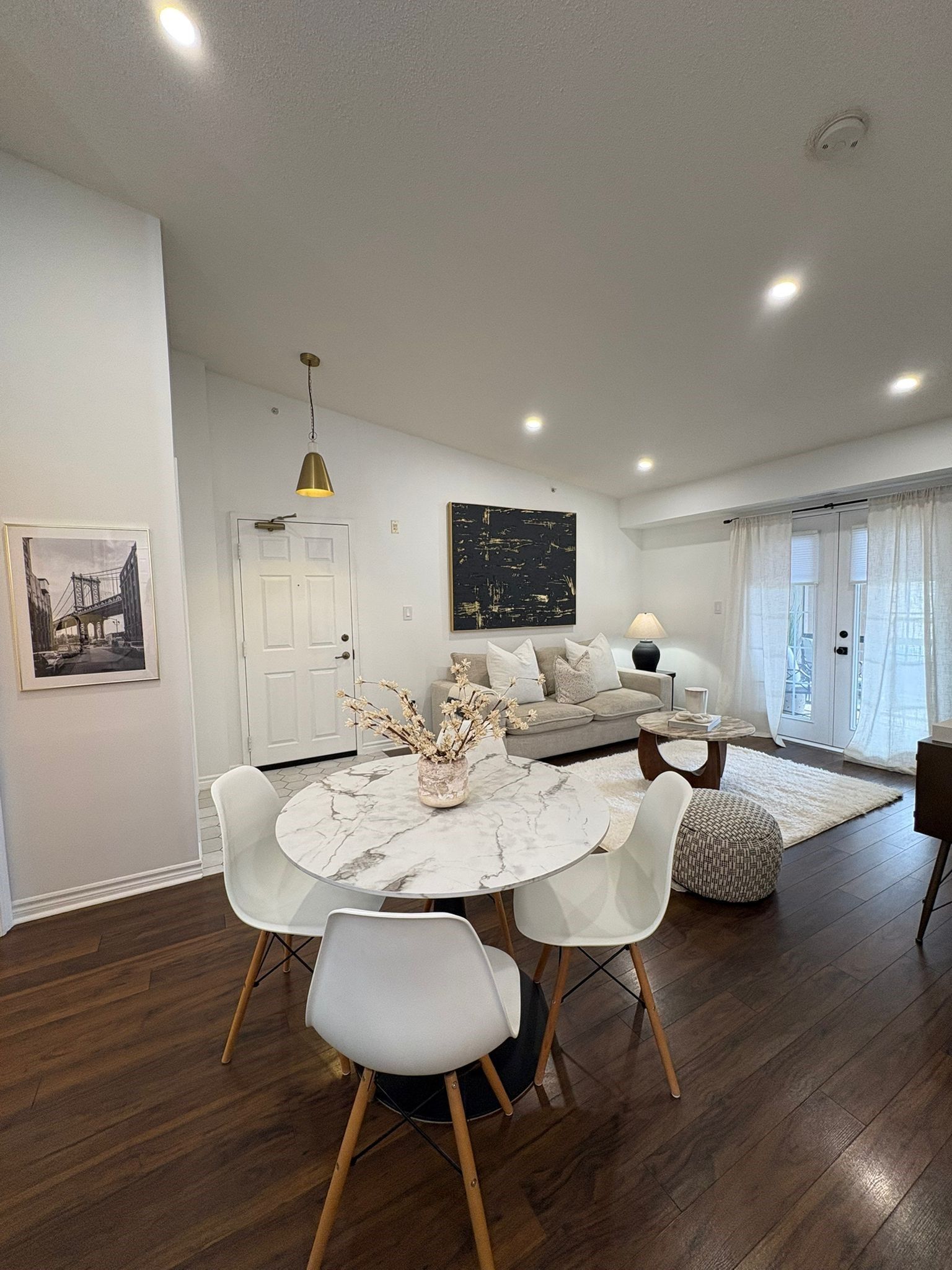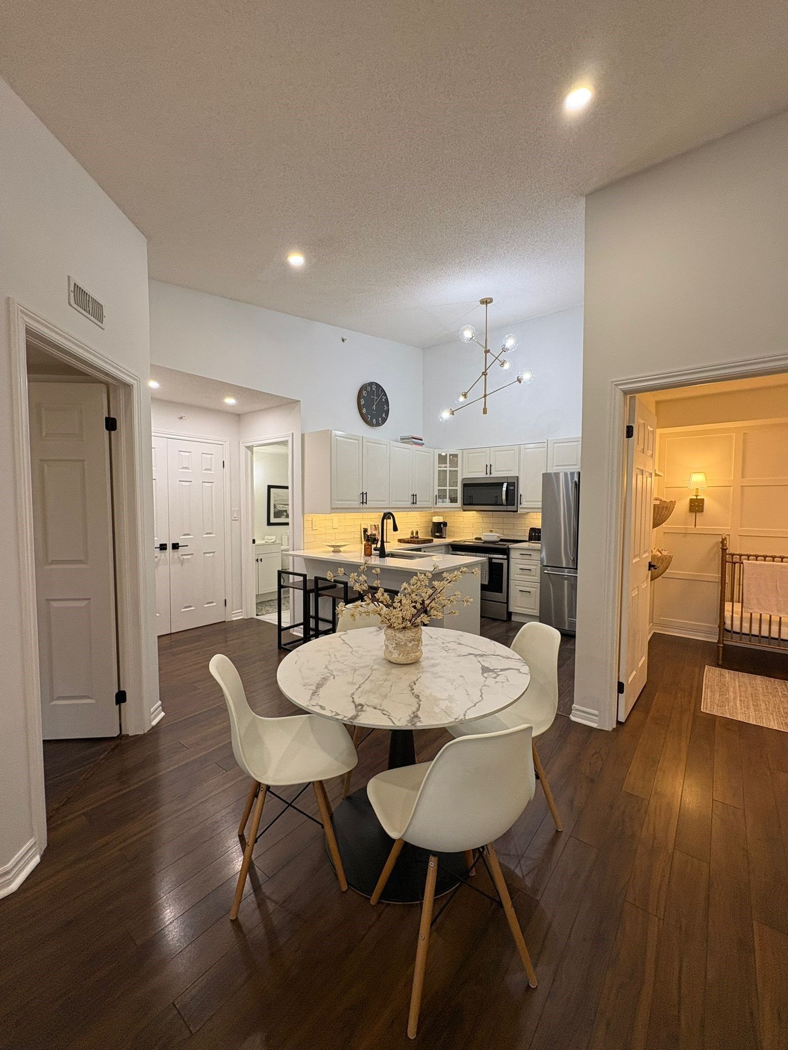 Welcome to this beautifully fully renovated condo in one of burlington's most sought after neighborhoods - the orchard community. This stunning unit features vaulted ceilings that flood the space with natural light, creating an airy and inviting atmosphere. The modern kitchen is thoughtfully updated with stylish finishes, perfect for both everyday living and entertaining. Every detail in this home has been carefully upgraded, offering a truly move in experience. Enjoy the convenience of your own dedicated parking space, along with the rare bonus of unlimited guest and resident parking, ideal for hosting family and friends. This unit also includes two owned lockers, providing exceptional storage space. Perfectly located just minutes from the go train and major highways, commuting is a breeze. With parks, trails, shopping, and top rated schools nearby, this condo offers the ideal blend of comfort, style and convenience.