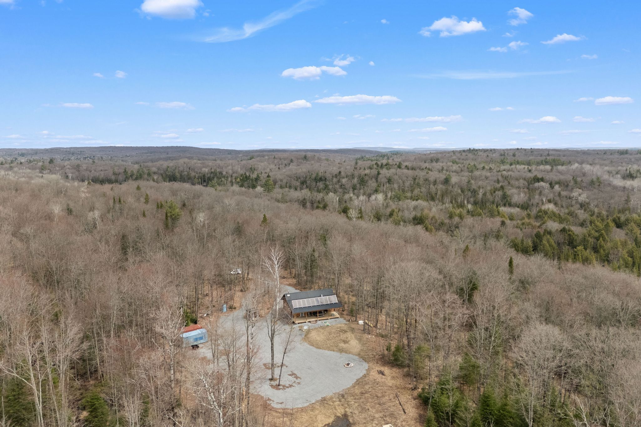 Discover a life of serene independence in this stunning 3 bedroom log home, privately situated on nearly 200 acres bordering vast crown land. Embrace the warmth of an open-concept layout enhanced by the luxurious comfort of in floor heating throughout. Experience true self-sufficiency with abundant solar power and ample energy storage, complemented by a backup generator. Stay connected with excellent cell phone service amidst your natural retreat. Nature lovers will love the incredible array of wildlife that roams freely on the property, including deer, moose, bear, turkey, and more. Explore your own extensive network of trails in your own backyard. Adventure is just moments away with multiple pristine lakes offering endless recreational opportunities. Winter enthusiasts will appreciate the close proximity to fantastic snowmobile trails. This exceptional property isn't just a residence; it's an invitation to embrace a lifestyle of natural beauty, unparalleled privacy, and boundless outdoor adventure.