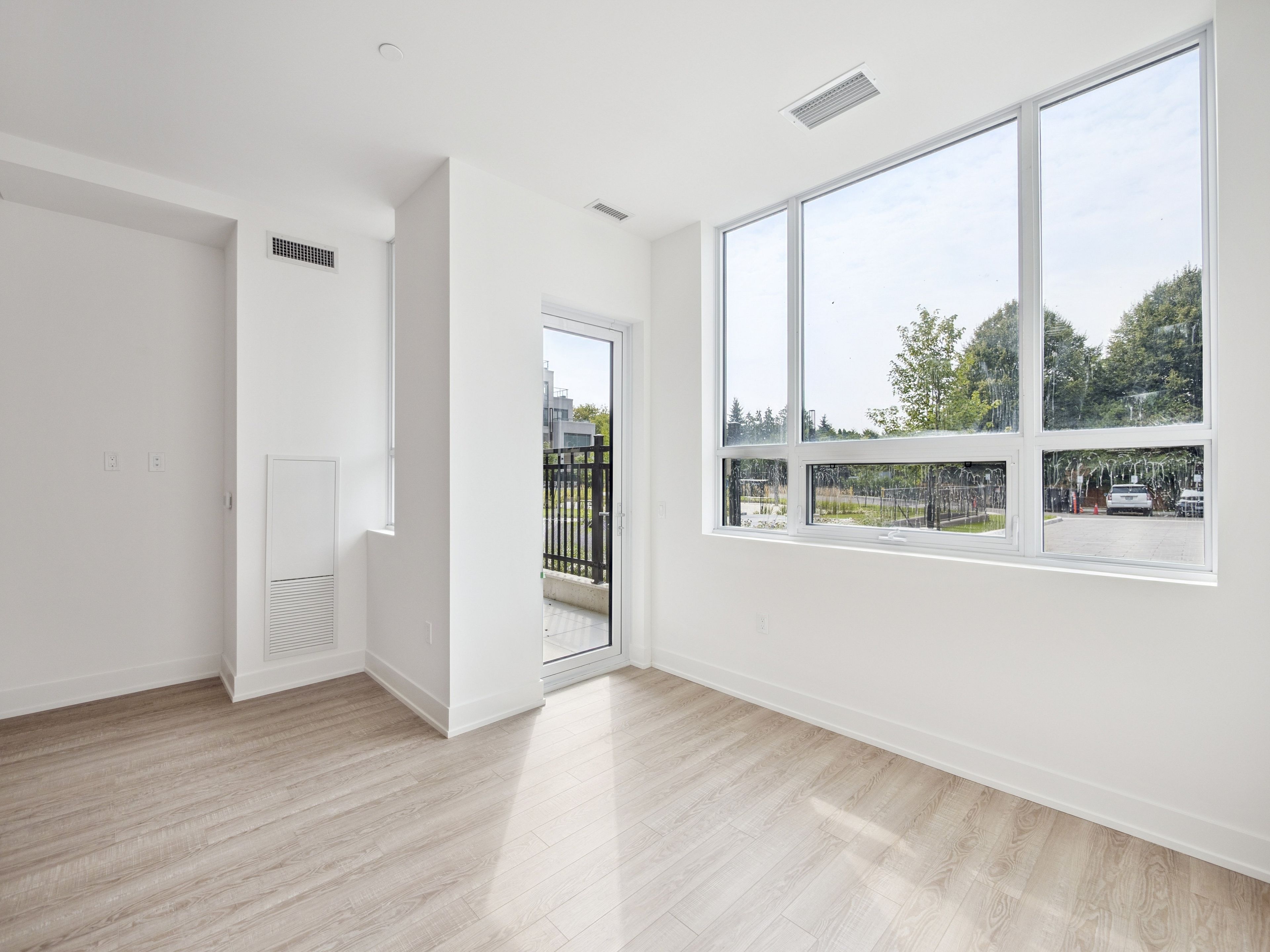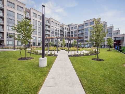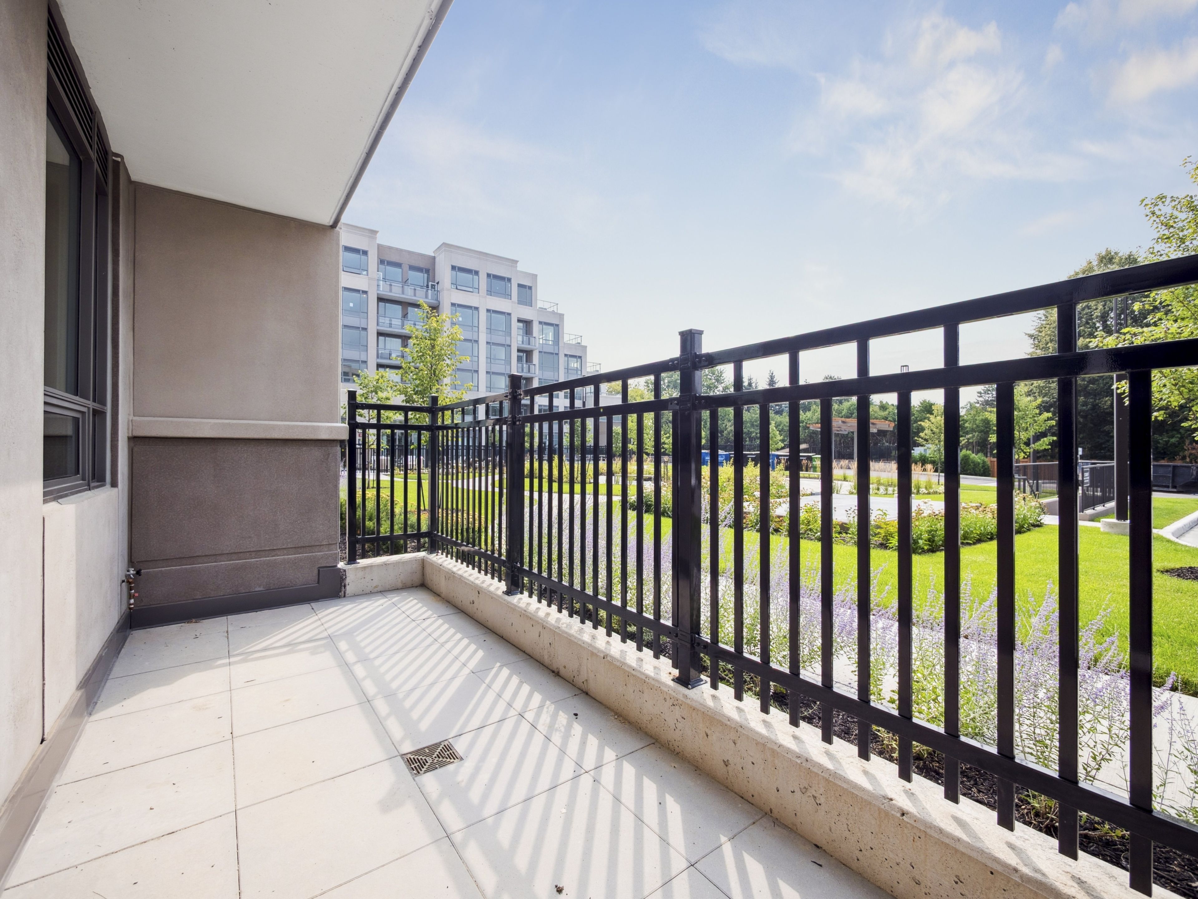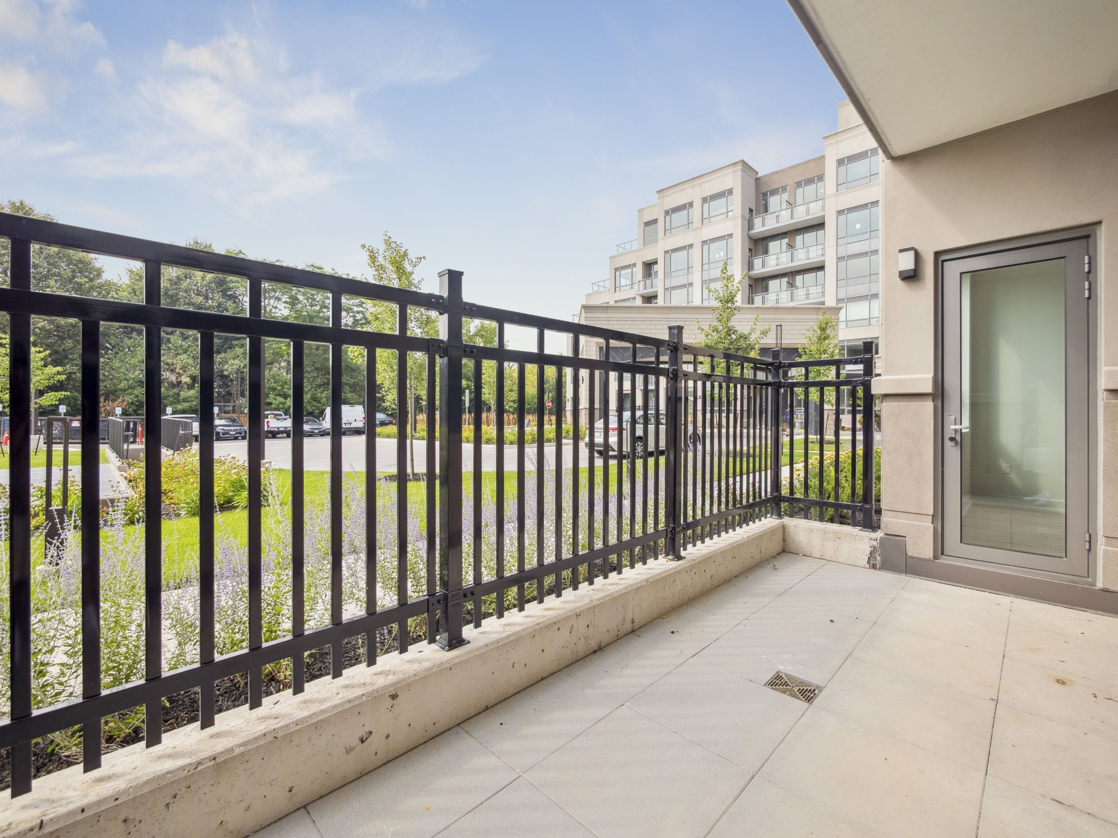 Welcome to king terrace - the newest addition to the king city condo community. Located in the heart of king city, this condo is located on the main floor and the terrace view faces south onto the outdoor area of the complex. The unit offers 10ft ceilings, open concept kitchen, laminate floors, a primary bedroom with ensuite, a secondary bedroom with frosted glass sliding doors, and second bathroom