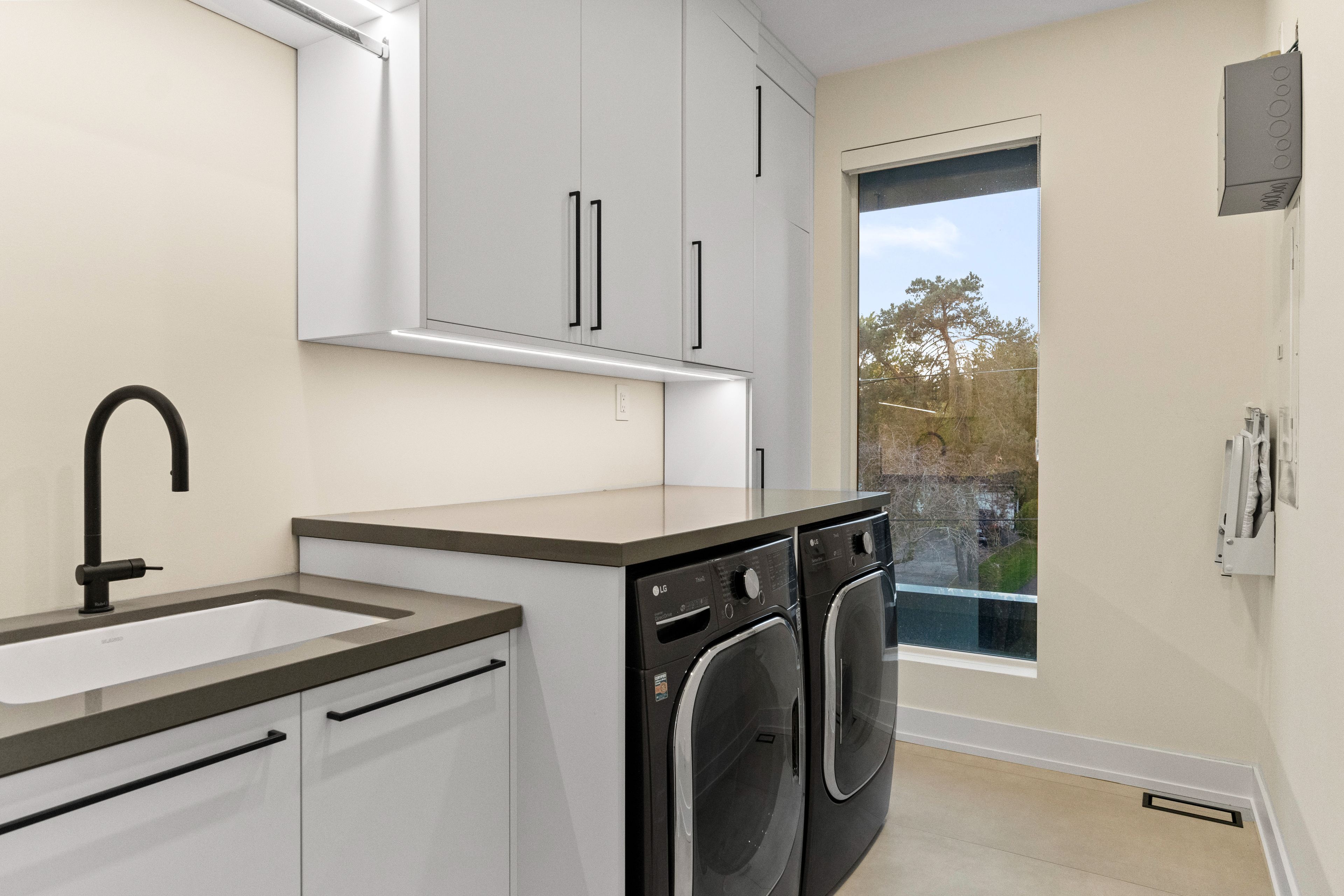 • Chef's kitchen with quartz countertops and integrated appliances for effortless cooking.