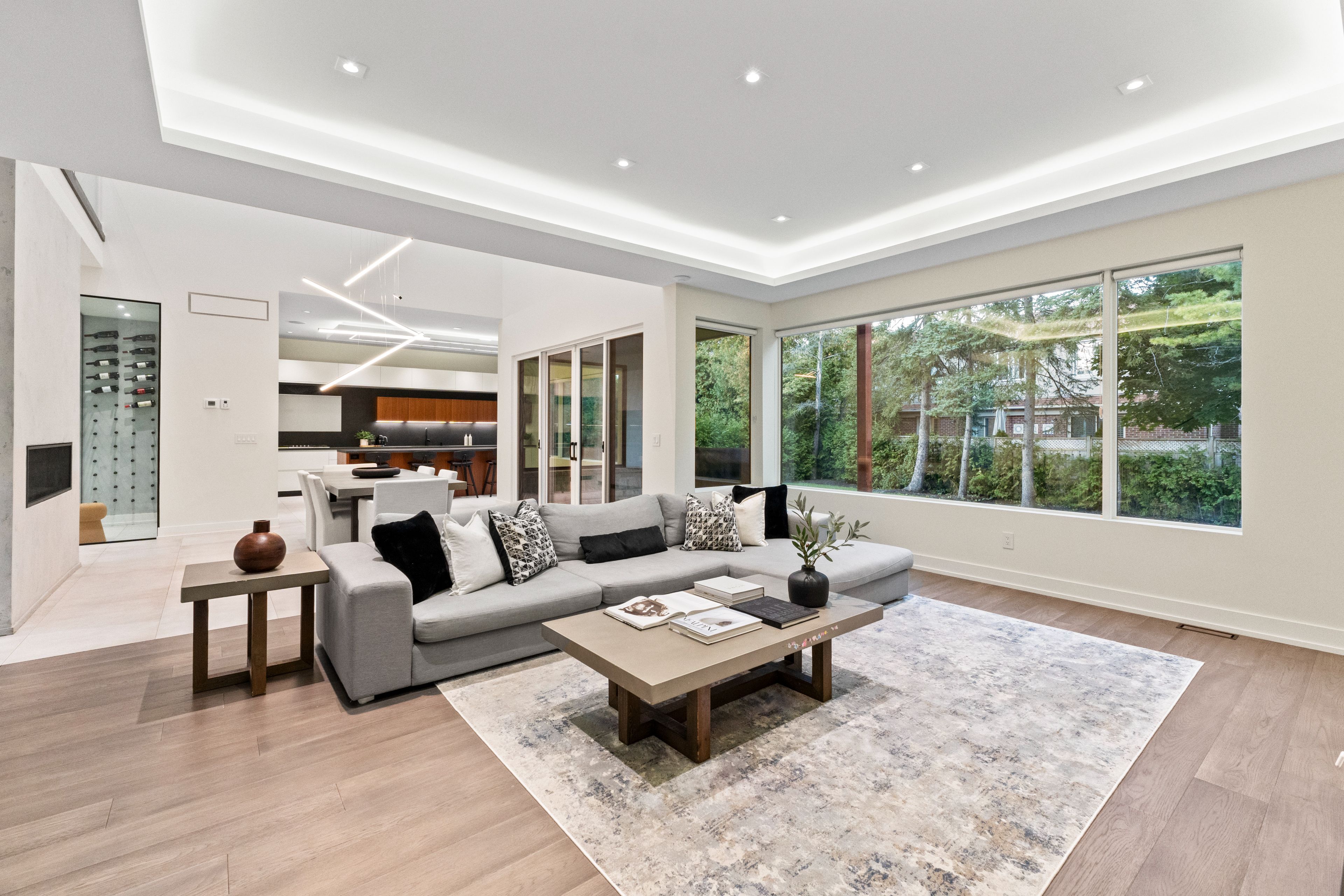 • Light-filled interiors with oversized windows and elegant architectural details.