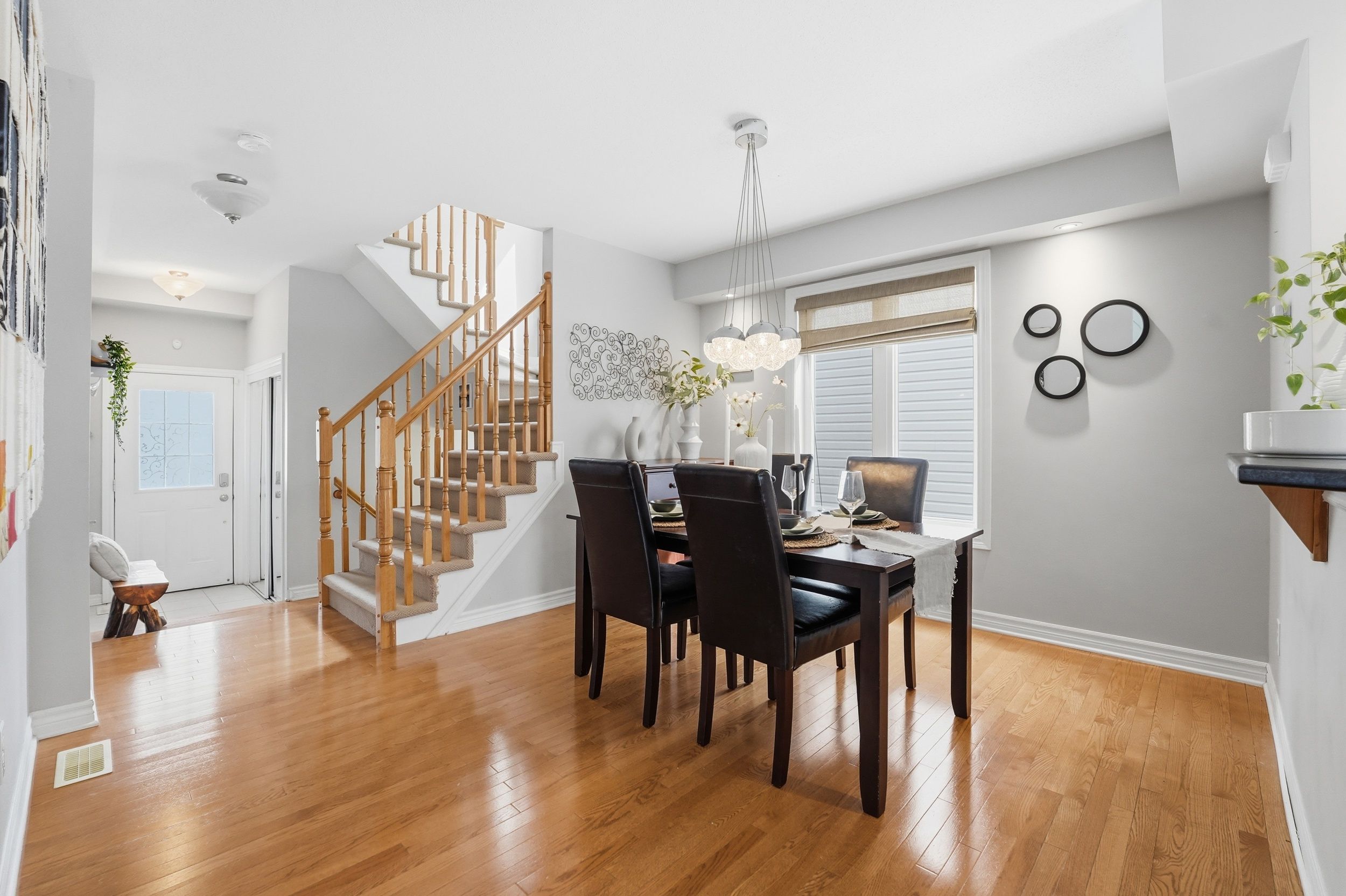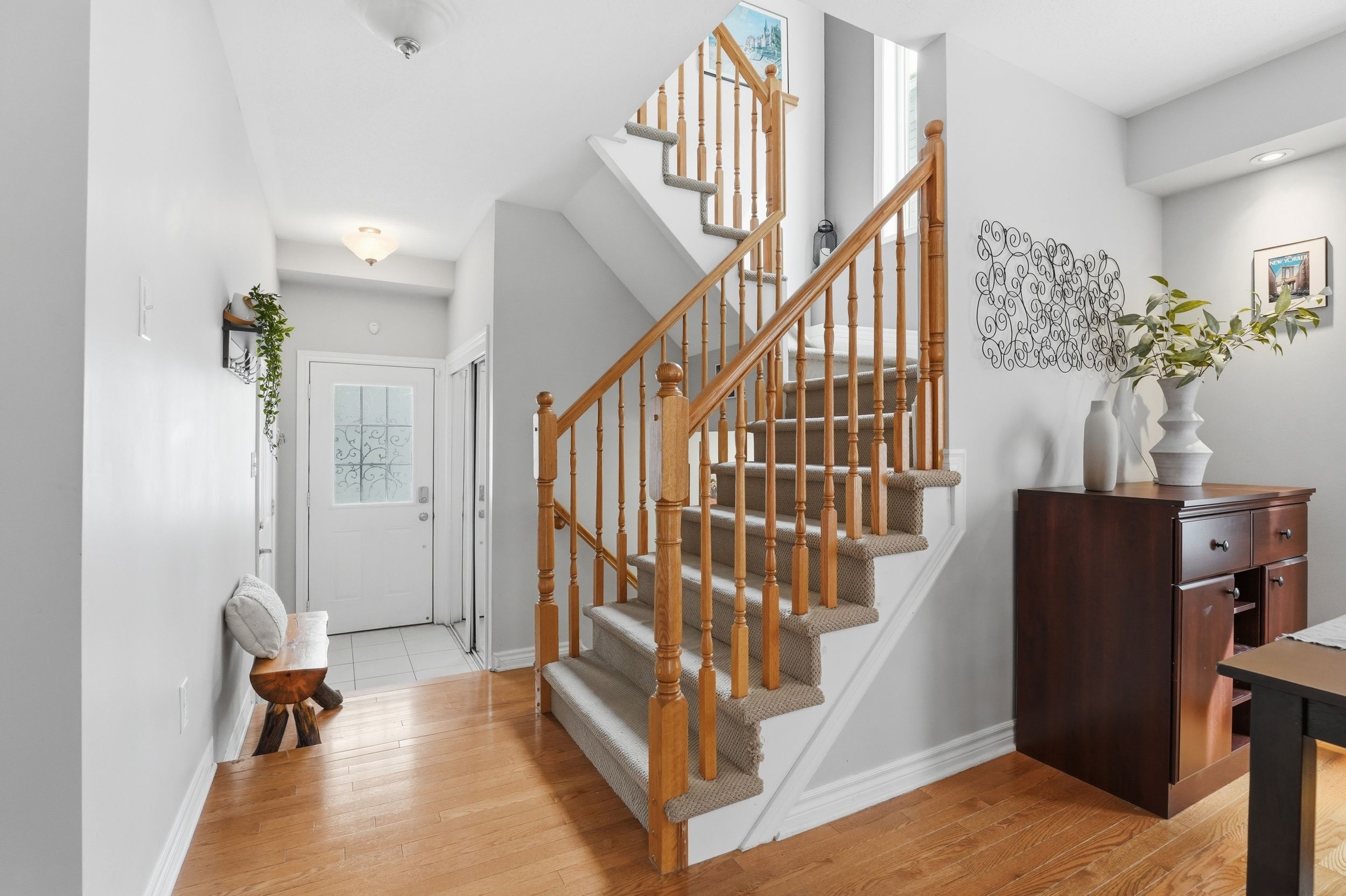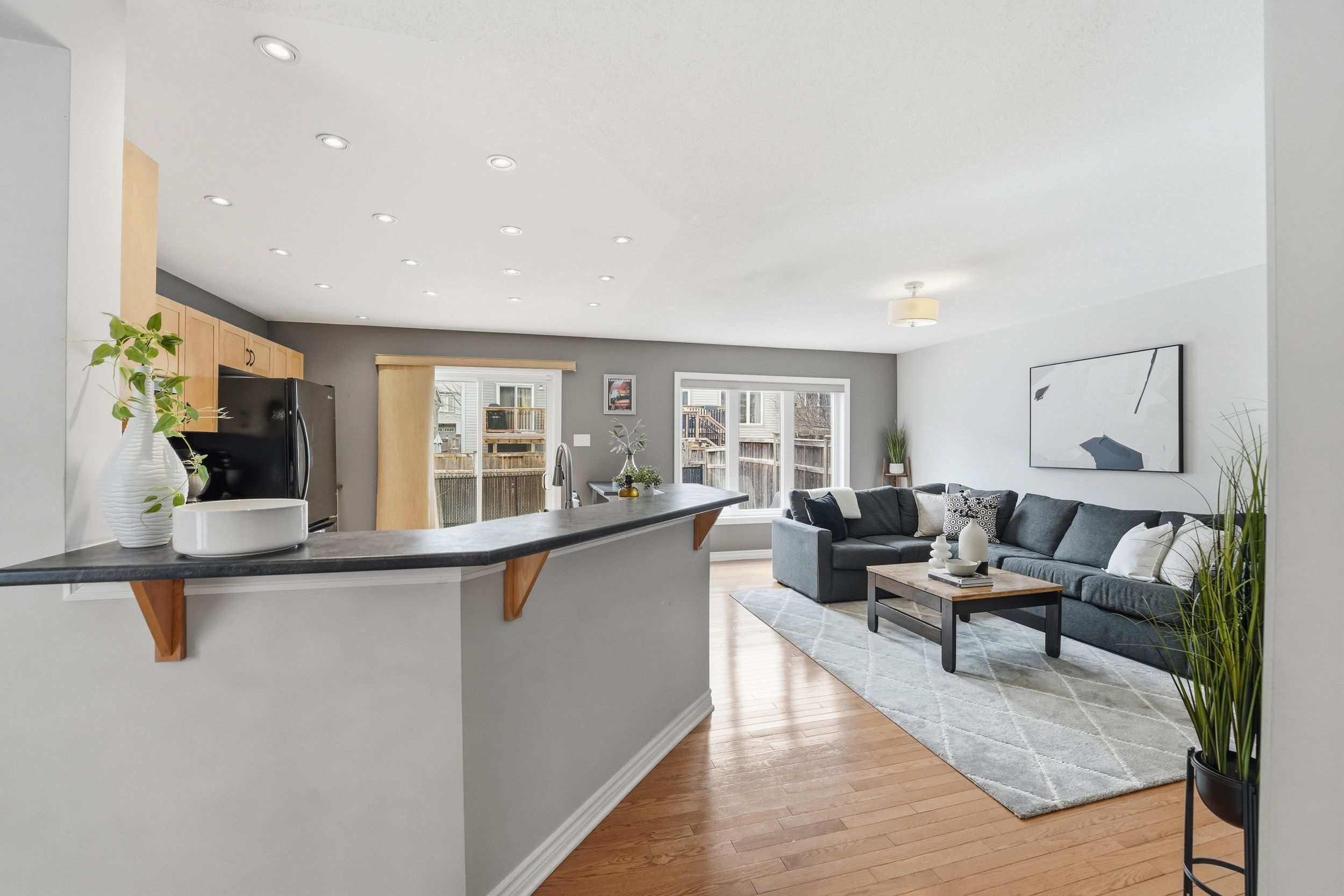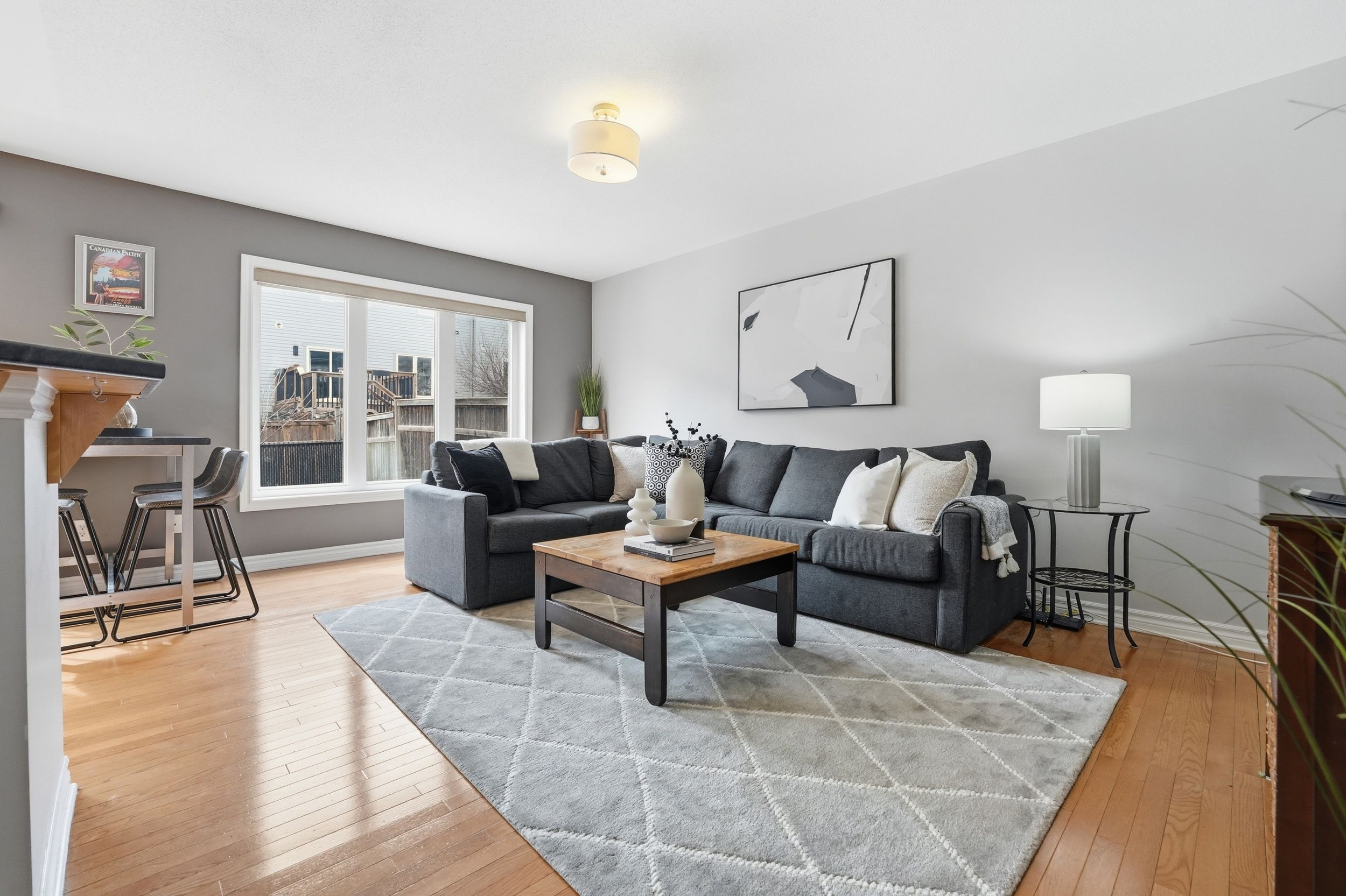 This end-unit townhome is nestled on a quiet, family-friendly street in sought-after fairwinds. The bright and spacious main level features an open-concept kitchen, living, and dining area-perfect for everyday living and entertaining. The kitchen offers upgraded appliances, stylish backsplash, and a convenient breakfast bar, while large windows throughout the home flood the space with natural light. Upstairs you'll find generously sized bedrooms, including a primary retreat with a large walk-in closet and private ensuite with shower. Fresh paint in the front bedroom and ensuite (2025) adds a crisp, modern touch. The second-floor laundry provides everyday convenience. The professionally finished basement features pot lights throughout and a raised floor, creating a comfortable additional living space along with plenty of storage. Step outside to a fully fenced backyard-ideal featuring an updated interlock back patio perfect for relaxing or entertaining. Recent updates include a new shingles (2025), hot water tank (2025), and dishwasher (2025) for added peace of mind. Conveniently located just a short walk to transit and close to the canadian tire centre, highway 417, restaurants, and shopping.