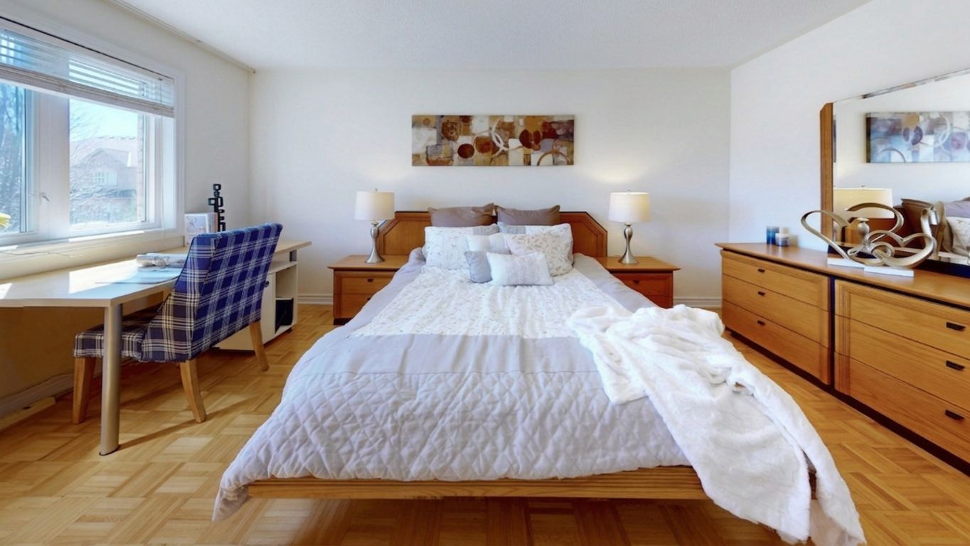 Refined end-unit townhome in sought-after thornhill woods. Step into this bright and meticulously cared-for end-unit townhome offering well-designed living space in the highly desirable thornhill woods neighbourhood. The property includes 3 spacious bedrooms and 4 bathrooms, highlighted by a large primary bedroom complete with a walk-in closet and a private 4-piece ensuite. The main level showcases 9-foot ceilings, a modern open-concept layout, and a fully finished basement with a 3-piece bathroom-perfect for use as a guest suite, home office, or recreational area. Recent upgrades include brand new lighting fixtures, newly installed interlock walkway (2025) and a brand-new deck (2025), ideal for outdoor enjoyment and entertaining. With no sidewalk, the home offers generous parking options, and its practical layout suits both families and working professionals. Ideally situated within walking distance to highly rated schools, parks, trails, shopping, dining, a community centre, and public transit, this location delivers exceptional convenience.