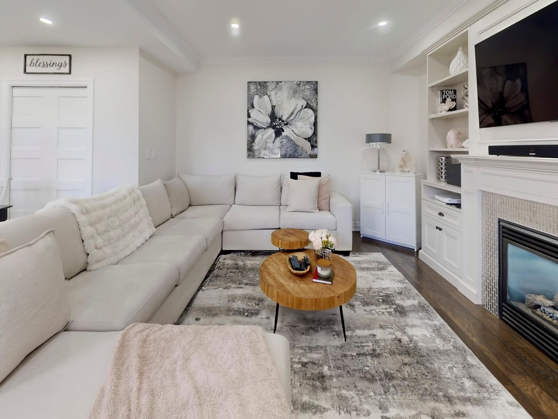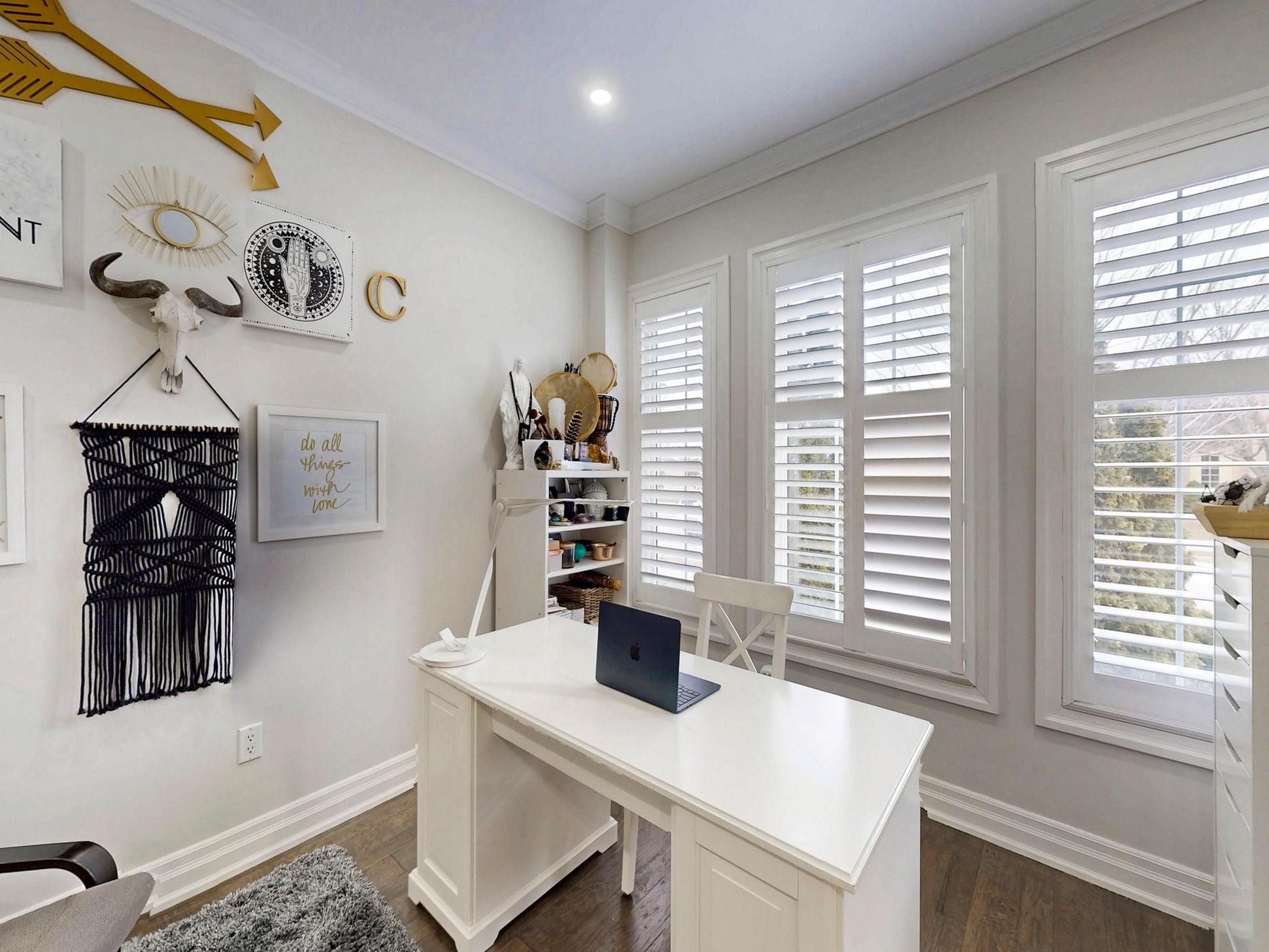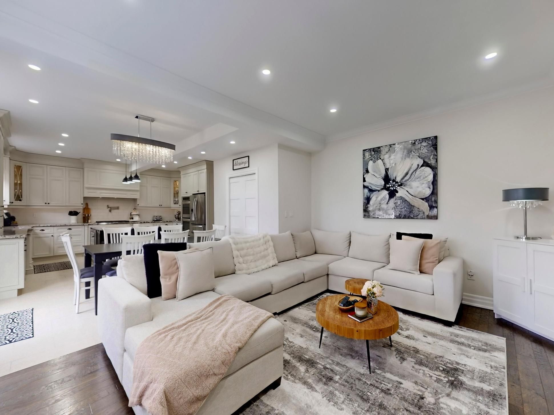 • Modern open-concept layout with pot lights and California shutters.
