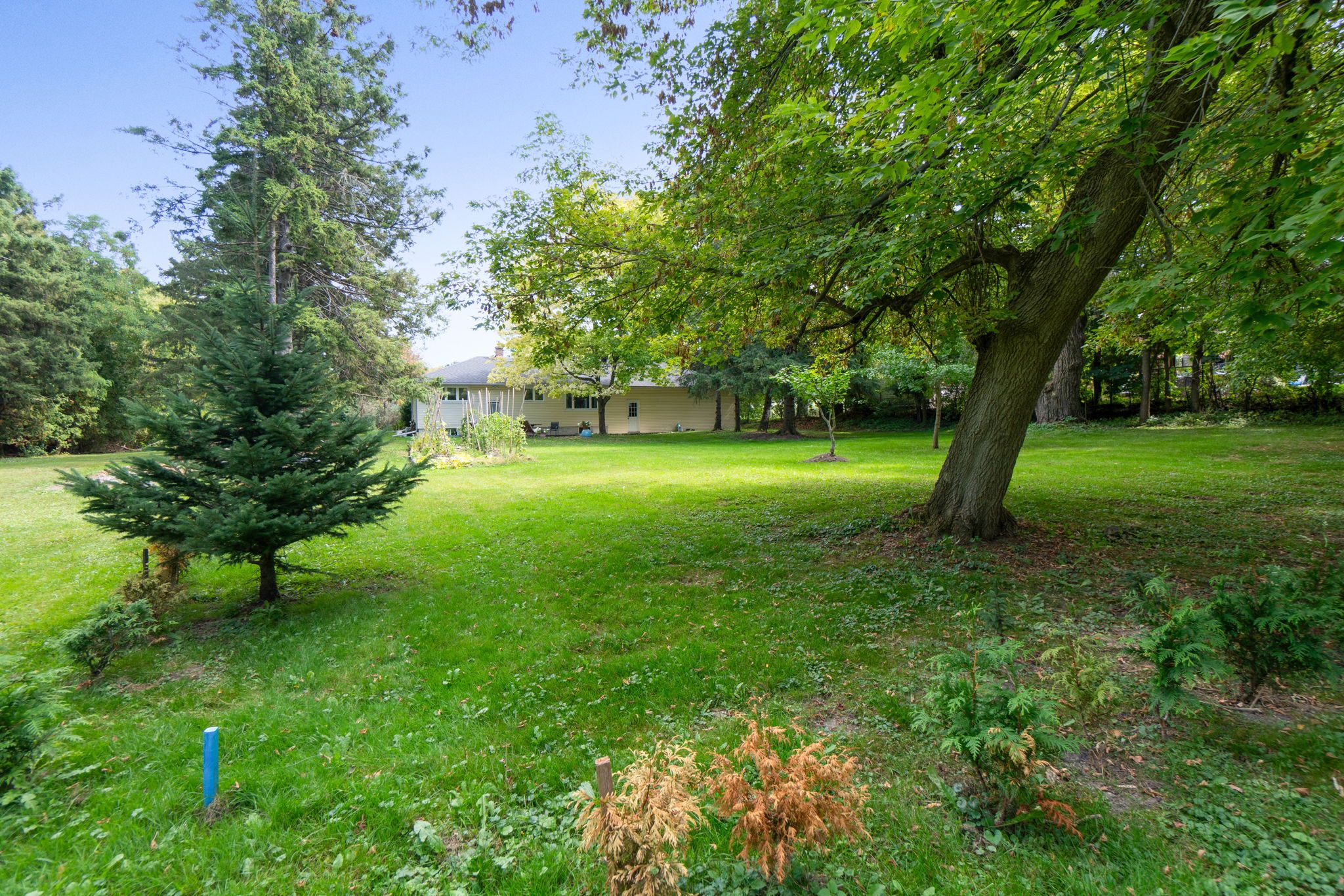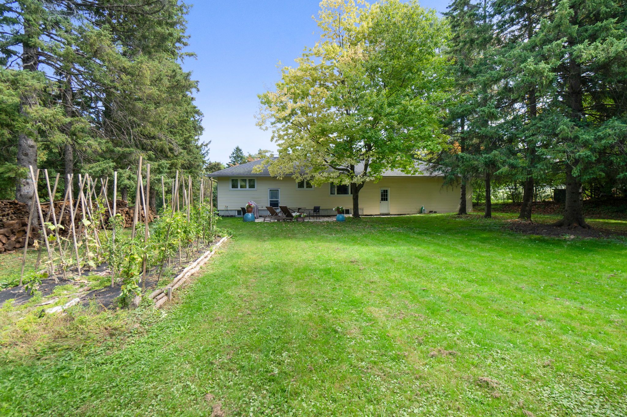 • Large backyard offers serene views and plenty of outdoor space.