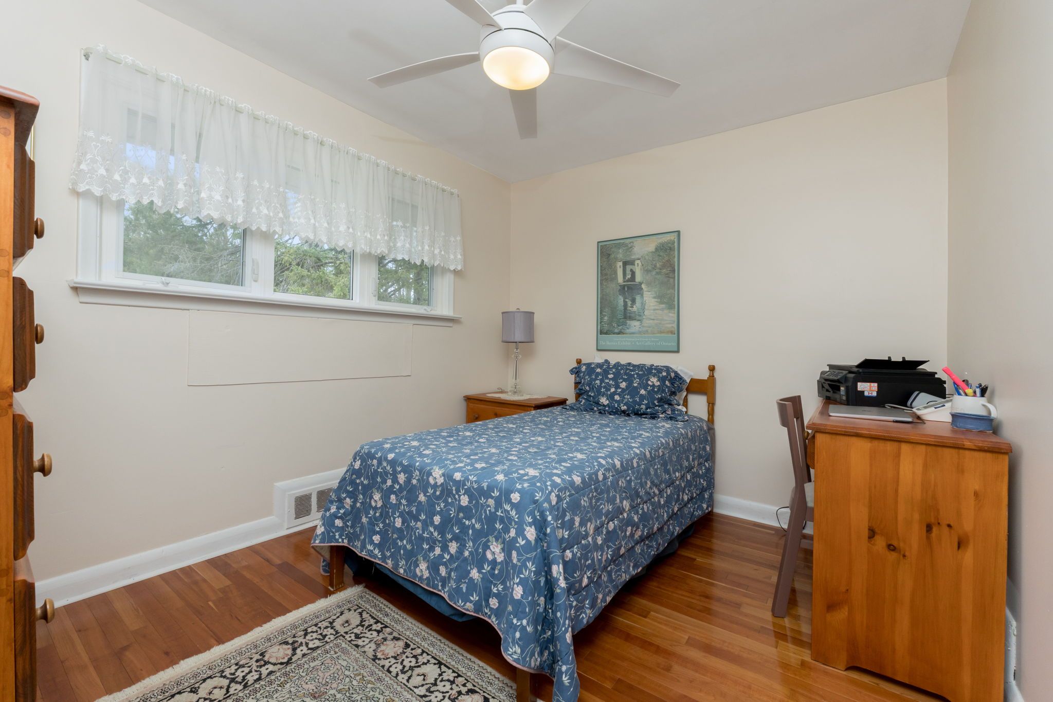 • Hardwood cherry floors and ceiling fans for comfort and style.