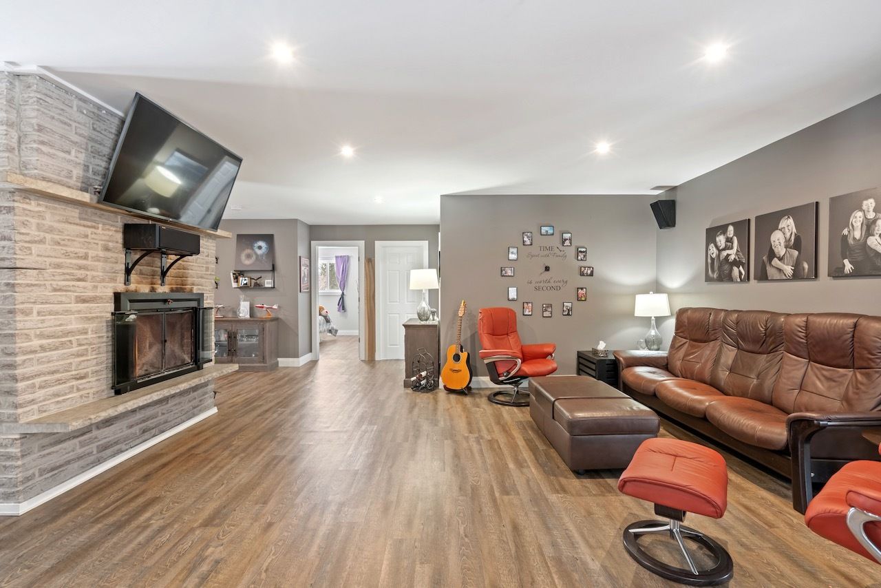 Visit the realtor website for further information about this listing. Stunning turn-key family home set on a picturesque 1. 8-acre lot in rural prescott, offering privacy, space, and access to nearby trails for year-round outdoor enjoyment. This well-maintained property features excellent curb appeal with a brick and vinyl exterior, a large paved driveway accommodating up to six vehicles, a secondary gravel drive ideal for additional parking, boat or rv, and an attached double car garage. The main floor offers approximately 1,728 sq/ft of bright, open-concept living space highlighted by a striking doublesided wood-burning fireplace. The spacious kitchen includes quartz countertops, ample cabinetry, a pantry, and included appliances, flowing seamlessly into the dining and living areas-perfect for family living and entertaining. A standout feature is the incredible 3-season sunroom with exterior kitchen, complete with sink, gas cooktop, mini fridge, and fireplace-your private retreat. The main level includes a generous primary bedroom with his-and-hers closets and a beautifully updated 3-piece ensuite, along with two additional bedrooms and a 4piece bathroom. A functional mudroom with garage access adds everyday convenience. The partially finished lower level offers approximately 1,720 sq/ft of additional living and storage space, including a large rec room, games room with bar, fourth bedroom, 4-piece bathroom, laundry, and utility area. Over $50,000 in upgrades since 2023, including heat pump (2024), water treatment system (2025), sunroom updates (2025), front door and stairs (2025), epoxy garage floor (2025), and more. Steel roof (2021) and septic (2020, pumped 2025) add peace of mind. A rare opportunity for rural living at its finest.