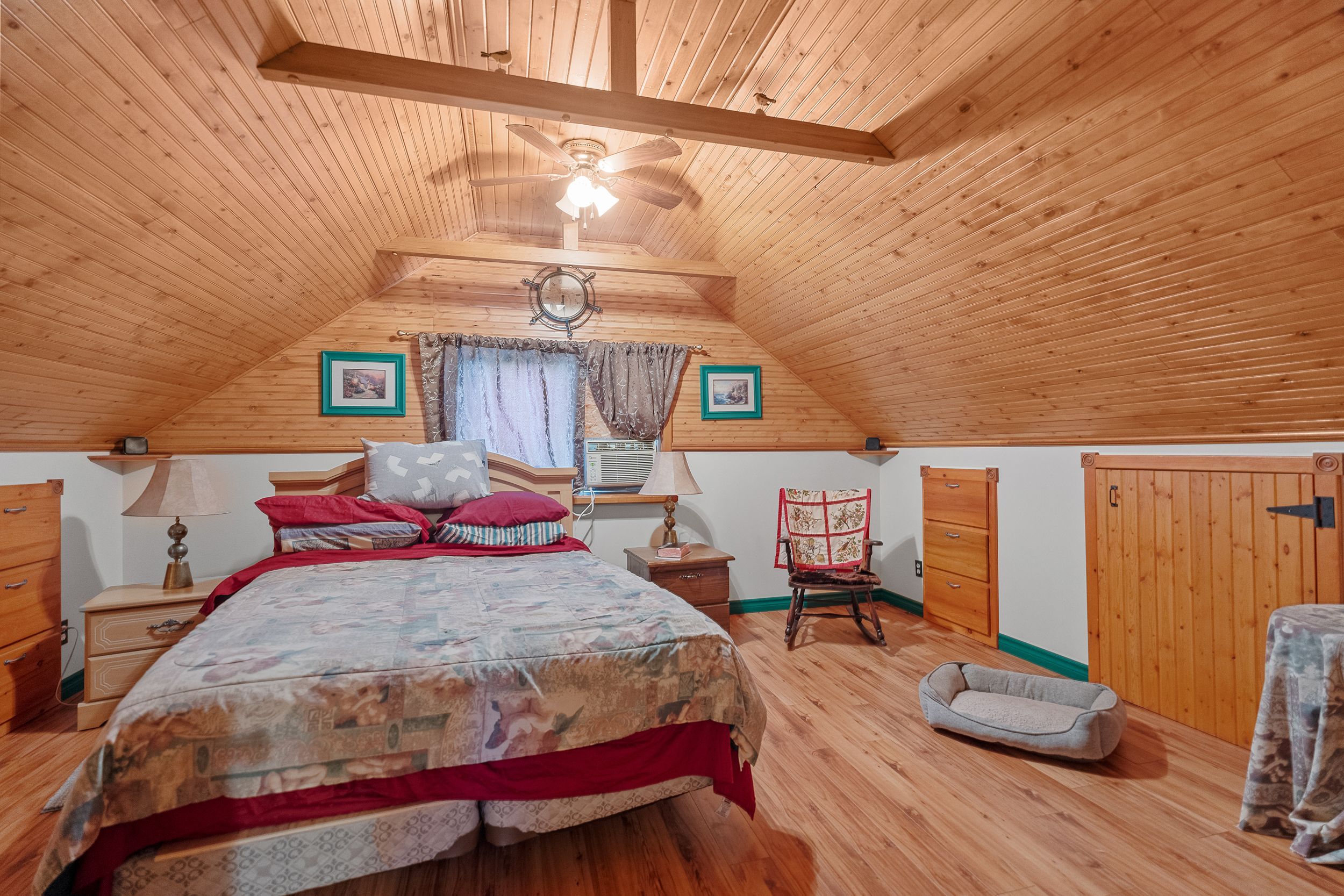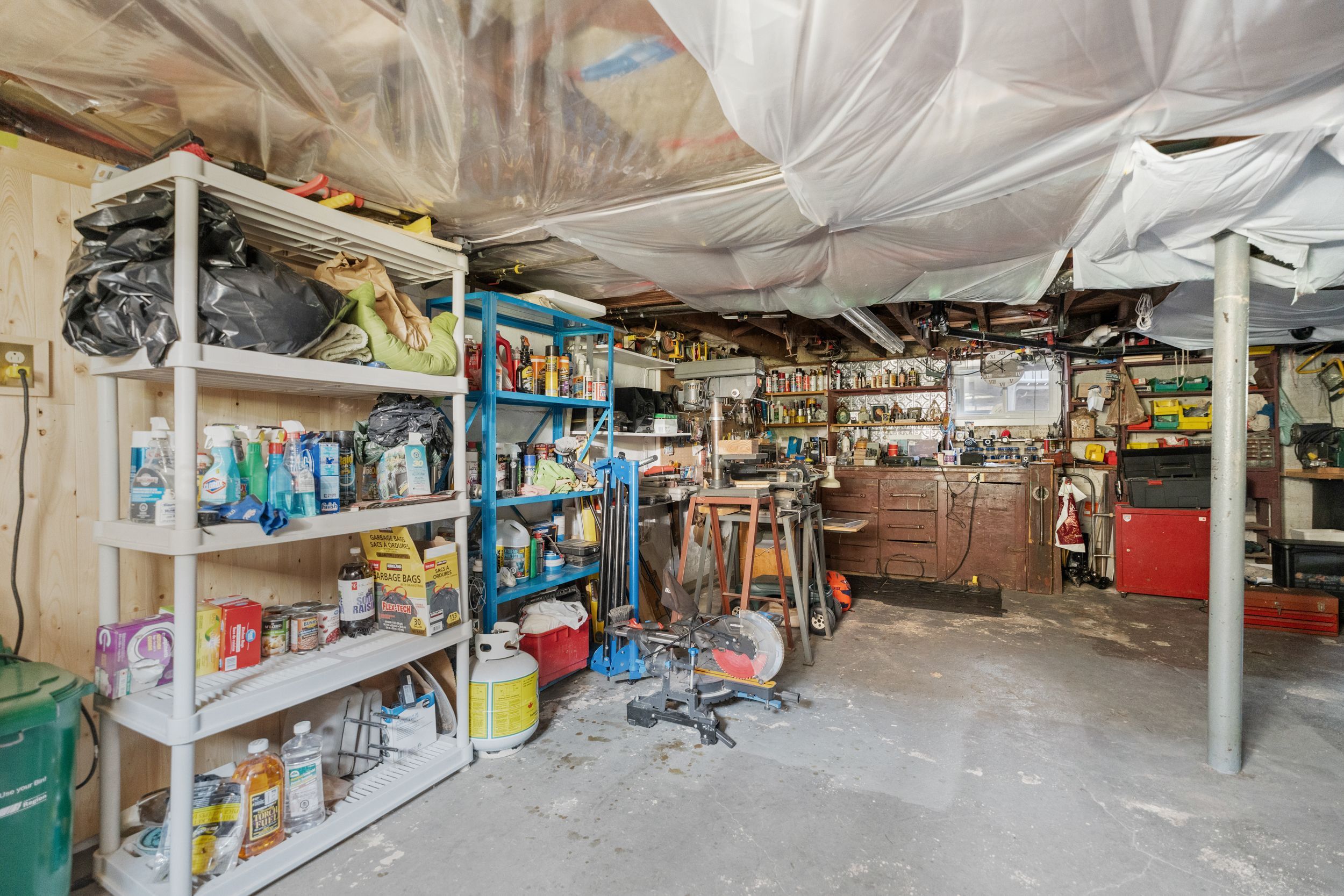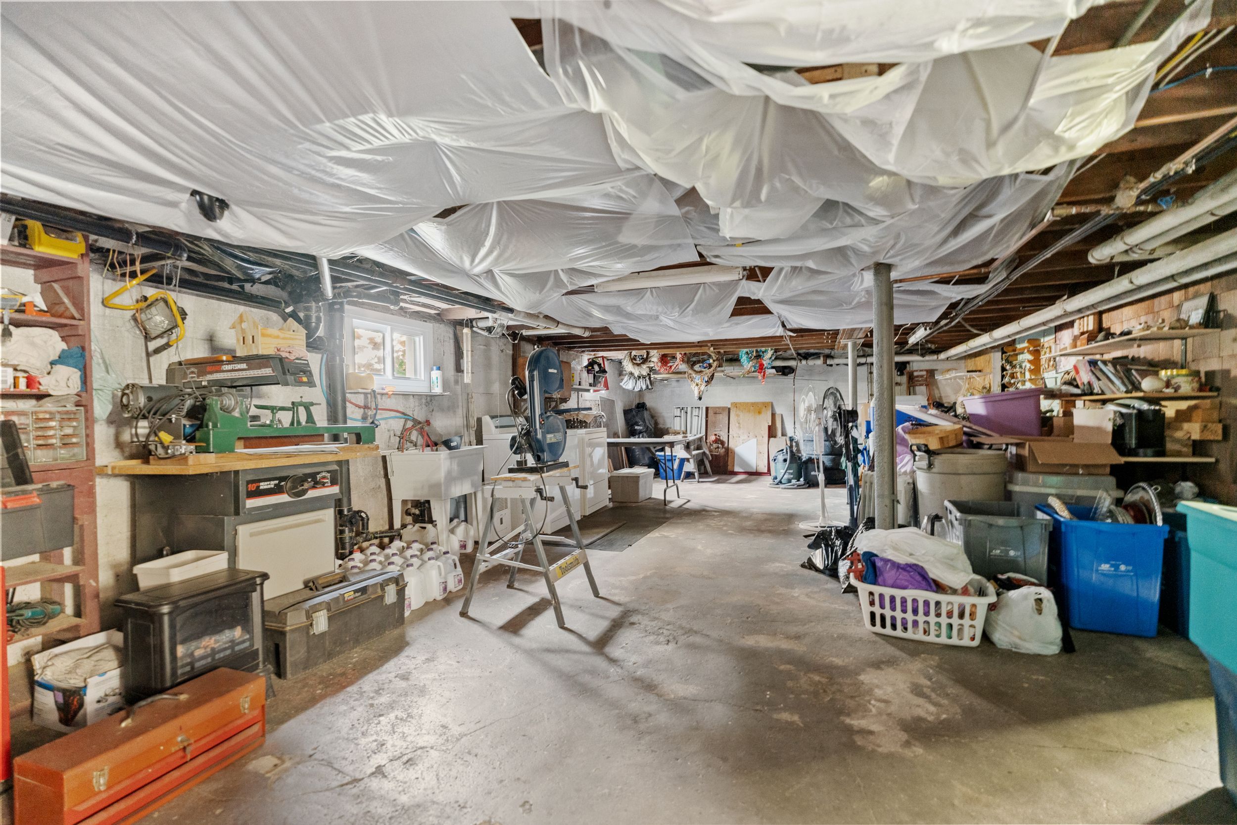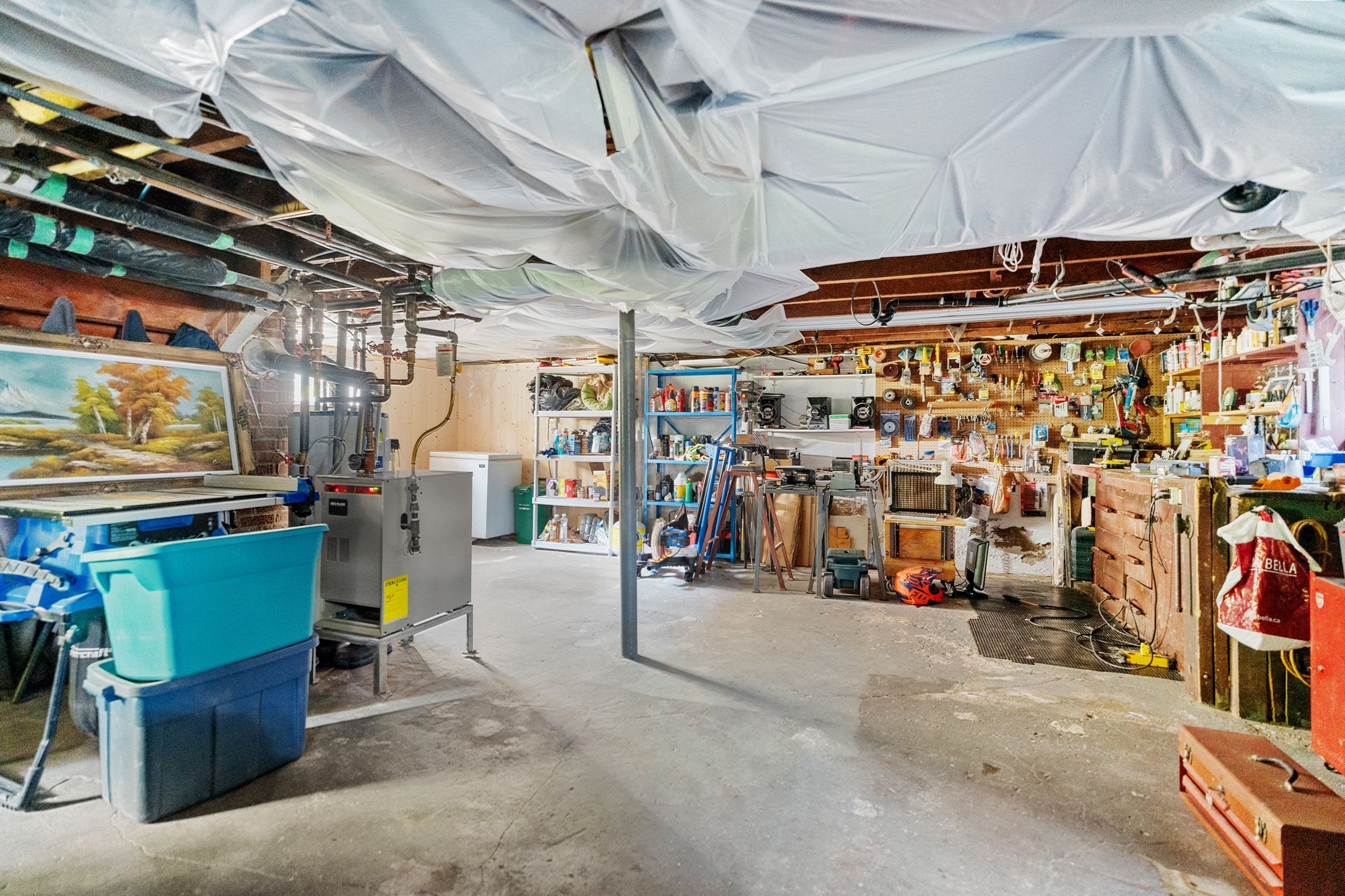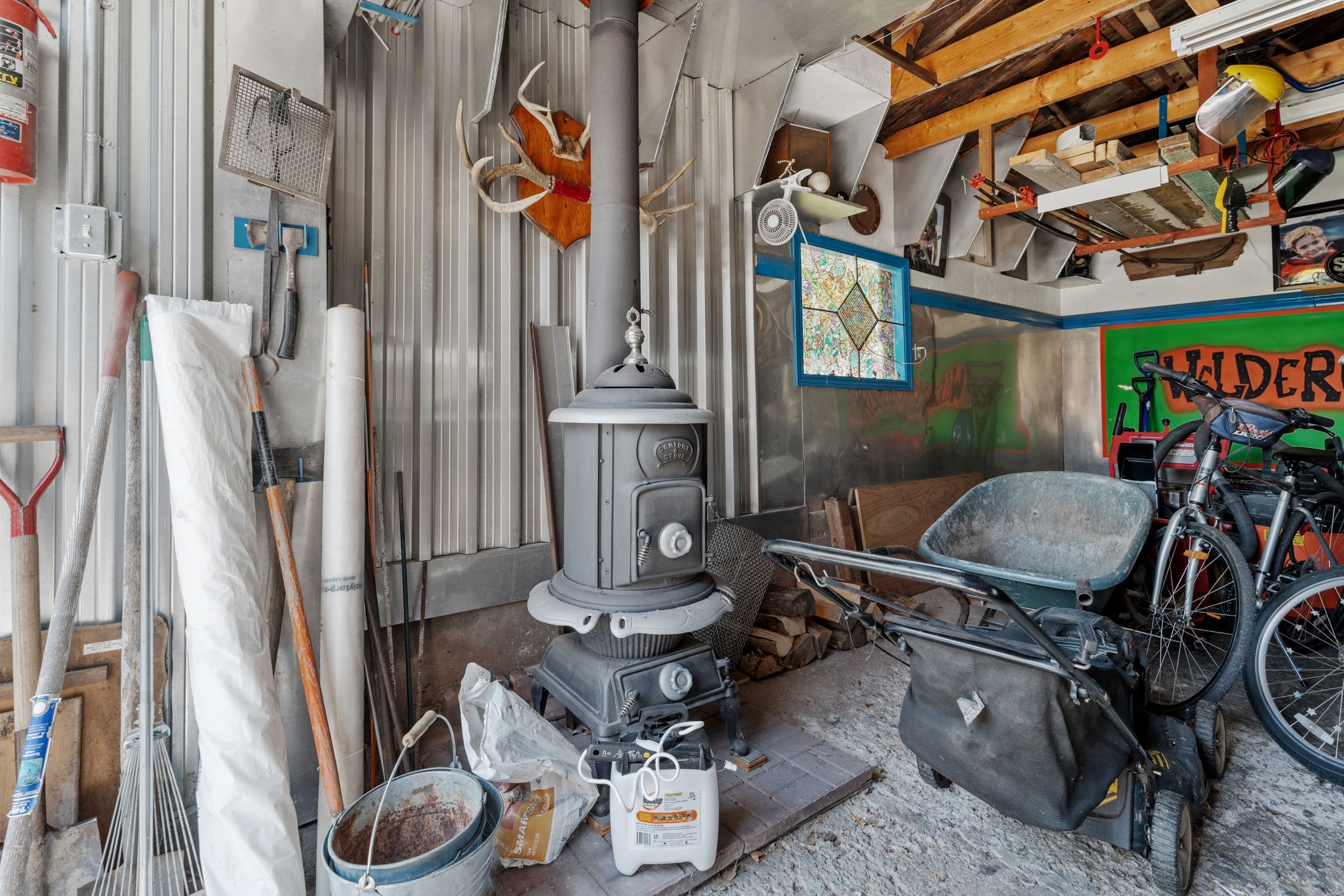 • Spacious garage suitable for hobbies with separate electric and woodstove.