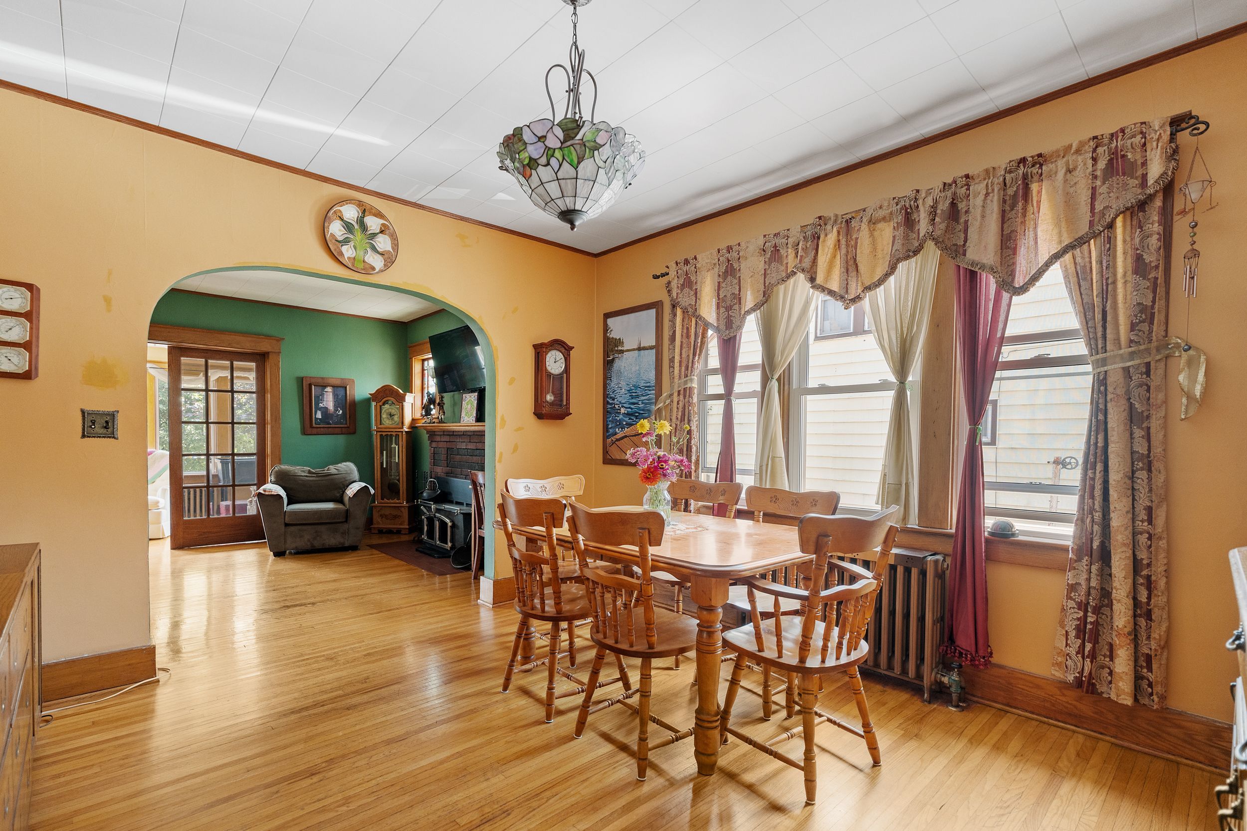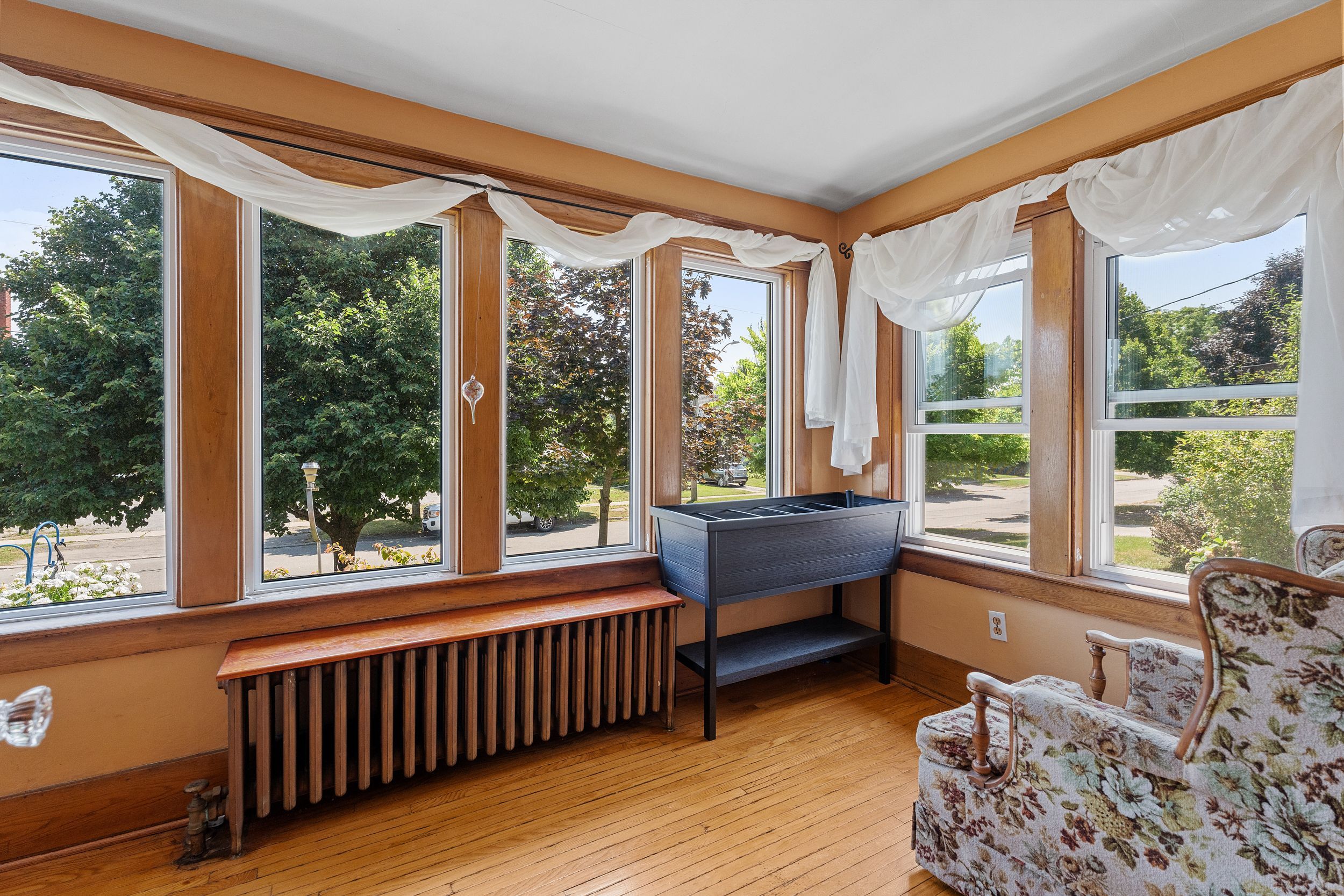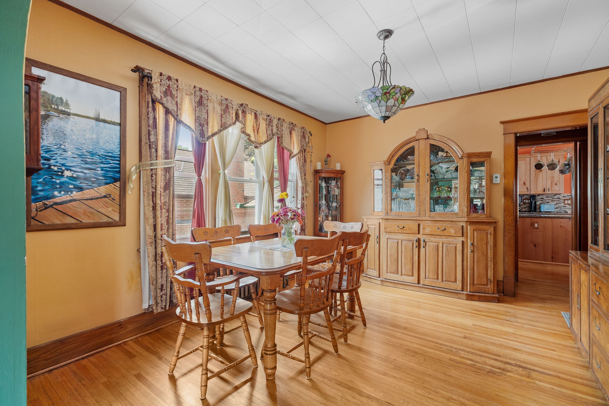 Are you looking for a unique character home that exudes quiet elegance? This home must be seen to be appreciated! Just under 100 years old, built in 1927, this home has been meticulously conserved and upgraded to reflect the original sophistication of this manor. Move in ready! Nothing to do! The original hardwood and trim, plaster and lathe are in pristine condition. Generous living room with cozy fireplace with insert plus formal dining room, large updated kitchen with abundant counter and cupboard space. Spacious bedrooms with plenty of closets and storage space. Original french door leading to beautifully enclosed sunporch. Newer windows, roof, 2023, newer boiler and updated electric. New bathroom up. Huge high dry basement with tons of storage, and lots of space for hobbies. Large garage perfect for mechanic or hobby area with separate electric, welding plug and woodstove. The backyard is an absolute garden oasis, with interlock brick patio surrounded by gorgeous perennials and mature trees and includes 2 clear clean ponds. Partially fenced yard and gas barbecue hookup.