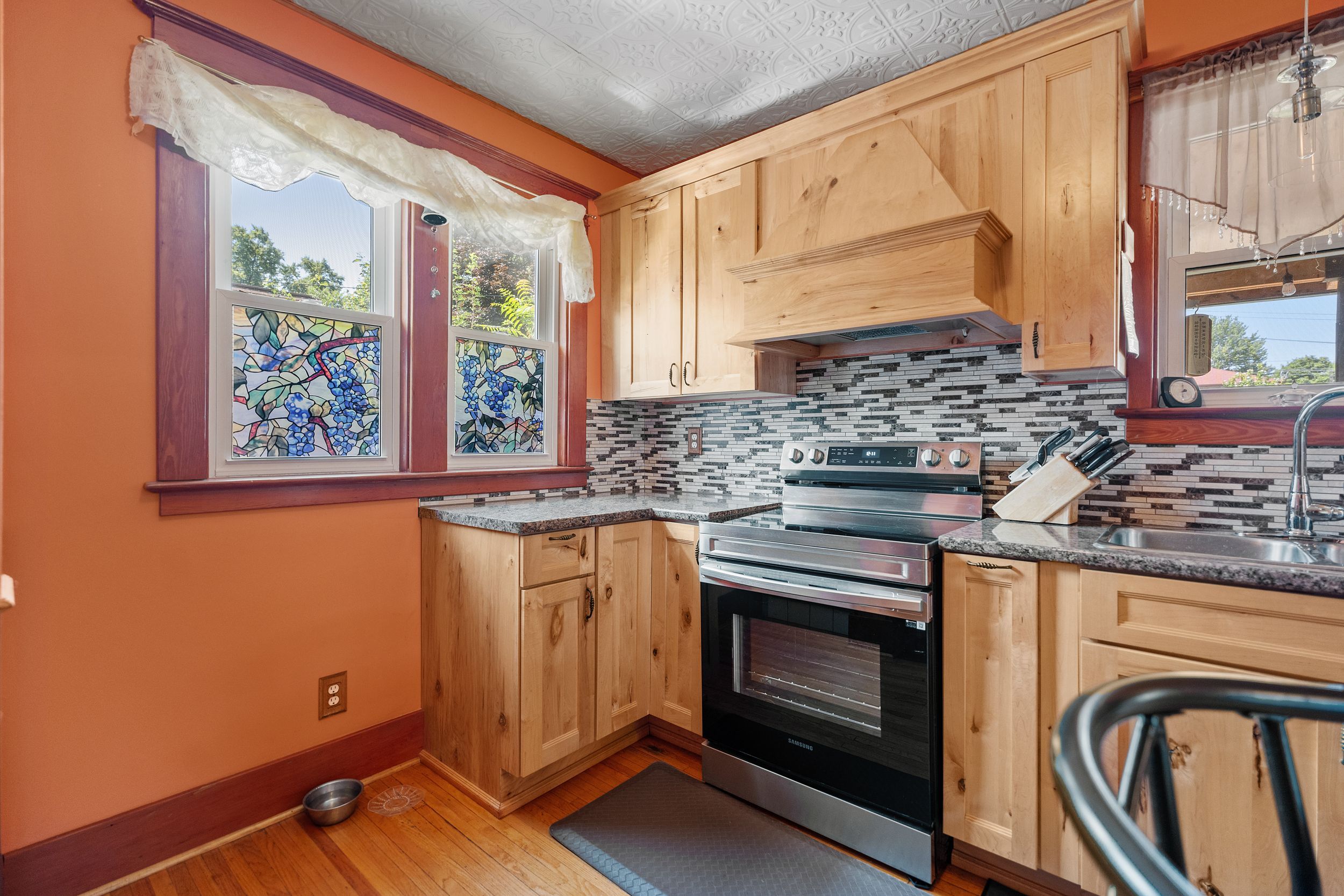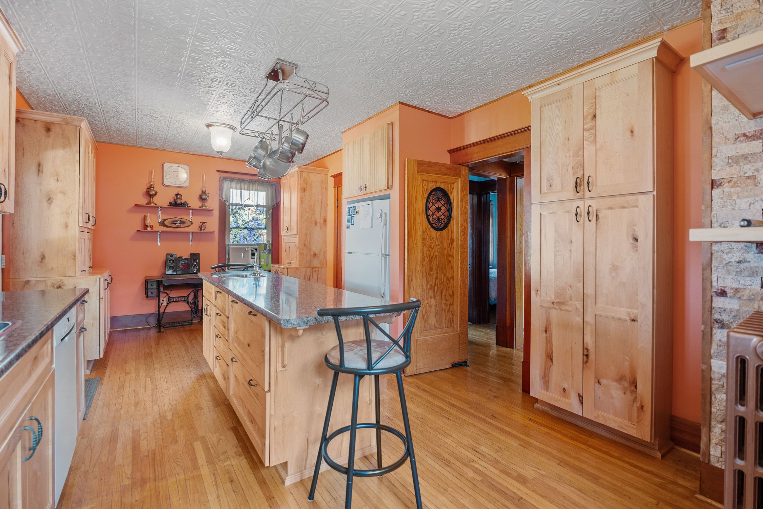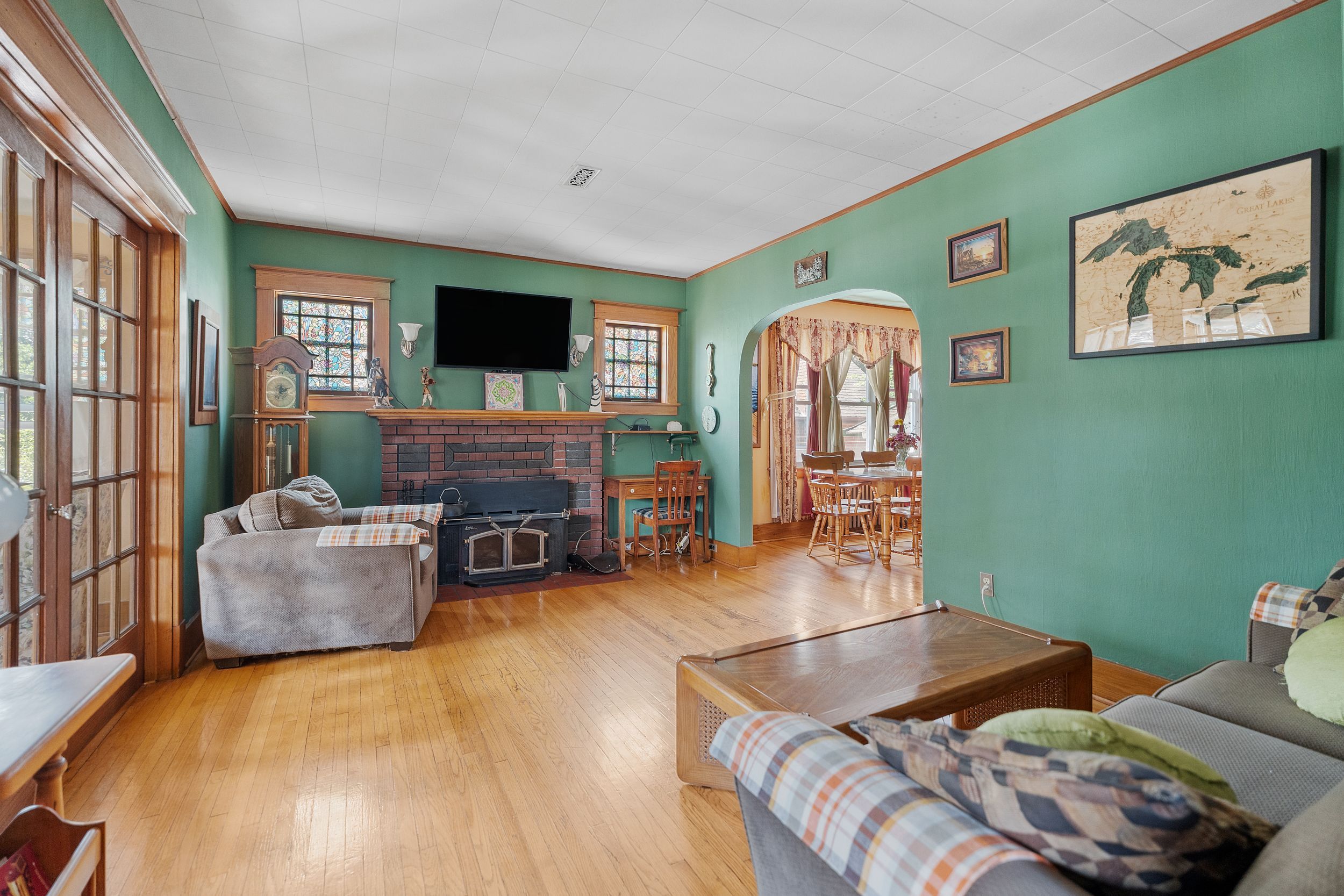Are you looking for a unique character home that exudes quiet elegance? This home must be seen to be appreciated! Just under 100 years old, built in 1927, this home has been meticulously conserved and upgraded to reflect the original sophistication of this manor. Move in ready! Nothing to do! The original hardwood and trim, plaster and lathe are in pristine condition. Generous living room with cozy fireplace with insert plus formal dining room, large updated kitchen with abundant counter and cupboard space. Spacious bedrooms with plenty of closets and storage space. Original french door leading to beautifully enclosed sunporch. Newer windows, roof, 2023, newer boiler and updated electric. New bathroom up. Huge high dry basement with tons of storage, and lots of space for hobbies. Large garage perfect for mechanic or hobby area with separate electric, welding plug and woodstove. The backyard is an absolute garden oasis, with interlock brick patio surrounded by gorgeous perennials and mature trees and includes 2 clear clean ponds. Partially fenced yard and gas barbecue hookup.