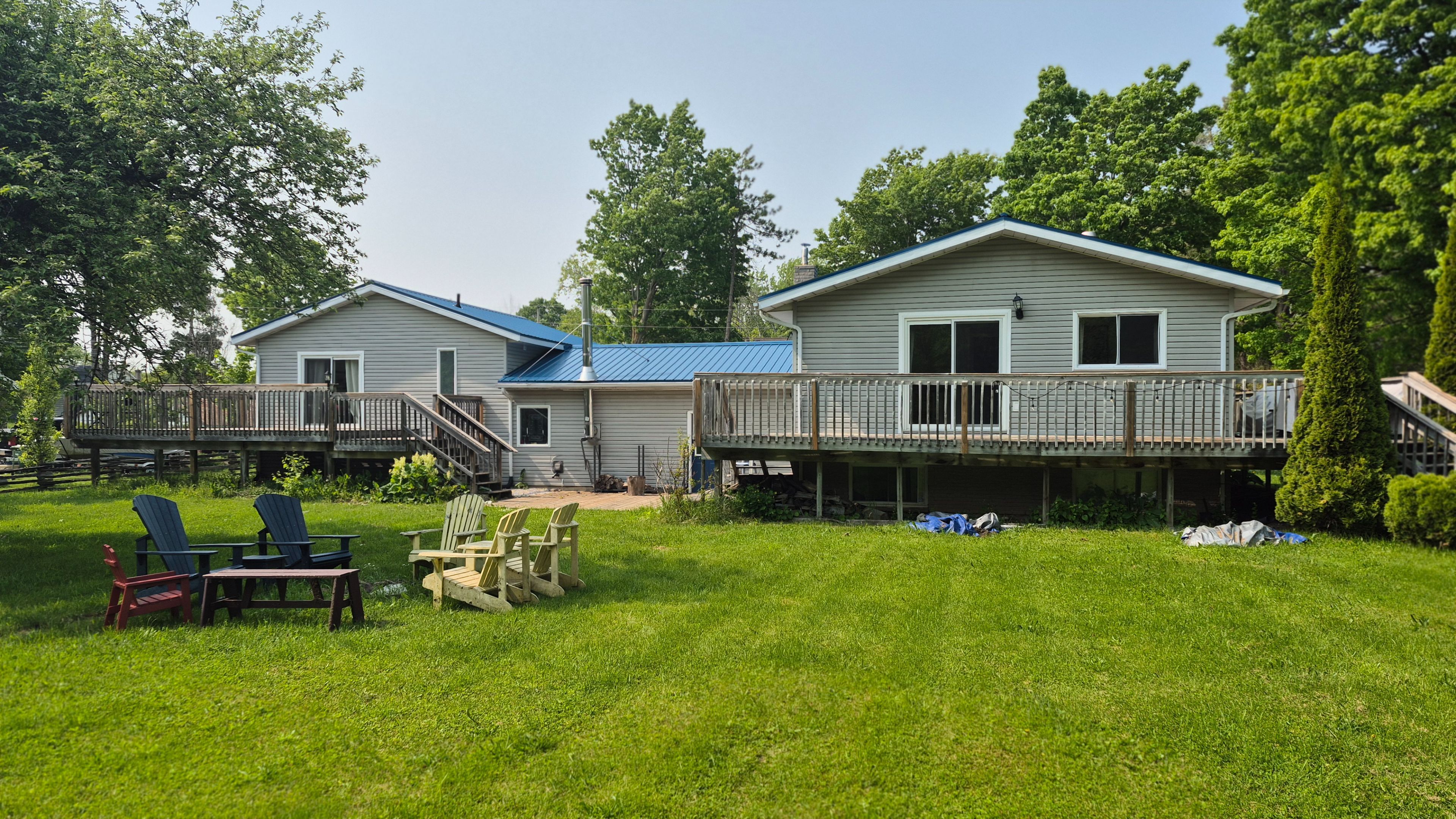 Imagine a home where the whole family fits... And it helps pay the bills! Welcome to this incredible 7-bedroom, 5-bathroom property in eugenia, offering the perfect setup for multigenerational living, an income property, or a combination of both. Just a short 5-minute walk to the beach and minutes to the area's popular ski hills, this location offers a year-round lifestyle. Originally renovated in 2018 with approximately $350,000 in improvements, the home has been successfully operating as a licensed airbnb since 2019, with the flexibility to continue generating income or accommodate family living. The thoughtful layout features two separate living spaces connected by a central shared living room. Inside, you'll find a spacious and welcoming interior with newer vinyl flooring, pot lights and updated bathrooms. The kitchen is well-equipped for hosting and large groups, featuring an industrial stove with venting. Wood fireplaces add warmth and character throughout the home. The property includes a 2 self-contained basement areas, each with two bedrooms, providing additional flexibility for guests or rental opportunity. A wrap-around deck creates the perfect space for relaxing and entertaining. Major mechanical updates include a new propane forced-air furnace and central air conditioning (2021), updated hot water tanks, and 400-amp electrical service. Outside, you'll find a detached garage with storage and a shed, offering plenty of room for tools, toys, and outdoor equipment. Currently generating strong short-term rental income with nightly rates ranging from $225-$300 and peak weeks around $3,000, this property offers exceptional flexibility and investment potential in one of grey county's most desirable recreational areas. A rare chance to own a spacious home that can bring family together while also generating meaningful income.