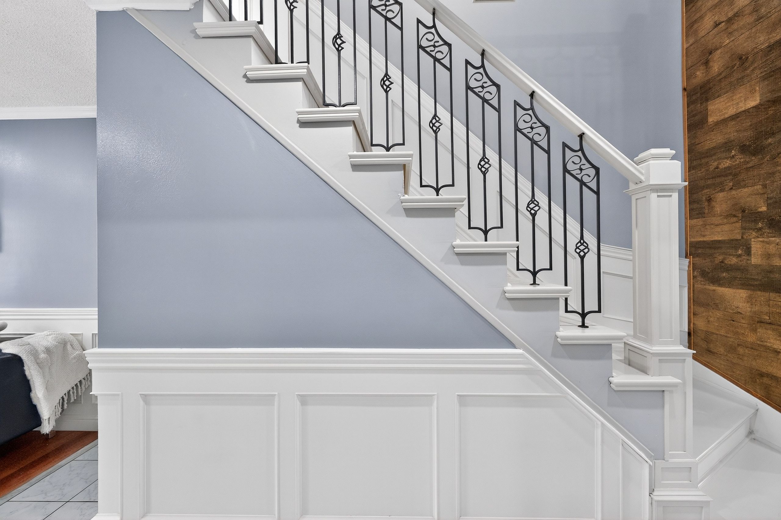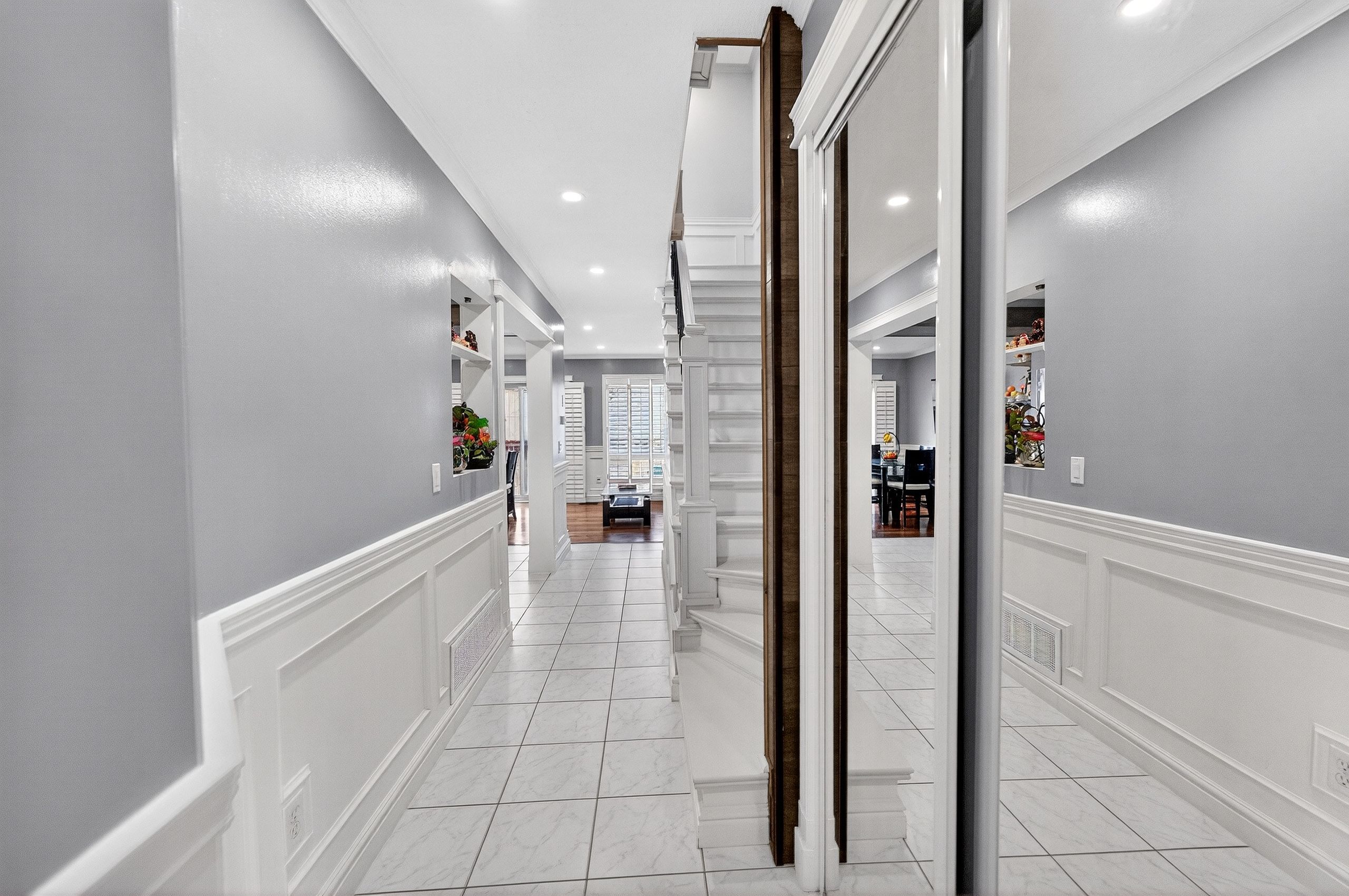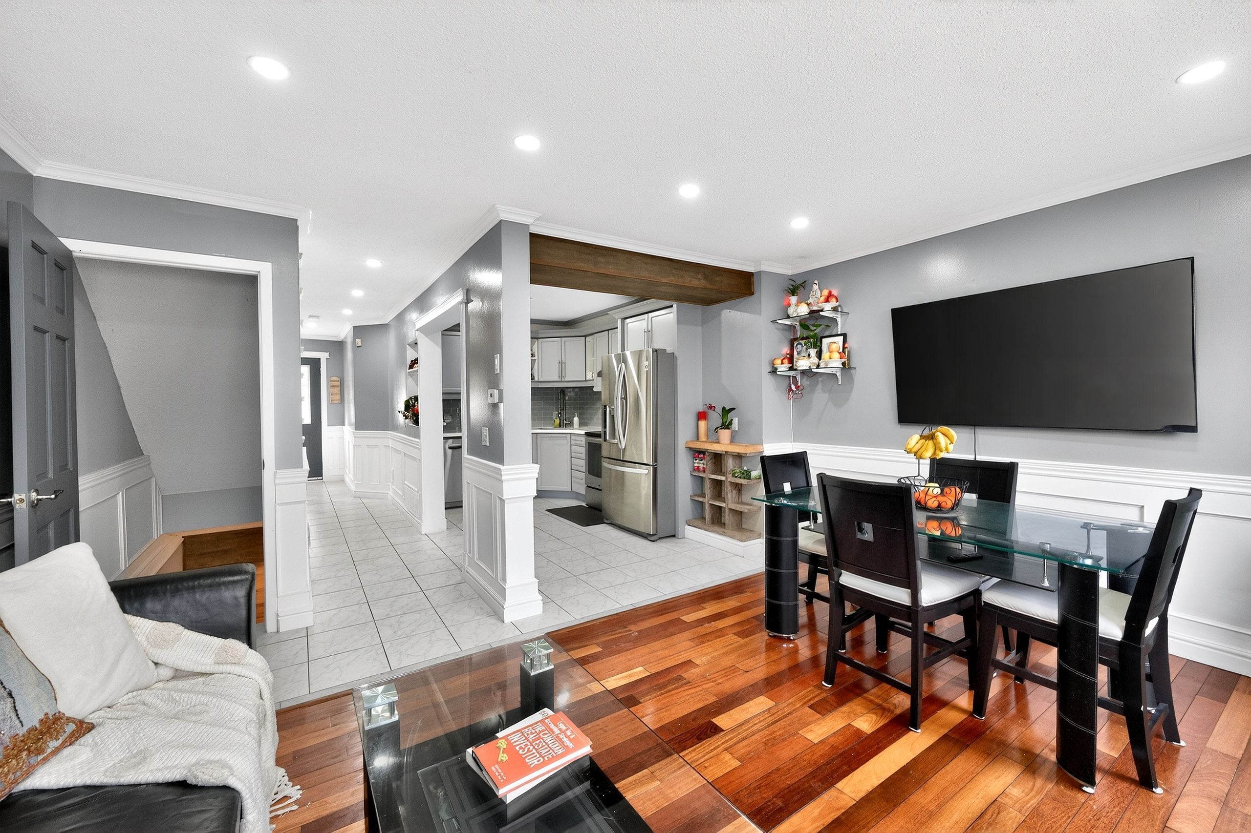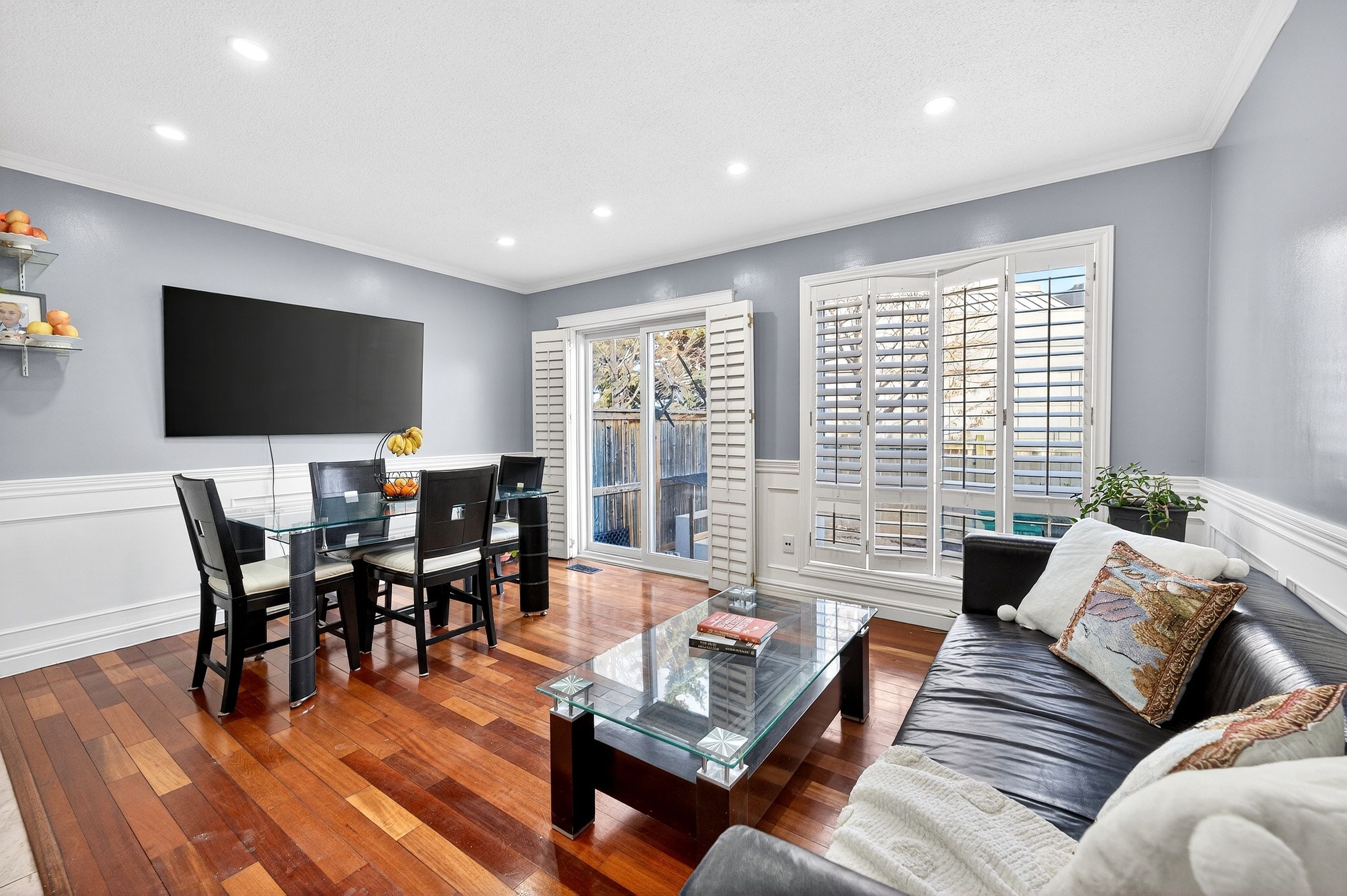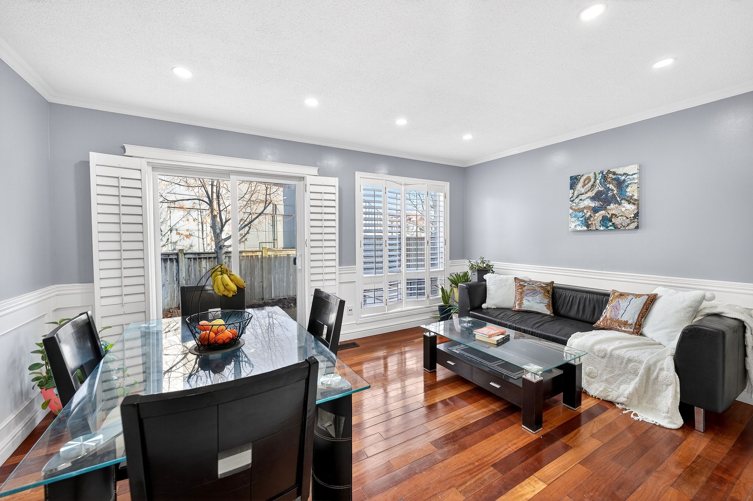 • Stylish Brazilian hardwood floors and handcrafted wainscoting throughout.