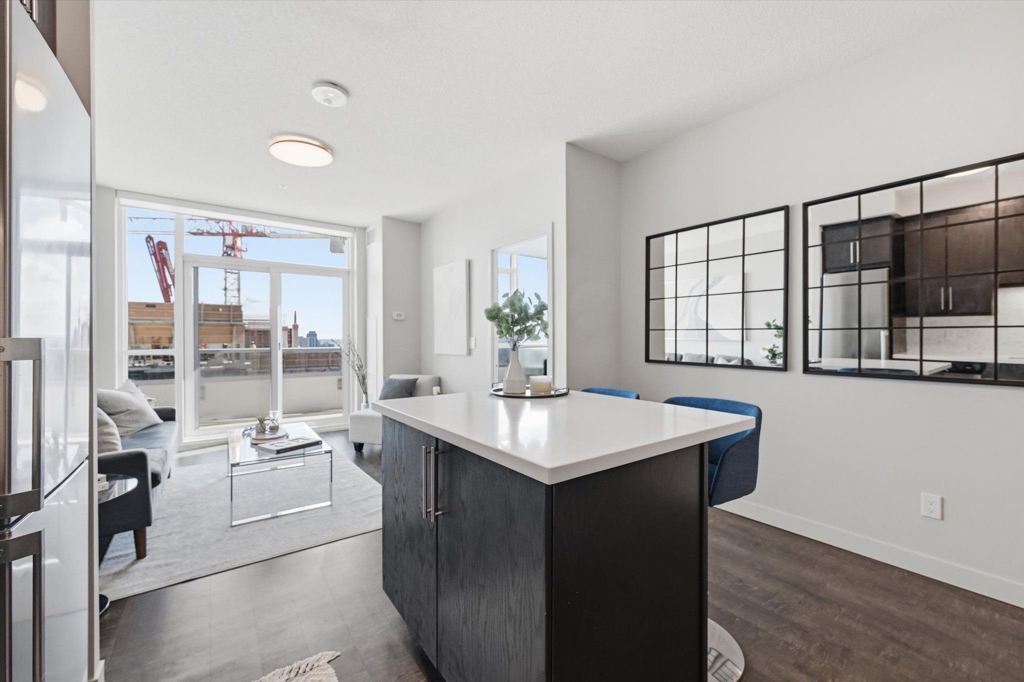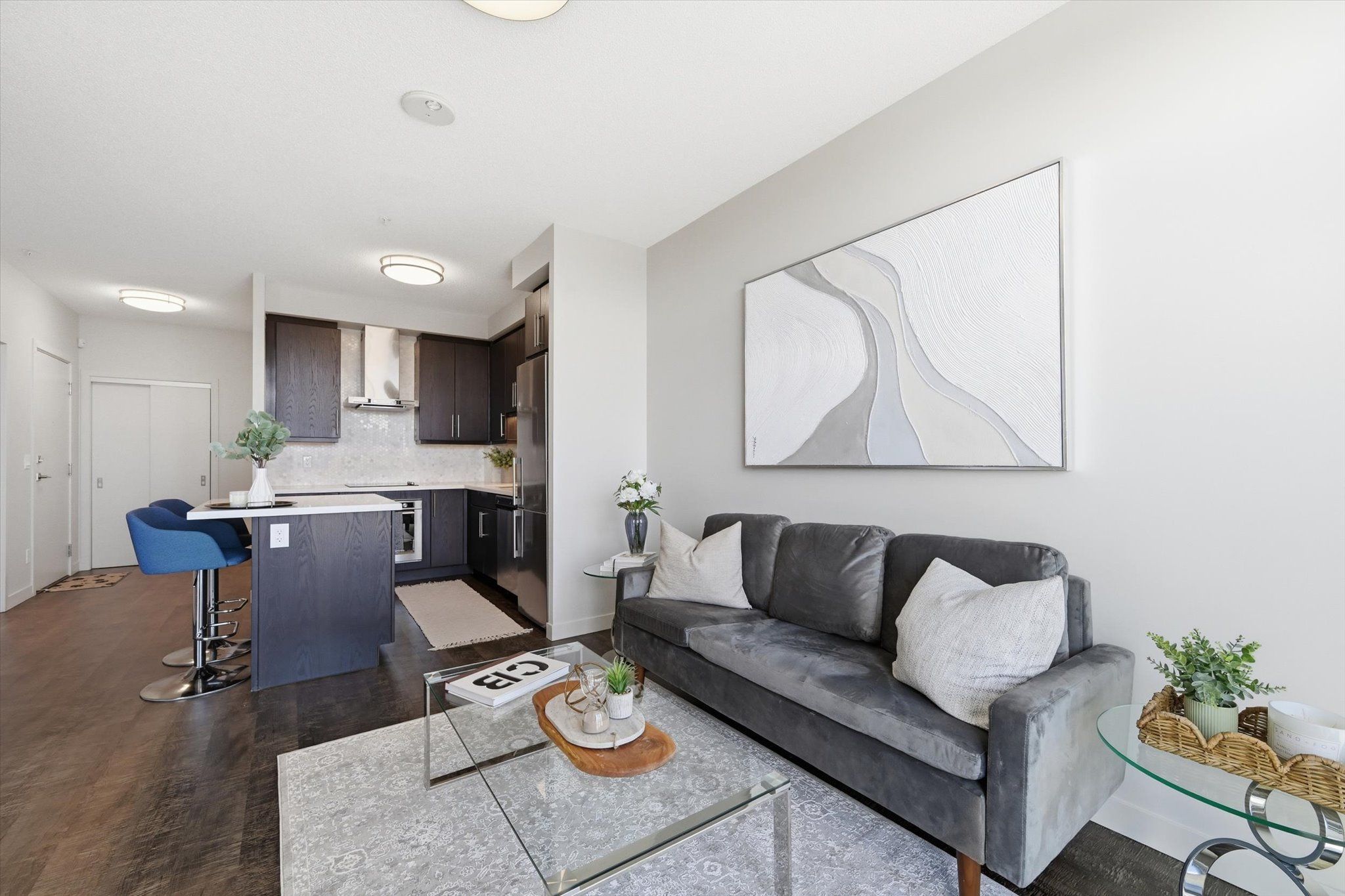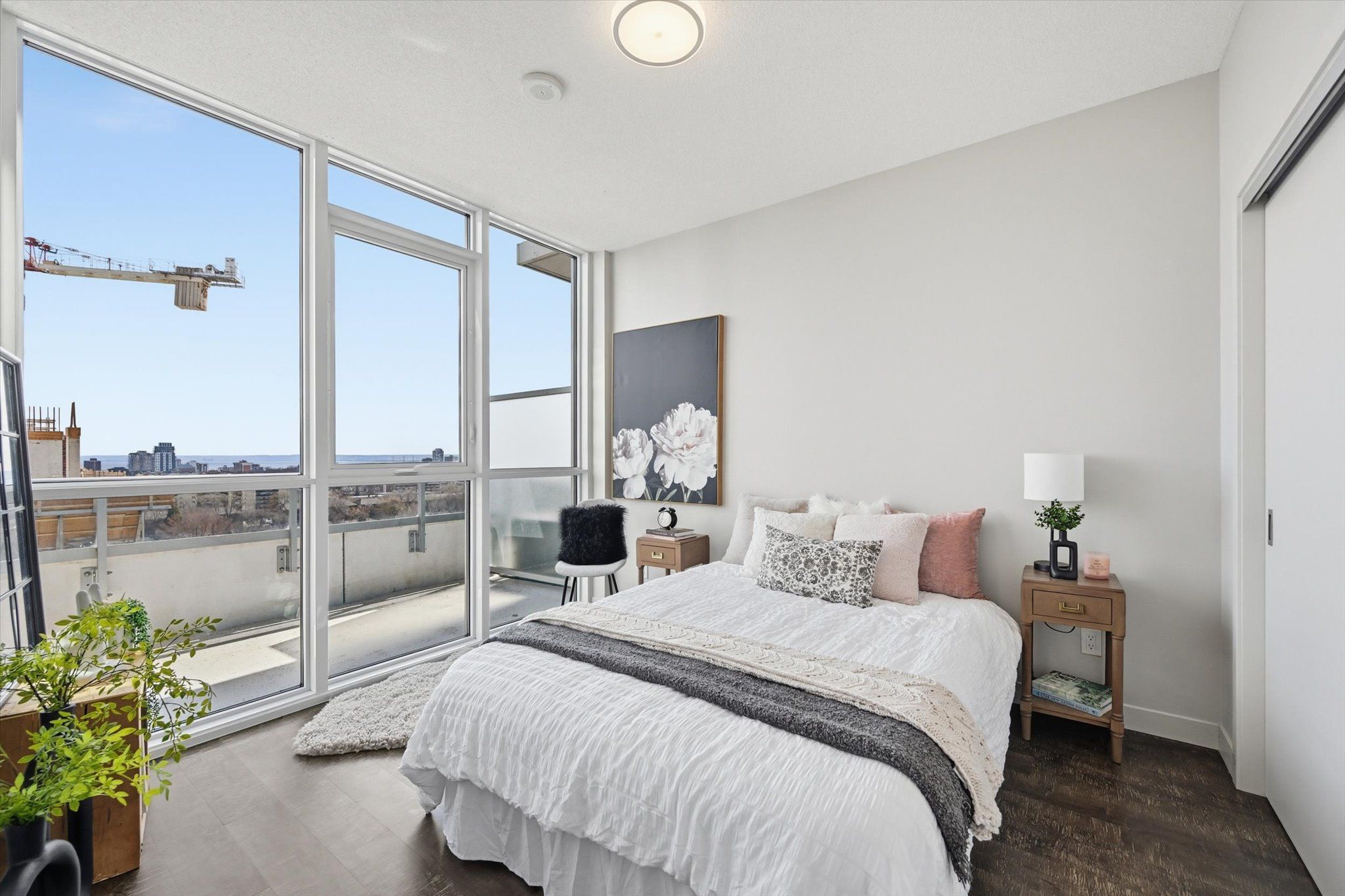 Sought-after paradigm condominium with south-facing lake views! This impressive 1-bedroom plus den suite offers 627 square feet of thoughtfully designed space with a smart, functional layout. The modern kitchen features extended cabinetry, a seated island, and stainless steel appliances, opening effortlessly into the bright living area - ideal for both relaxing and entertaining. The versatile den/bonus room provides the perfect flex space for a home office, gaming area, or cozy reading nook. Step out onto the generously sized balcony with southern exposure, filling the unit with natural light throughout the day. Included with the suite is one underground parking space and a storage locker. Indulge in the abundance of lavish building amenities, including a sky lounge, indoor pool, fitness centre, basketball court, party room, children's playroom, outdoor activity area, terrace with lounge seating and multiple bbq stations, theatre room, ground-level bike storage, and guest suites. Also, 24-hour concierge, secure key-fob access, video surveillance and controlled entry systems. Ideally located beside the go train station, with nearby shopping, and quick access to the waterfront and all the attractions of downtown burlington. An exceptional blend of comfort, convenience, and lifestyle - this is condo living at its finest.