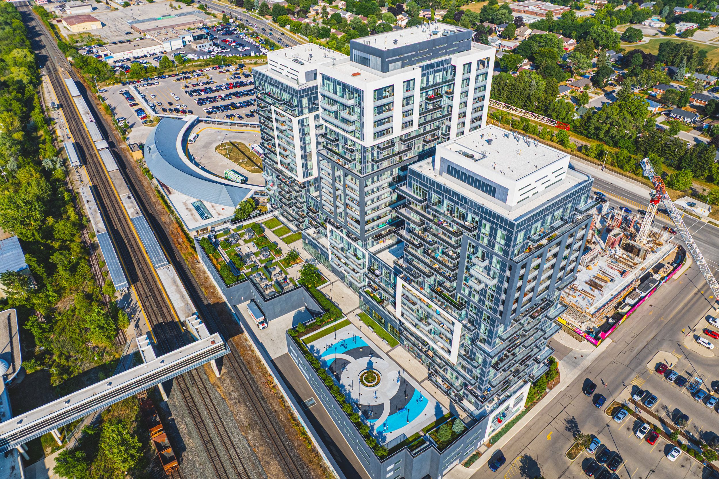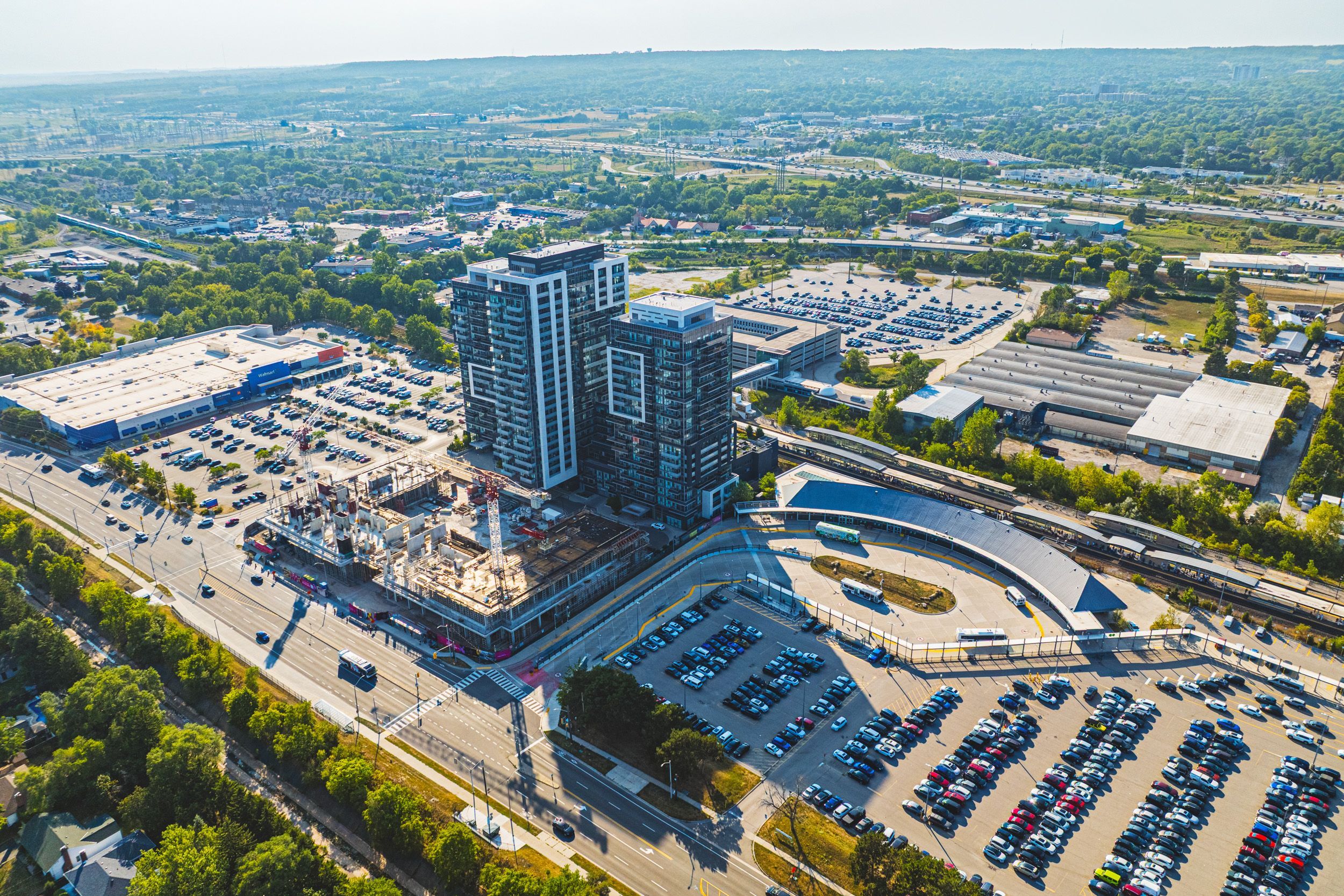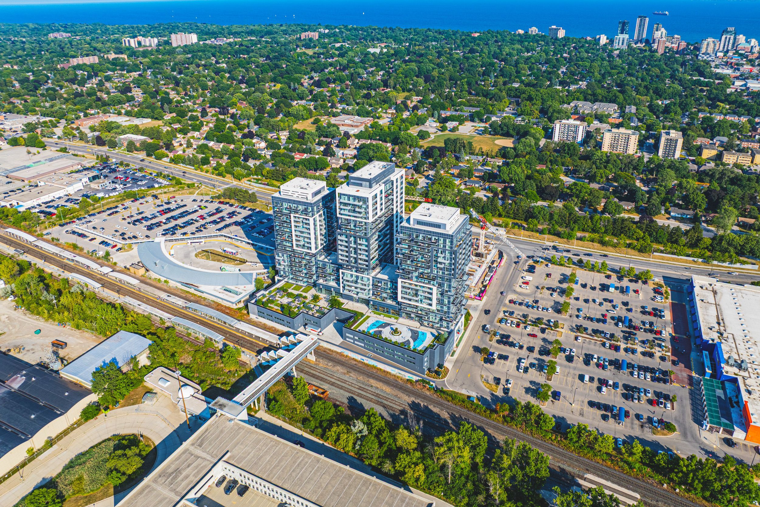 A sophisticated corner unit condo in the highly sough-after paradigm gran - unit #2001! This expansive 2 bedroom, 2 bathroom, 2 car tandem parking, this condo offers approximately 1039 sqft of contemporary living space and is located on the 20 storey high-rise known as paradigm grand condo's in the brant/fairview area of burlington. Designed with style and comfort in mind, the unit features northeast exposure, letting in ample natural light. Upgraded sleek finishings including quartz countertops, upgraded cabinetry and stainless-steel appliances, flooring thru-out! Prime location adjacent to burlington go station, making citywide commuting effortless! Quick and easy access via qew. 403 and 407, simplifying regional travel.. Mere steps from downtown burlington, offering boutique shopping, international dining, waterfront trails, spencer smith park, and lifestyle amenities. Close proximity to burlington centre mall and large retailers like walmart - enabling everyday convenience. Residents at paradigm grand enjoy an impressively curated array of resort-style amenities: indoor pool, hot tub, sauna, fully equipped fitness centre, half court basketball gym, outdoor terrace with bbq and lounge areas, dog park and wash stations for pet owners, multiple party rooms, guest suites, theatre room, kids' playroom, games room and more. 24 hour concierge, secure key-fob access, video surveillance and controlled entry systems - ensuring safety and elevated lifestyle