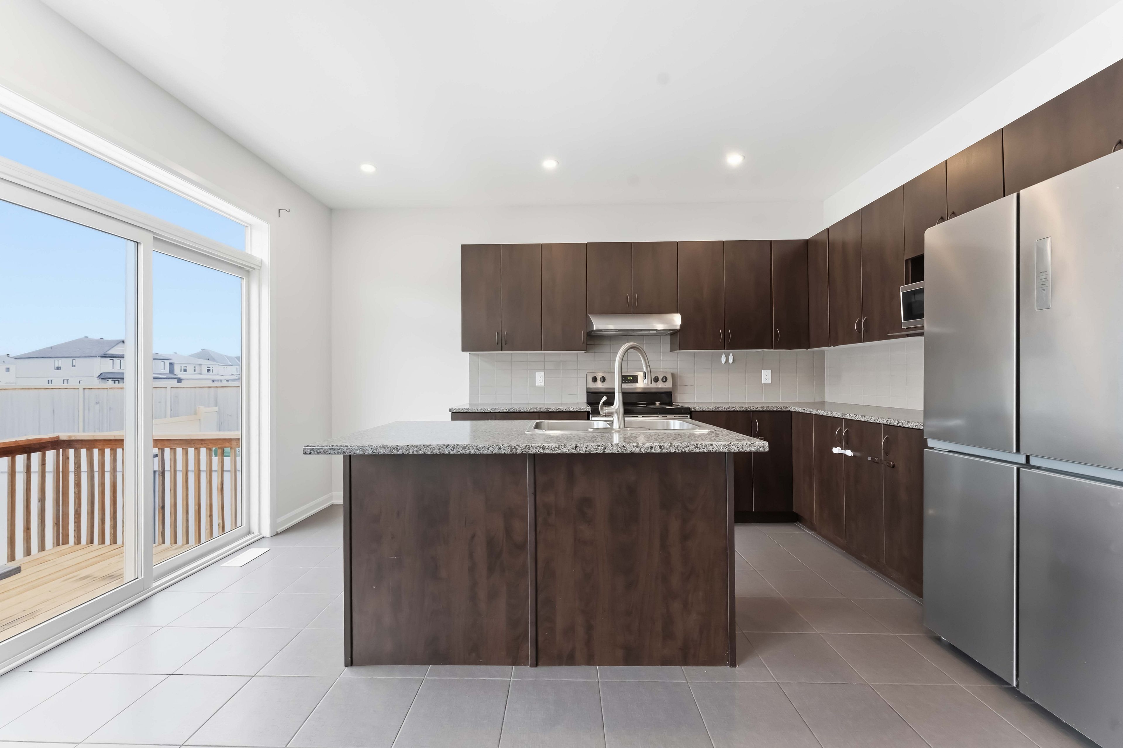 • Contemporary kitchen seamlessly connects to living and dining areas.