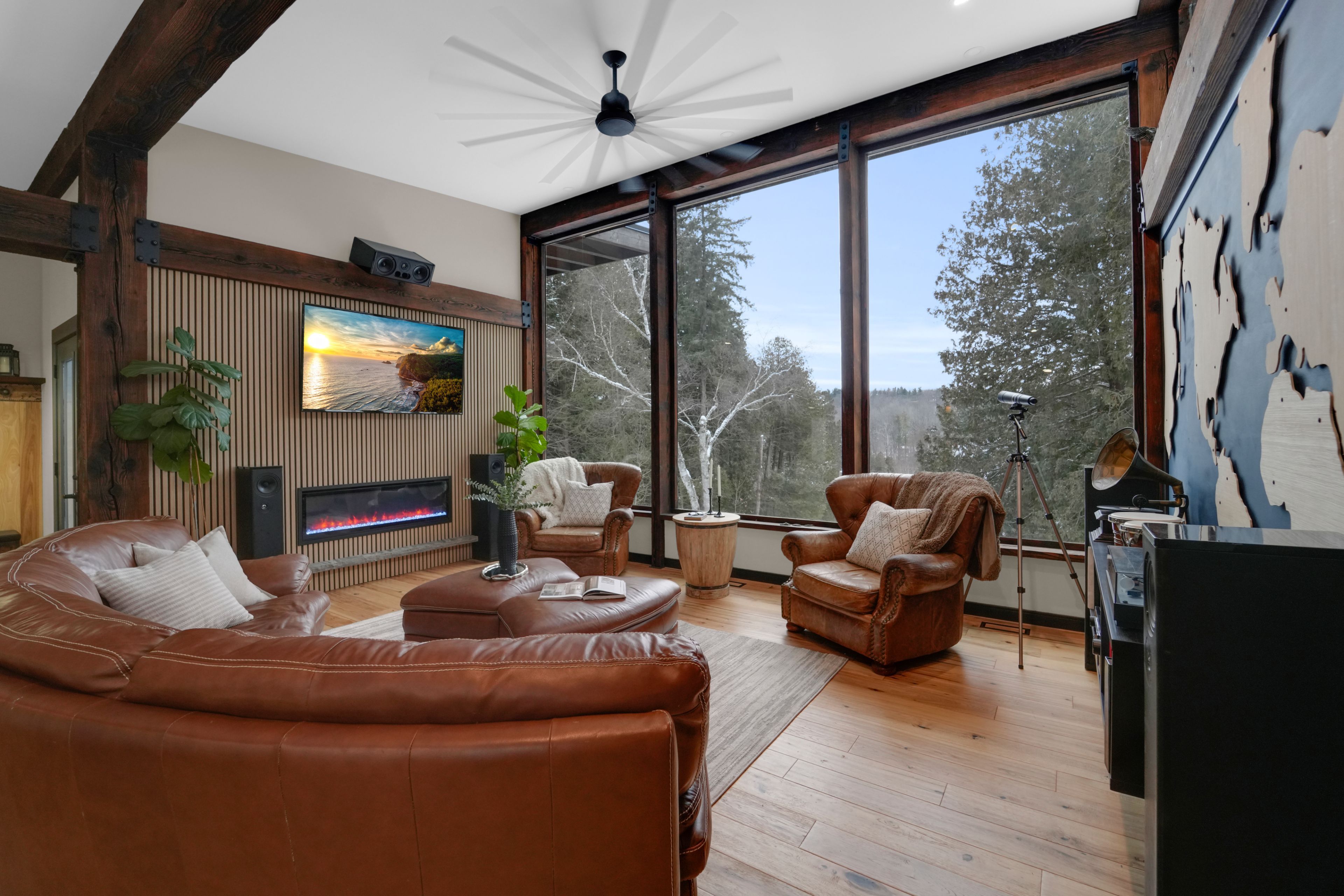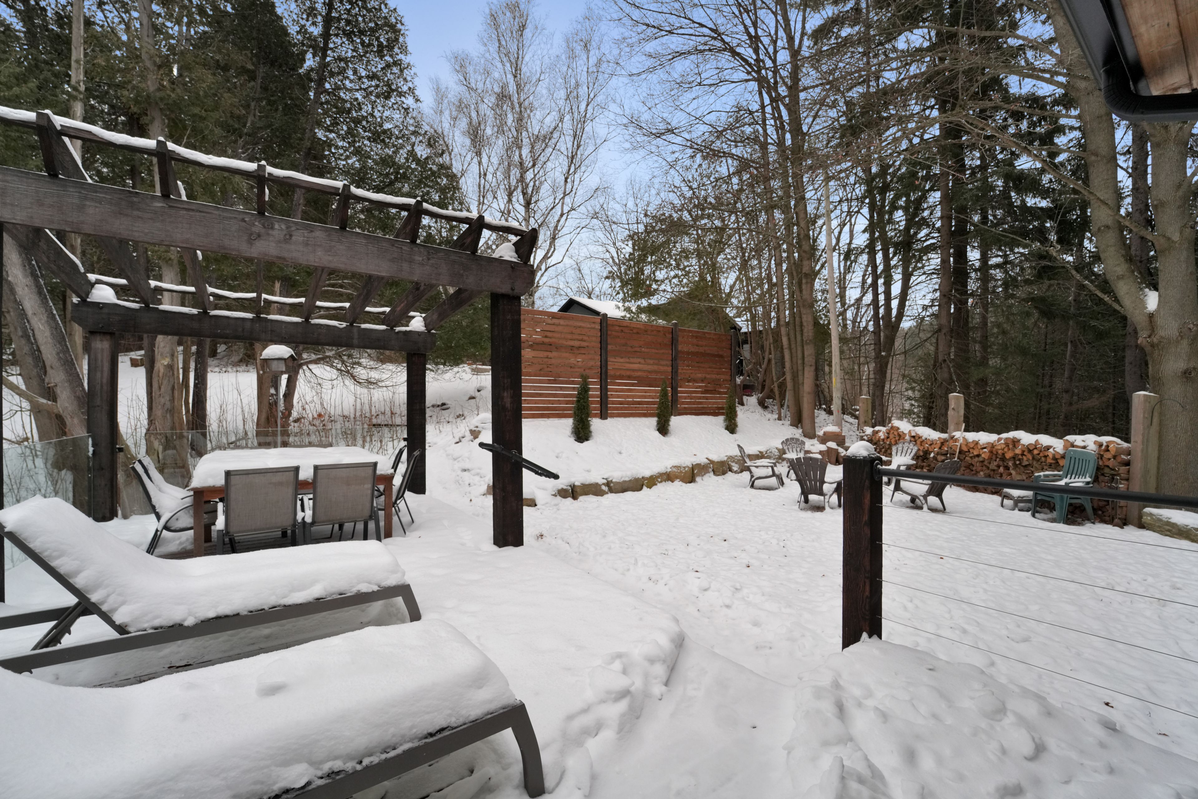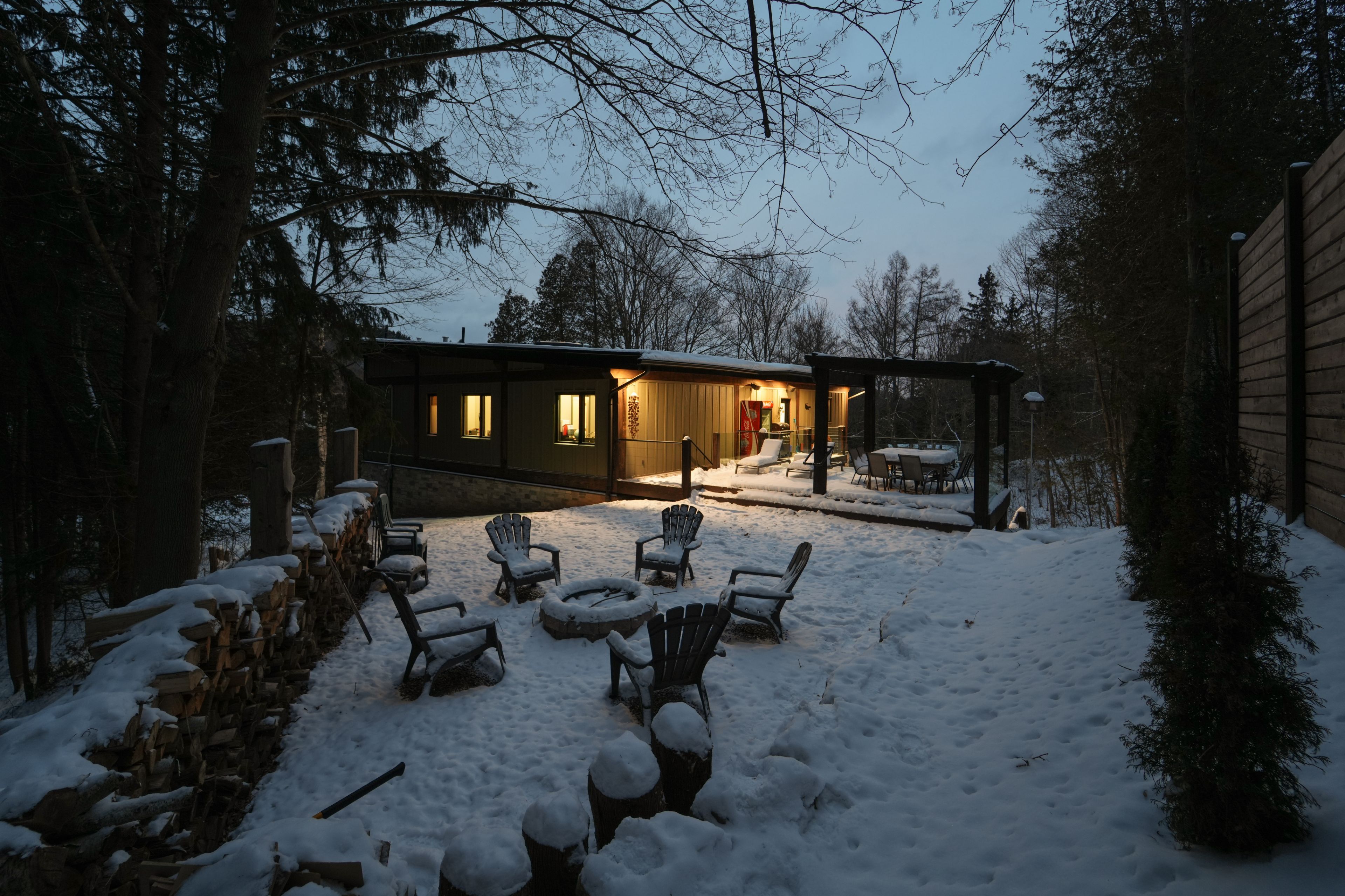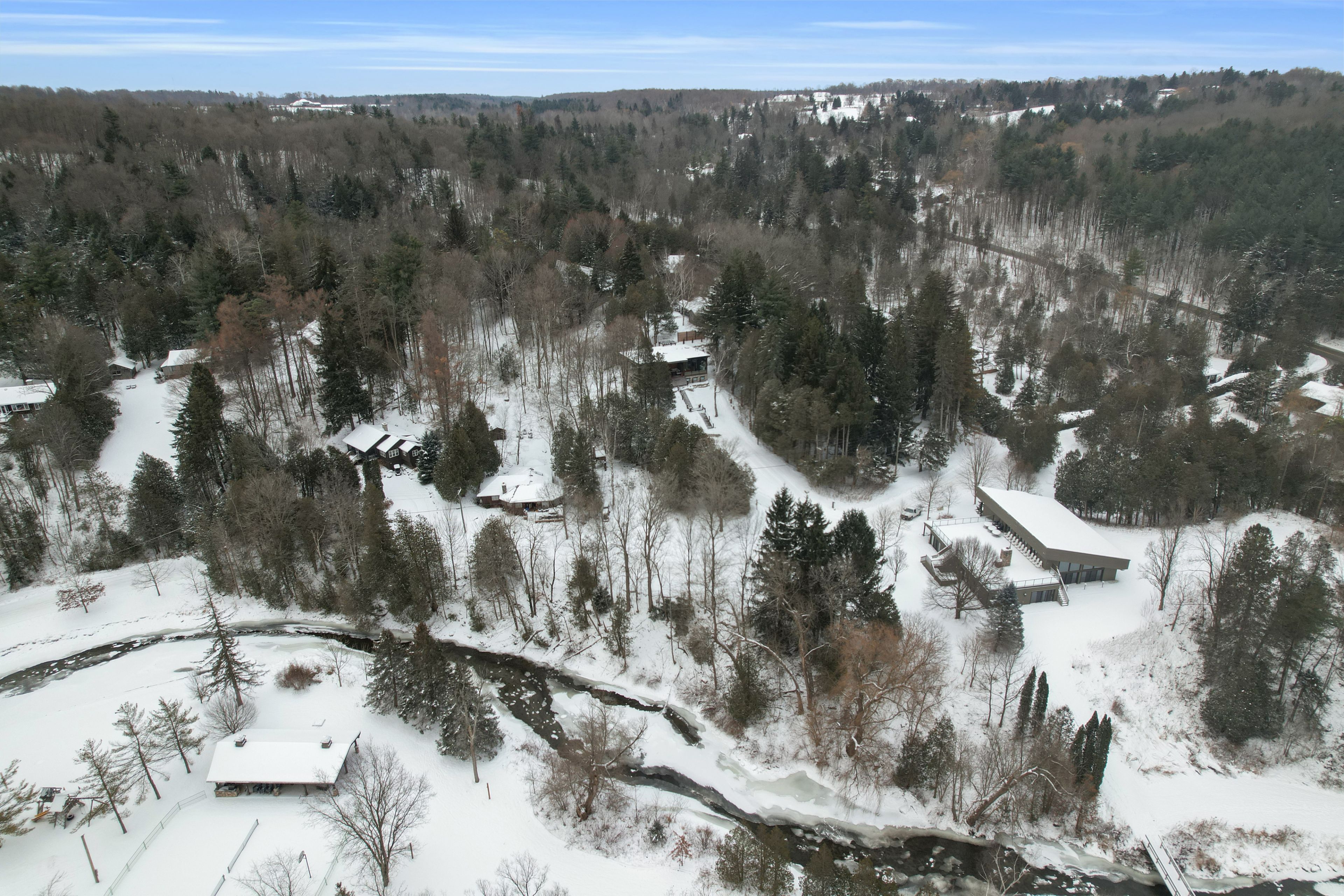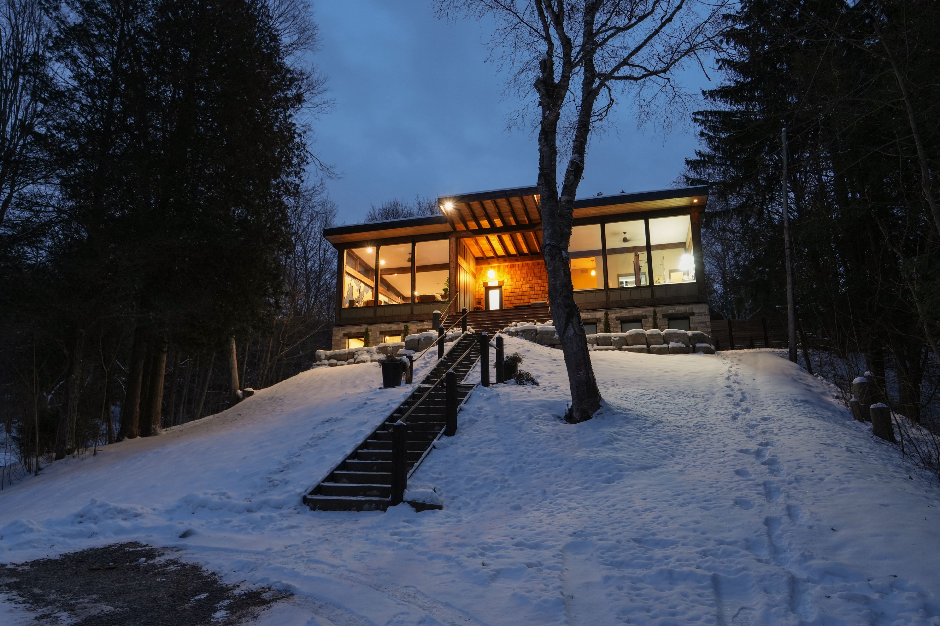 Welcome to 2084 grand blvd., a contemporary 3-bedroom, 4-bath summer home set within the exclusive, gated community of cedar springs, nestled along the niagara escarpment in the sought-after village of kilbride, just 15 minutes from downtown burlington. This private enclave of only 83 homes spans over 600 acres of protected nature and trails and offers a challenging golf course, pickleball and clay tennis courts, a sandy beach, and a vibrant community with year-round events, including a summer camp for children and grandchildren. Designed for recreation and entertaining, the home offers over 3,600 sq ft of living space across two levels with ceilings up to 12 ft, highlighted by post-and-beam douglas fir timbers and sweeping views of the golf course and escarpment, with the first tee just steps from the front door. The main level features open-concept kitchen, dining, and living areas overlooking the first fairway, with a chef-inspired kitchen offering built-in appliances, walk-in pantry, and oversized center island, while the dining area comfortably seats twelve. The serene primary suite enjoys golf course views, a dressing room, and spa-inspired ensuite, while two additional bedrooms share a jack-and-jill ensuite and walk-in closets. The walk-out lower level is an entertainer's retreat with theatre, golf simulator, games area, wet bar, gym, office or optional fourth bedroom, fourth bathroom, and an approx. 500 sq ft workshop/garage with glass walls. Outdoor living includes a covered front porch, rear timber/composite deck with glass railings, fire pit area, raised garden beds, and parking for up to 12 vehicles. Built with an icf foundation, shou sugi ban, protected douglas fir framing, spray foam insulation, in-floor radiant heating, unlimited hot water, uv-treated spring water, and ecoflo septic system, this is a rare offering delivering comfort, privacy, and resort-style living within the gta. Please note: certain seasonal provisions apply to the property.