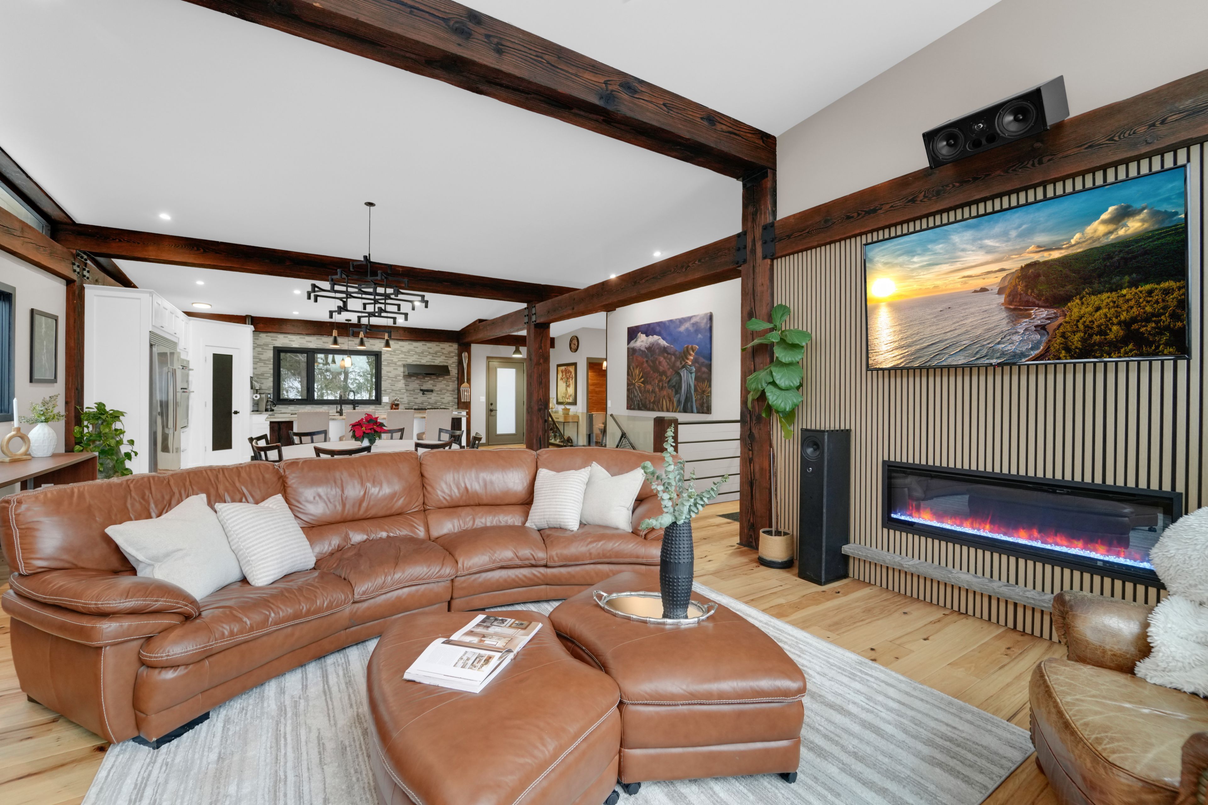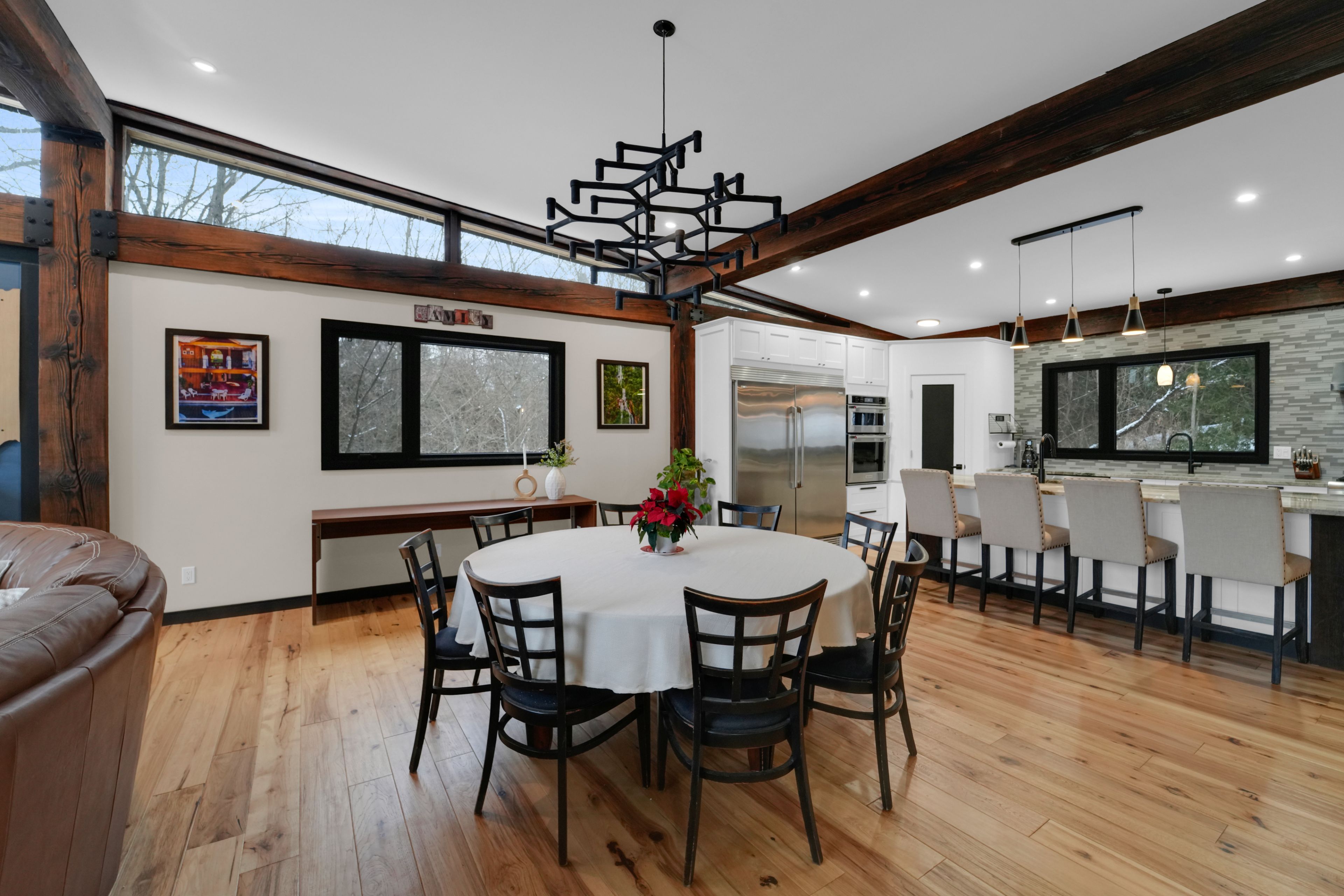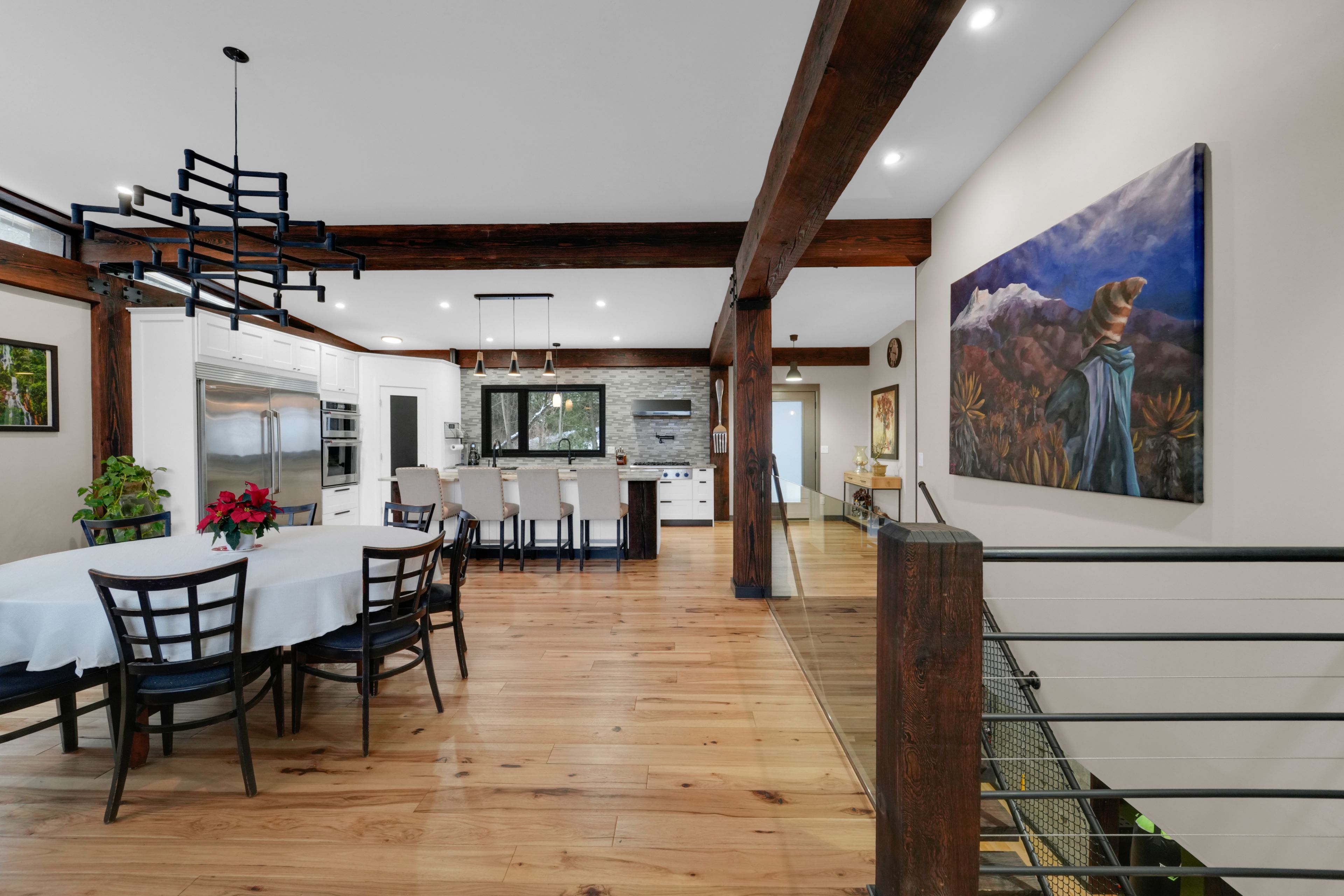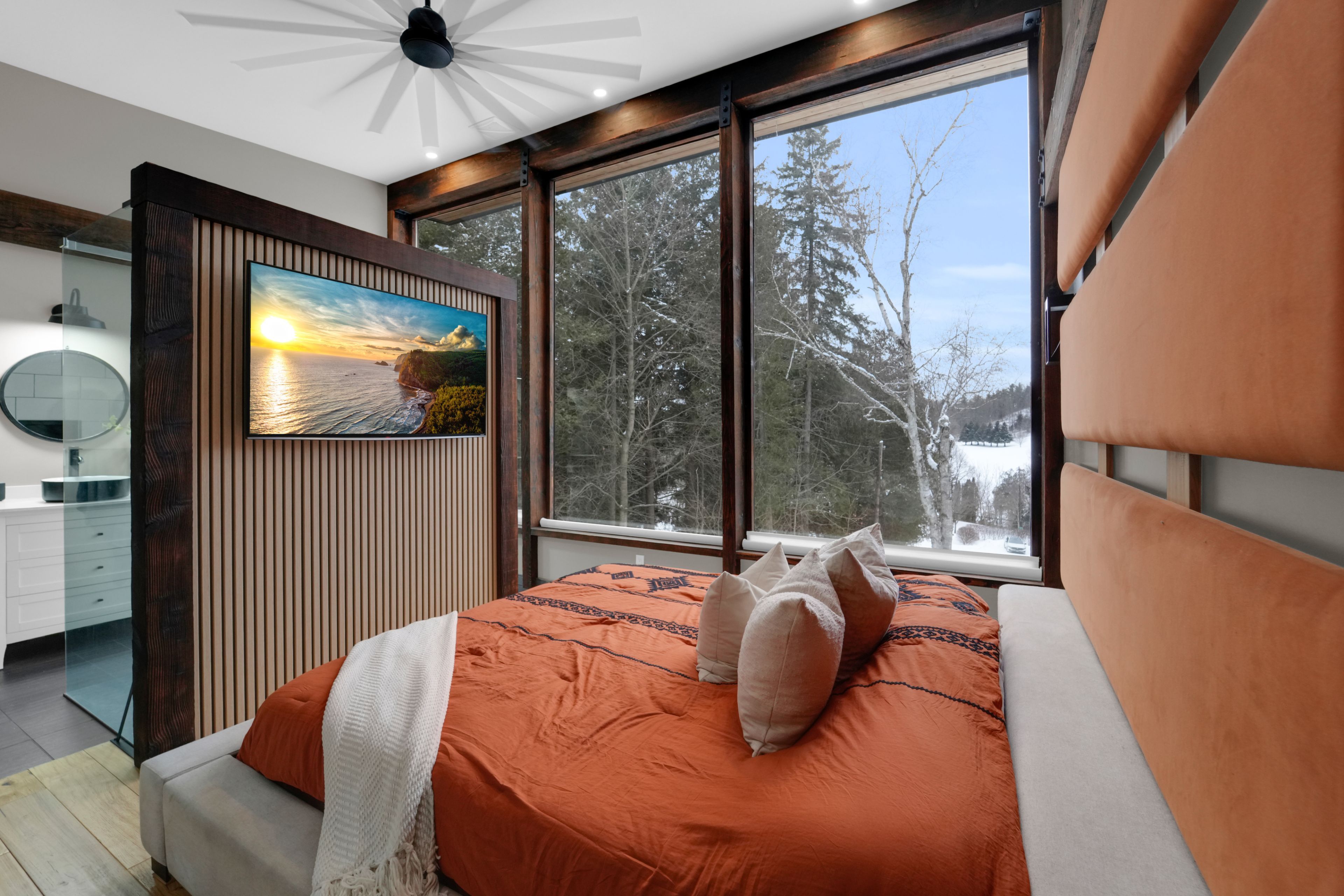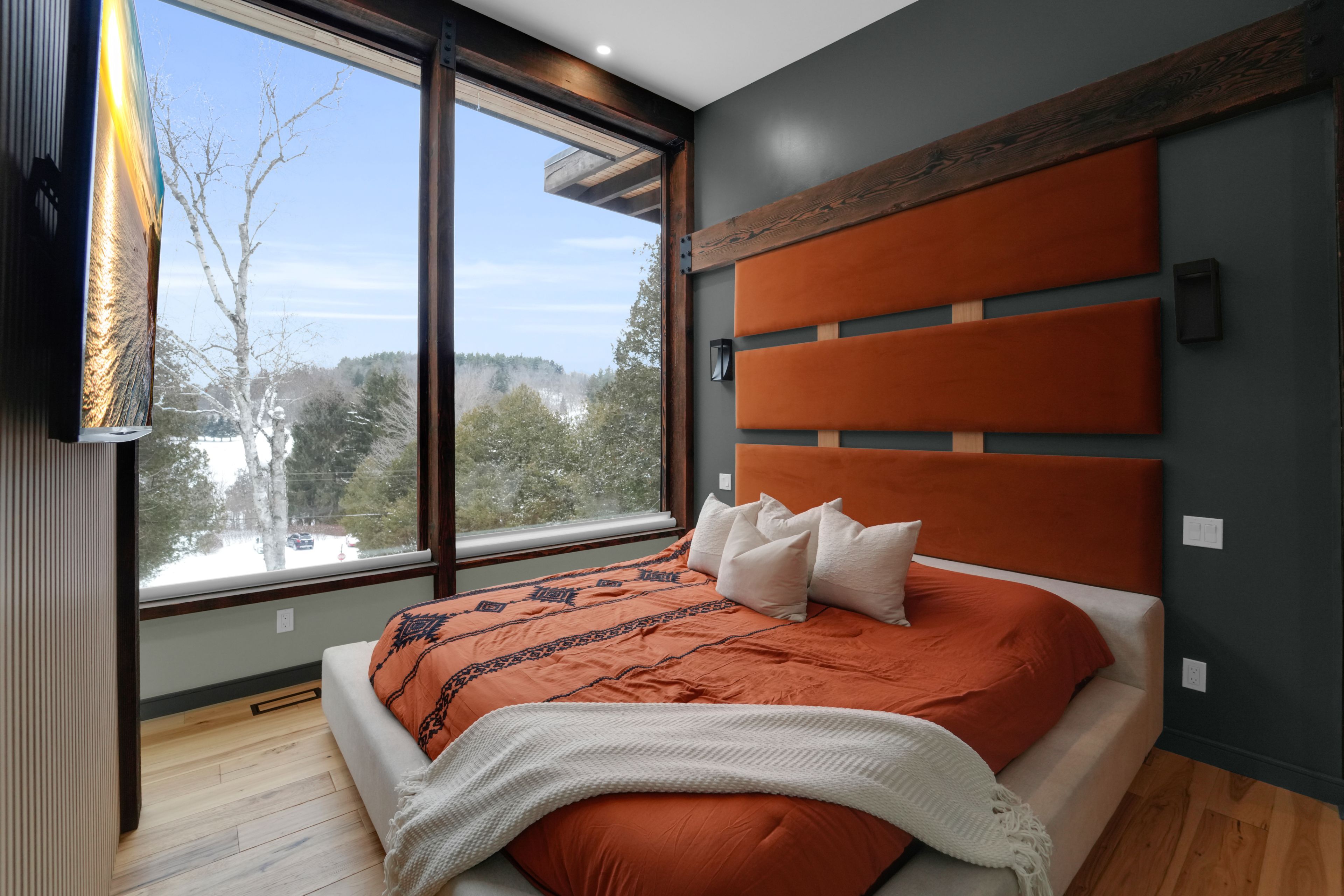 Welcome to 2084 grand blvd., a contemporary 3-bedroom, 4-bath summer home set within the exclusive, gated community of cedar springs, nestled along the niagara escarpment in the sought-after village of kilbride, just 15 minutes from downtown burlington. This private enclave of only 83 homes spans over 600 acres of protected nature and trails and offers a challenging golf course, pickleball and clay tennis courts, a sandy beach, and a vibrant community with year-round events, including a summer camp for children and grandchildren. Designed for recreation and entertaining, the home offers over 3,600 sq ft of living space across two levels with ceilings up to 12 ft, highlighted by post-and-beam douglas fir timbers and sweeping views of the golf course and escarpment, with the first tee just steps from the front door. The main level features open-concept kitchen, dining, and living areas overlooking the first fairway, with a chef-inspired kitchen offering built-in appliances, walk-in pantry, and oversized center island, while the dining area comfortably seats twelve. The serene primary suite enjoys golf course views, a dressing room, and spa-inspired ensuite, while two additional bedrooms share a jack-and-jill ensuite and walk-in closets. The walk-out lower level is an entertainer's retreat with theatre, golf simulator, games area, wet bar, gym, office or optional fourth bedroom, fourth bathroom, and an approx. 500 sq ft workshop/garage with glass walls. Outdoor living includes a covered front porch, rear timber/composite deck with glass railings, fire pit area, raised garden beds, and parking for up to 12 vehicles. Built with an icf foundation, shou sugi ban, protected douglas fir framing, spray foam insulation, in-floor radiant heating, unlimited hot water, uv-treated spring water, and ecoflo septic system, this is a rare offering delivering comfort, privacy, and resort-style living within the gta. Please note: certain seasonal provisions apply to the property.