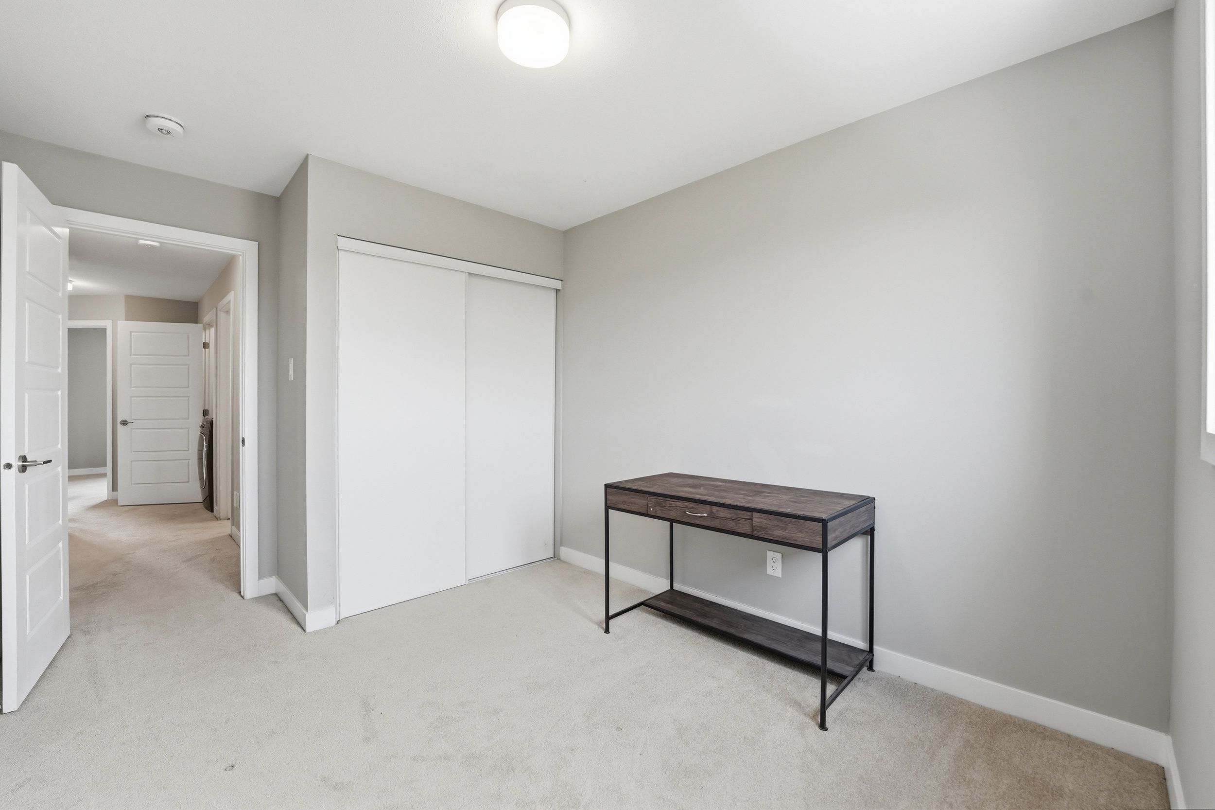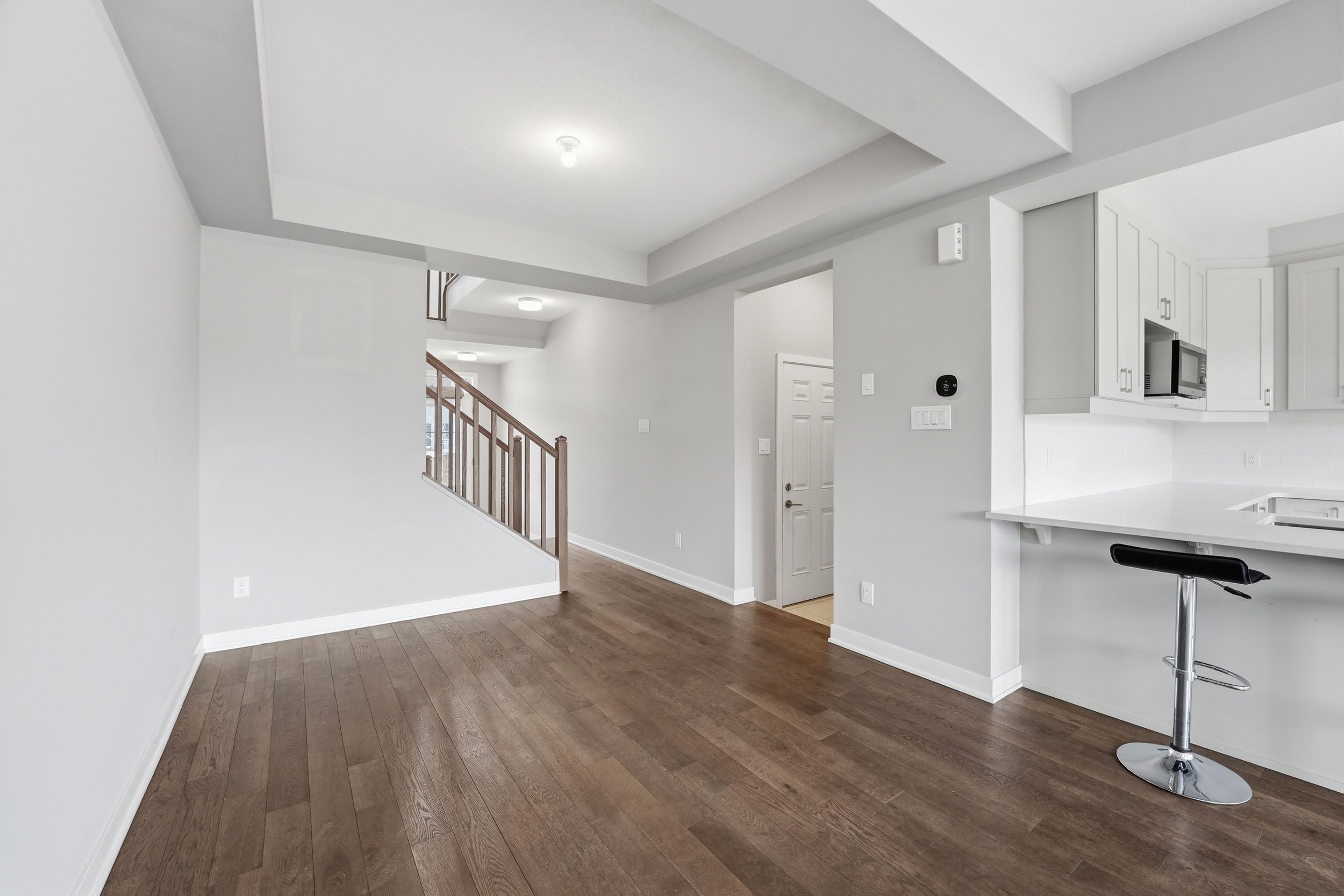 Backing onto green space with no rear neighbours is this stunning 3-bed, 2. 5-bath mattamy townhome in sought-after jardin crossing. Bright and airy with 9' ceilings, large sun-filled windows, and a modern open-concept layout perfect for everyday living and entertaining. The stylish kitchen features quartz countertops, ample cabinetry, and the option to eat informally at the breakfast bar or gather in the dining room featuring coffered ceilings. Upstairs, enjoy a spacious primary retreat with walk-in closet and ensuite, plus two additional bedrooms and convenient second-floor laundry. The finished basement adds flexible living space for movie nights, home office, or gym. Steps to parks, pathways, schools, and minutes to shopping, transit, and highway access - this home delivers the perfect mix of comfort and convenience.