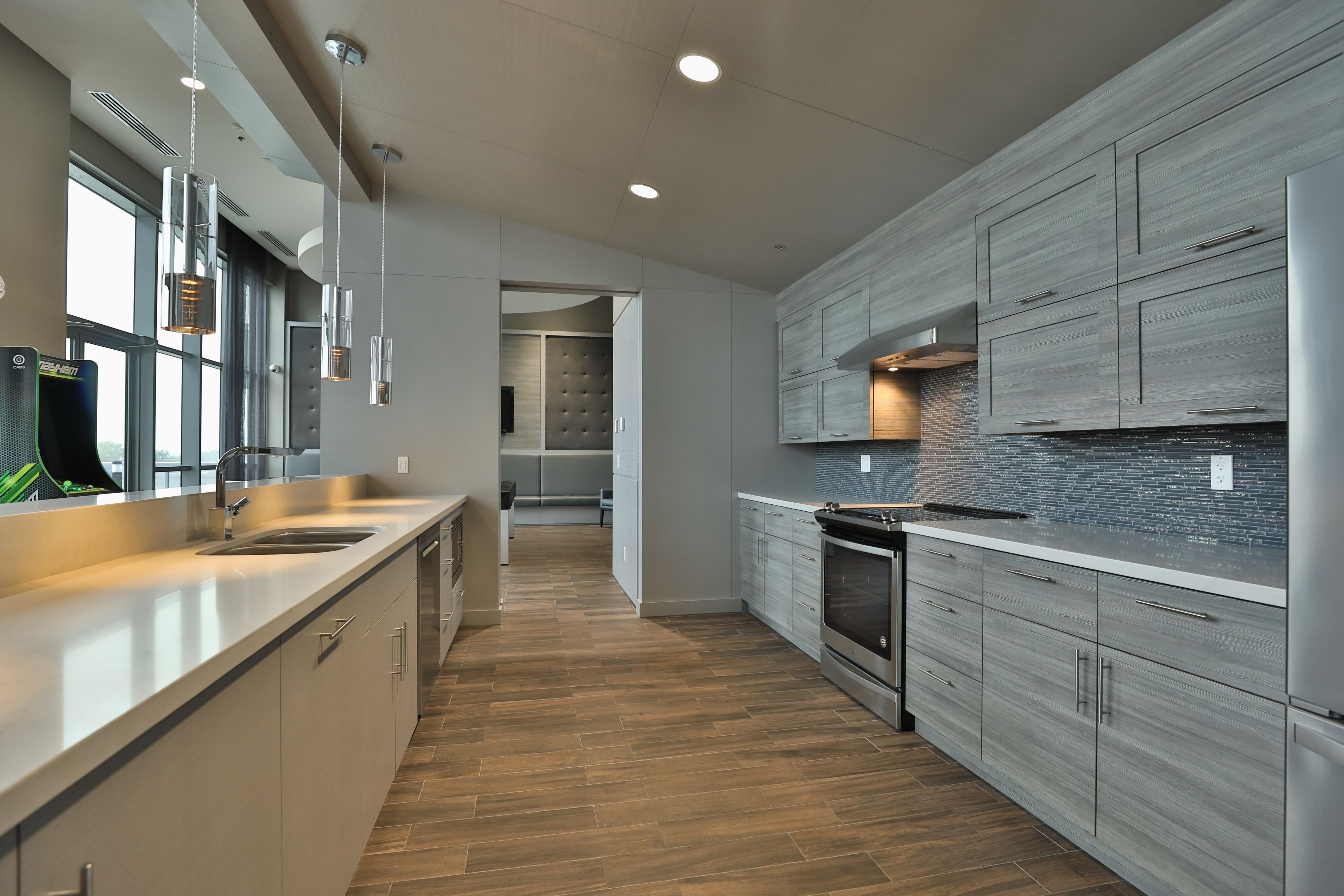 • Modern kitchen featuring stainless steel appliances and ample storage space.