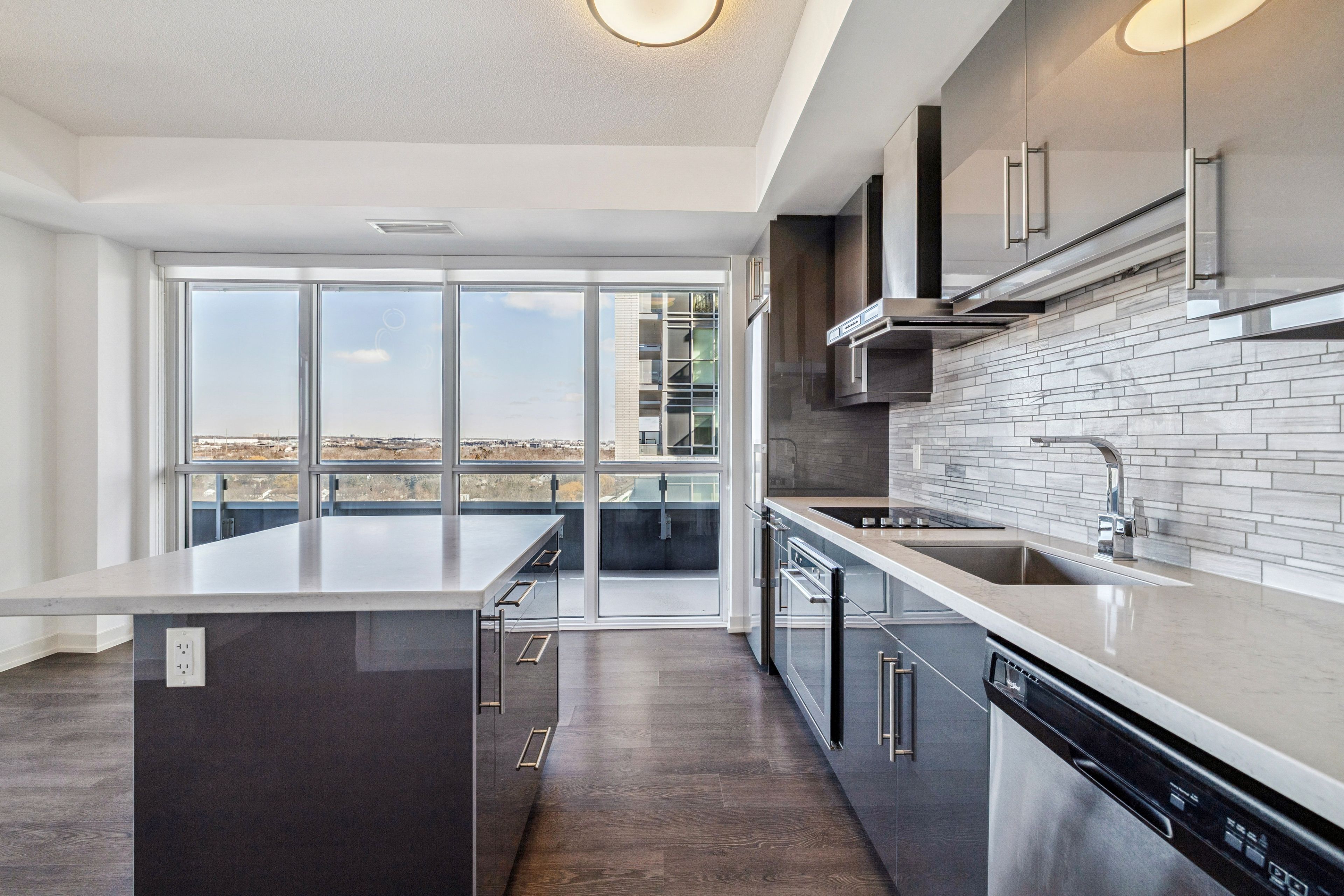 Beautiful corner unit offering 2 bedrooms and 2 bathrooms in the highly desirable paradigm condominium. Boasting a prime northeast exposure, this home offers sweeping views of the escarpment, city skyline and lake, all enjoyed from an expansive wraparound balcony that extends across the entire suite. Stylish upgrades are found throughout, including sleek high-gloss cabinetry, granite countertops, backsplash and elegant flooring. The modern, chef-inspired kitchen features stainless steel appliances, a generous island, and abundant storage. The primary bedroom provides a relaxing escape with a walk-in closet and private ensuite. One parking space and a storage locker are included. Perfectly situated steps from burlington go station and major highway access, this location is ideal for commuters and within walking distance to downtown burlington, lake ontario, shopping, dining, and parks. An opportunity you won't want to pass up. Say yes to the address!