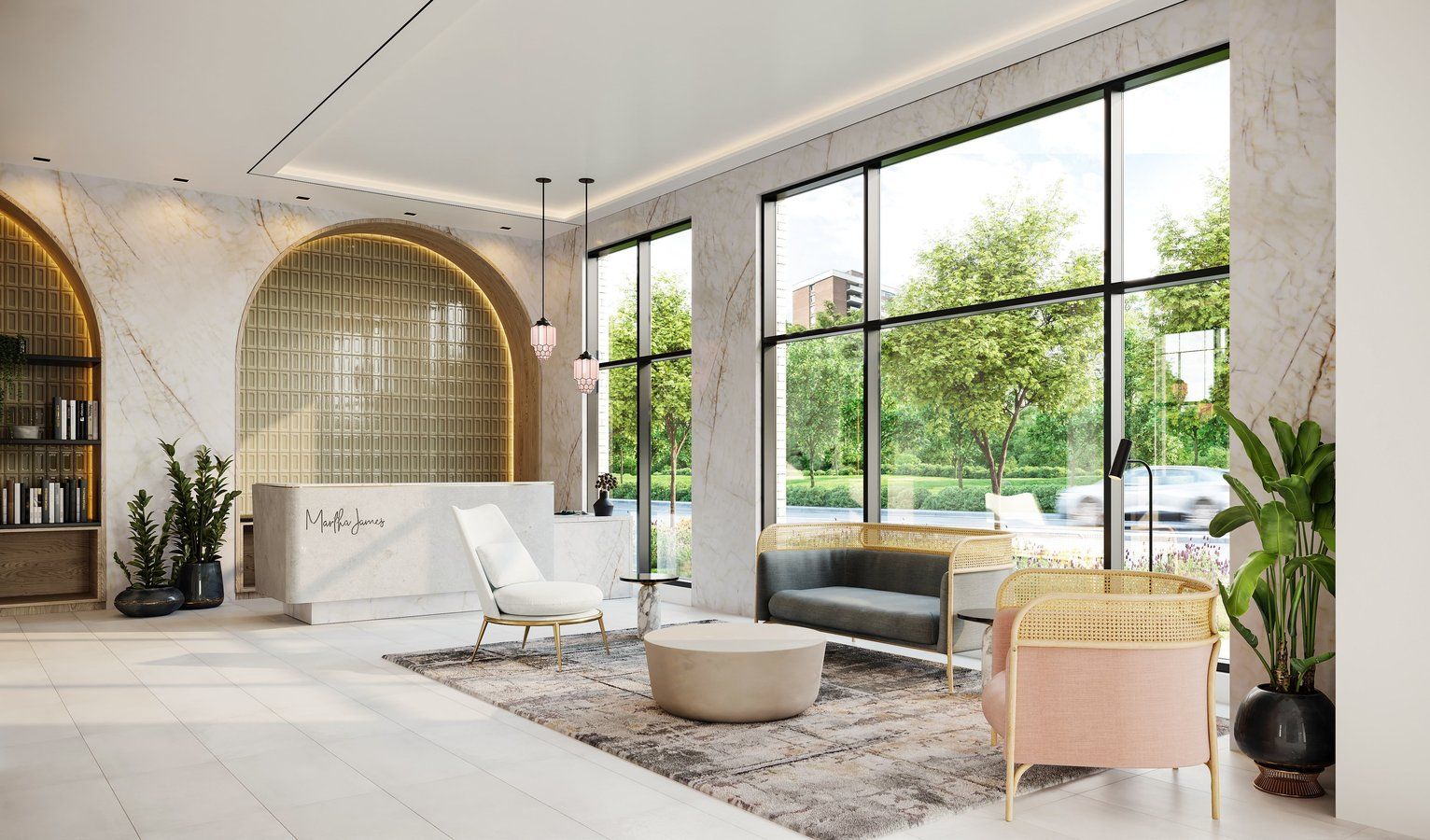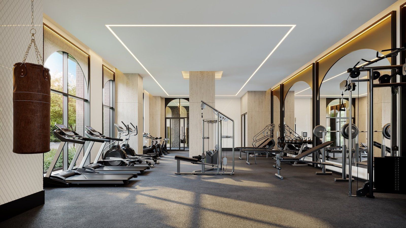 • Premium amenities include a fitness center and rooftop terrace.