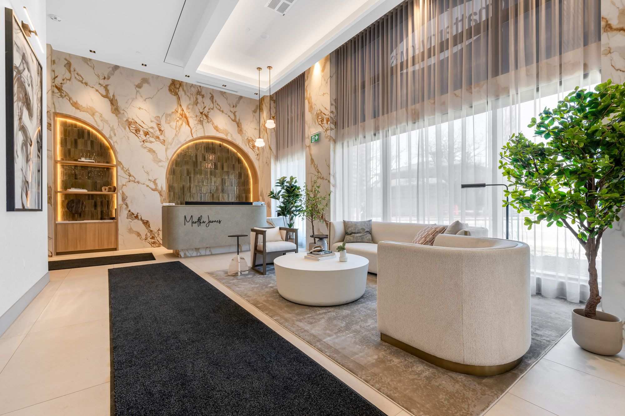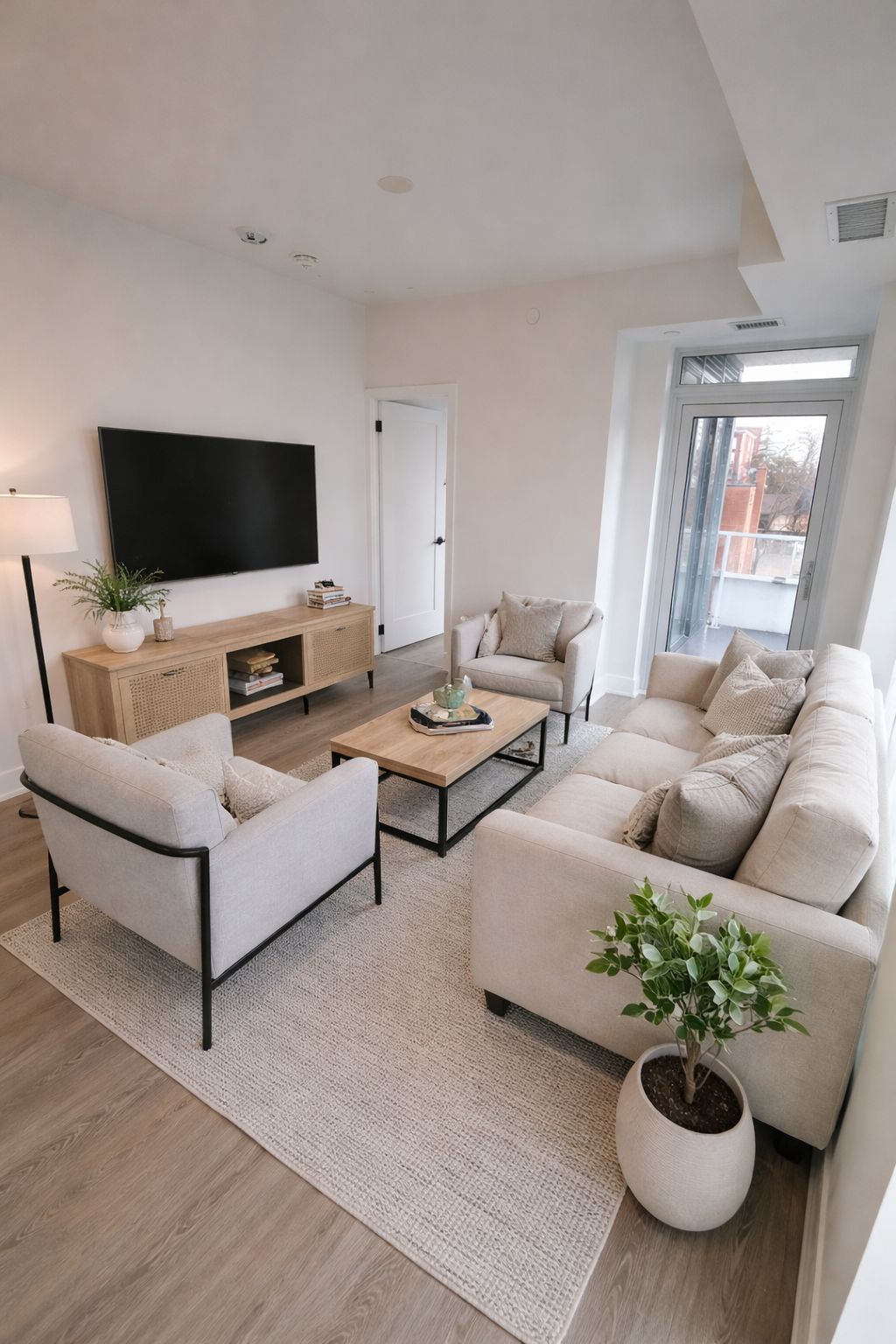 • Bright open-concept suite with floor-to-ceiling windows and premium finishes.