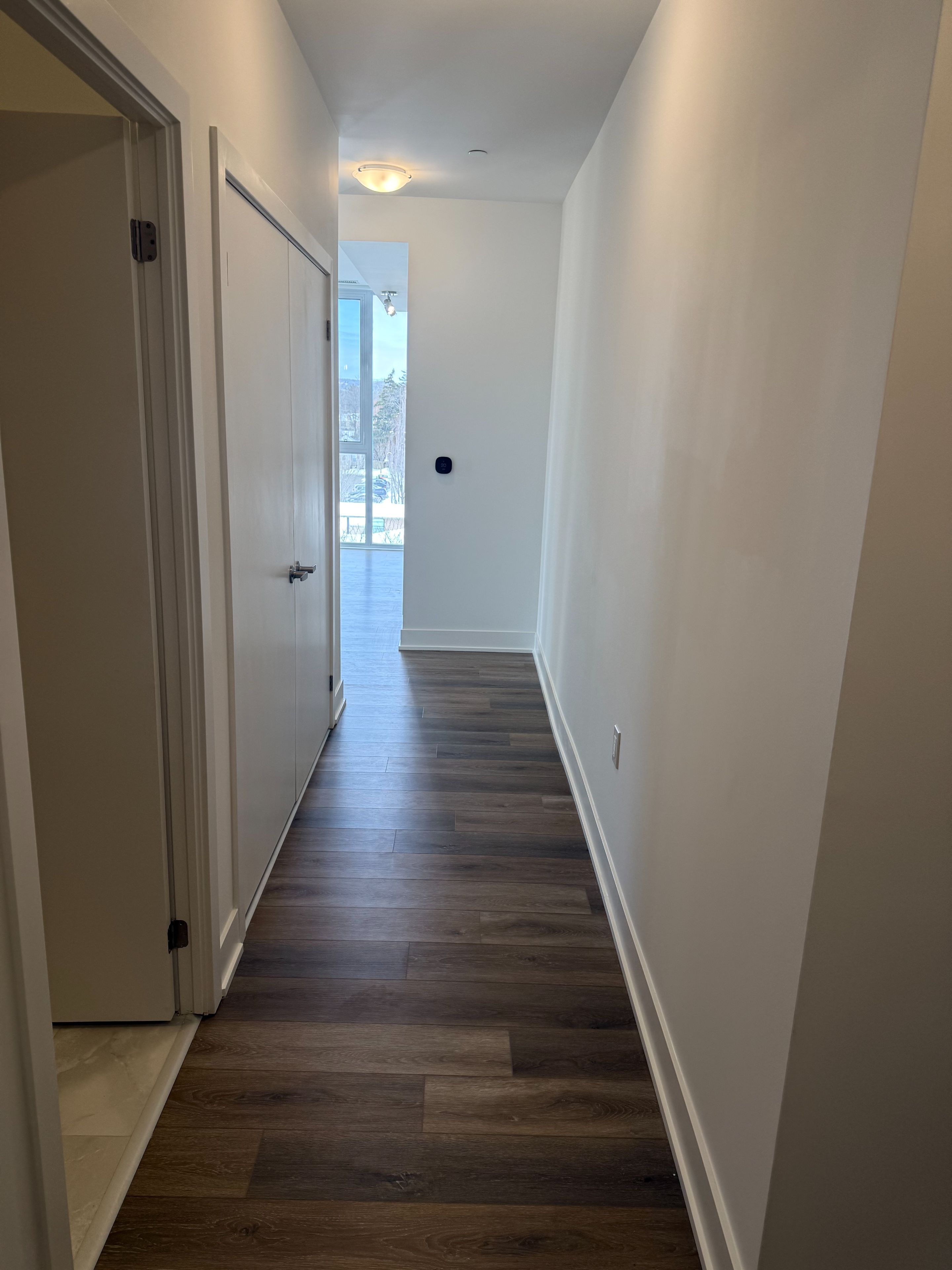 Welcome to this stunning brand new 2-bedroom, 2-bathroom condo offering modern design and exceptional comfort. This bright and spacious unit features laminate flooring throughout, floor-to-ceiling windows, and an open-concept layout filled with natural light. The sleek kitchen is equipped with integrated appliances, complemented by led pot lights for a clean, contemporary feel. The unit also includes one parking space and a locker for added convenience. Steps to dining, shopping, waterfront trails, transit, parks, and major highways, this condo offers the perfect blend of comfort and convenience in a highly desirable location.