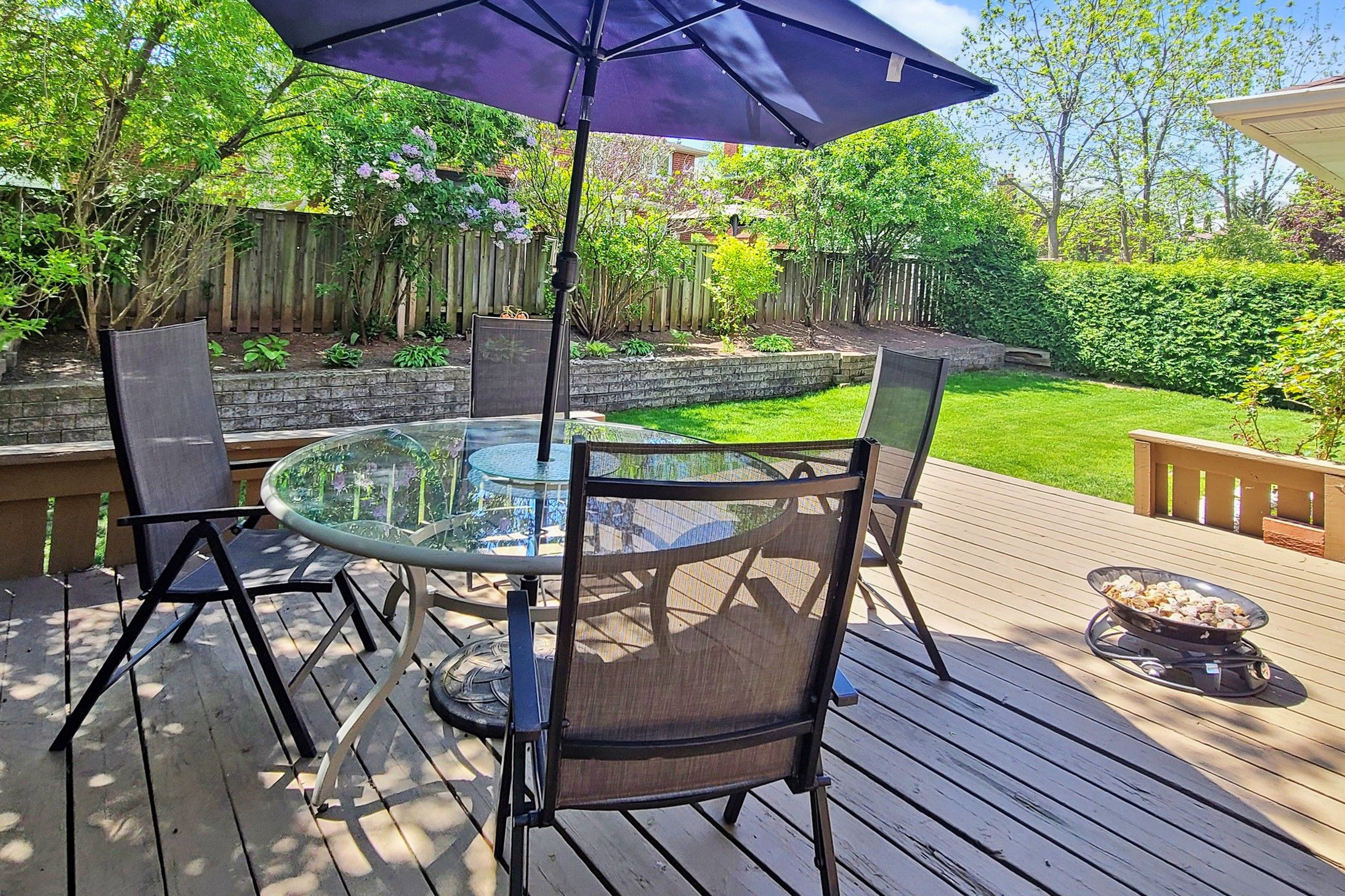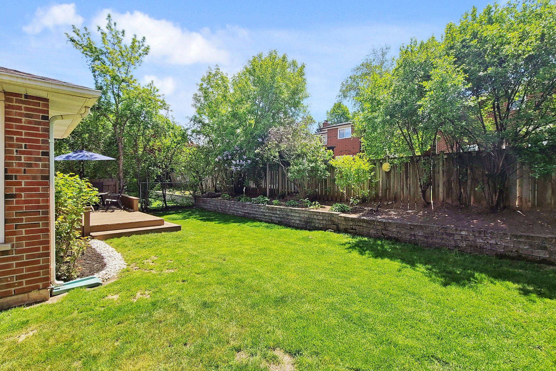 • Beautifully maintained backyard with deck for outdoor enjoyment.