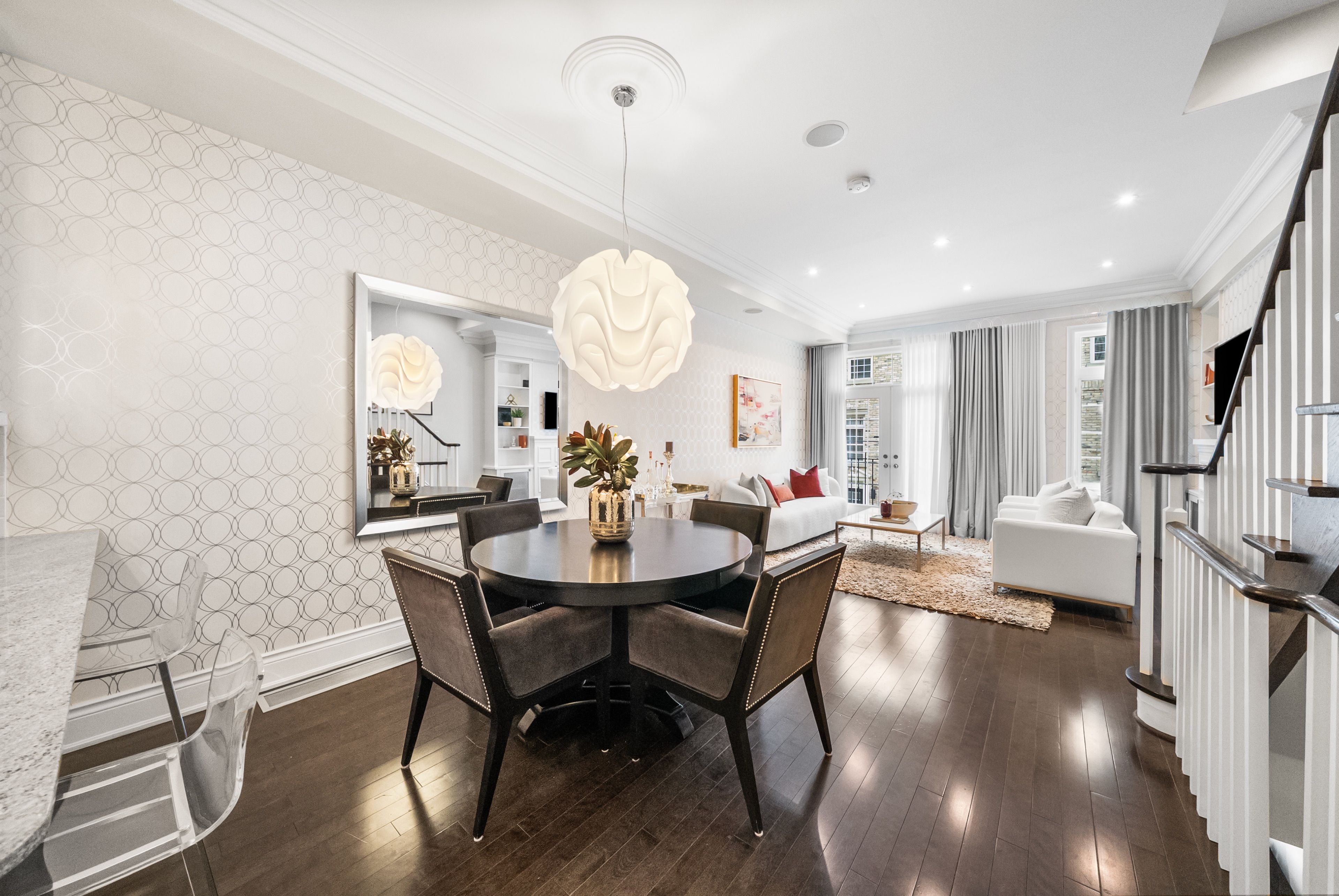 208a merton is a lifestyle destination for those who crave sophistication, comfort, and connection in one of torontos most vibrant enclaves. This rare freehold townhouse offers the ease of ownership without the fees, combining the freedom of a house with the low-maintenance appeal of urban living. Wake up in your sun-drenched primary suite, pour a coffee, and head upstairs to your 534 square foot rooftop terrace. Wrapped in skyline views, surround sound, and featuring a fully automated rolltec awning, it is your private retreat in the sky. Spend evenings dining alfresco under the stars or curling up beside the glow of the gas fireplace in your elegant living room, with built-in shelves and crown moulding framing the space. Inside, this home balances contemporary design with timeless warmth. Soaring 10 foot ceilings on the main level create a gallery-like feel, perfect for entertaining. The chefs kitchen, with its high-end appliances, granite counters, and ceiling-height shaker cabinetry, opens seamlessly to a walk-out balcony with a gas line. Upstairs, the versatile layout adapts to your lifestyle. Whether you envision a stylish media lounge, a dressing room worthy of a magazine spread, or a cozy guest suite, every space is rich with light, storage, and thoughtful finishes. Heated floors in all bathrooms and the foyer add a daily touch of luxury, and integrated speakers let you soundtrack your moments with ease. And when the city calls, you are just steps to the beltline trail, davisville subway, and the boutiques and cafés of yonge street, along with top-rated schools and a true sense of community. A rare built-in two car garage, central vacuum, alarm system, and custom window coverings complete the offering. This is turnkey midtown living for those who want it all style, function, and the freedom to live beautifully.