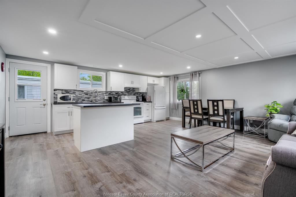 • Stylish eat-in kitchen with ample storage and workspace.