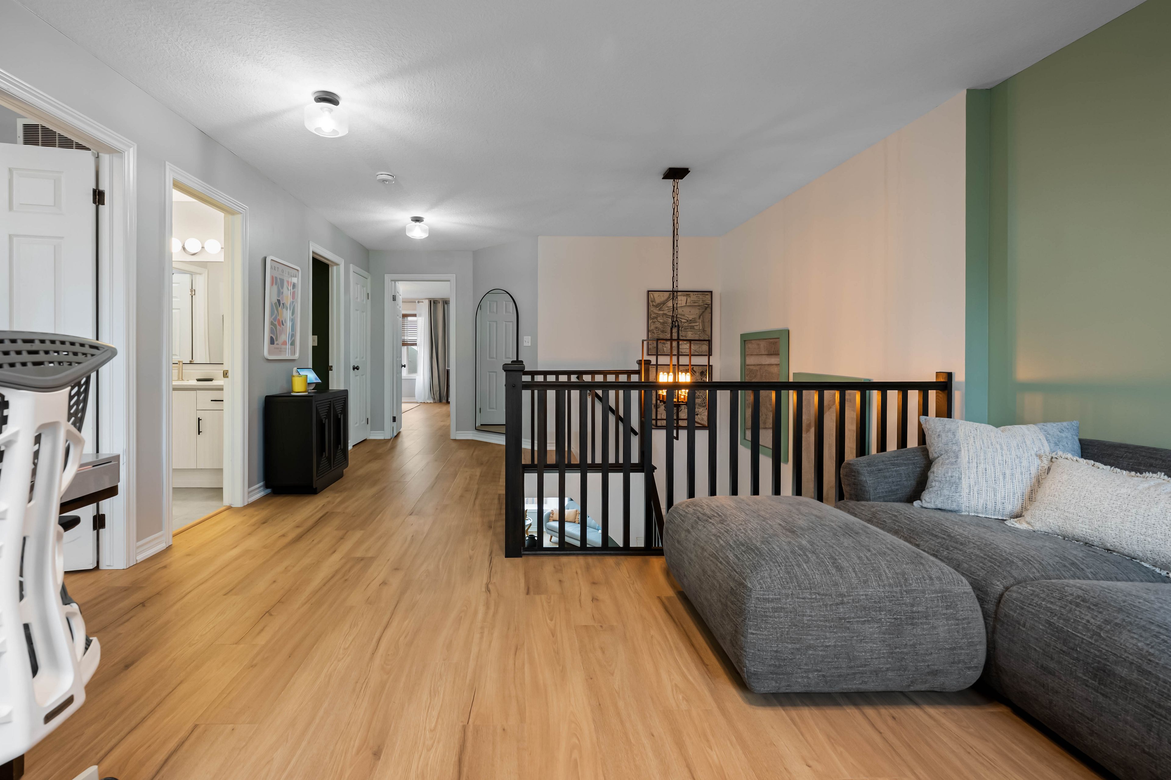 Welcome to 209 drenters court in the charming community of rockwood - an exceptional family home tucked away on a quiet, family-friendly cul-de-sac. Built in 2017 by reid homes and offering over 2,100 sq ft of thoughtfully designed living space, this beautifully maintained 3-bedroom, 3-bathroom home blends modern comfort with timeless style. Step inside to a bright, open-concept main floor designed for everyday living and effortless entertaining. The spacious living room features a cozy gas fireplace & large picture window overlooking the backyard, filling the space with natural light. The dining area walks out to a generous back deck, perfect for summer bbqs and seamless indoor-outdoor living. At the heart of the home is a stunning chef's kitchen complete with quartz island with seating, barn board countertops, abundant cabinetry, and premium appliances including 36" wolf gas range and kitchenaid fridge. Upstairs, a versatile family room provides the perfect space for a second living area, home office, or kids' playroom. The primary bedroom is a true retreat featuring walk-in closet & beautifully upgraded spa-inspired ensuite with a deep soaker tub, walk-in shower, and oversized double vanity. Two additional bright bedrooms with double closets and a spacious 4-piece family bathroom offer comfort and functionality for the whole family. The unfinished walk-out basement provides incredible potential for future living space, featuring large above-grade windows, a sliding door to the backyard, and a bathroom rough-in already in place. Located just minutes from rockwood conservation area's scenic hiking trails, limestone caves, beaches, and canoeing along the eramosa river, this home offers the perfect balance of nature and convenience. Enjoy the charm of small-town living while being just a short drive to guelph, highway 7, and quick connections to the 401 for commuting. A beautifully upgraded home in a welcoming community ready for its next family.