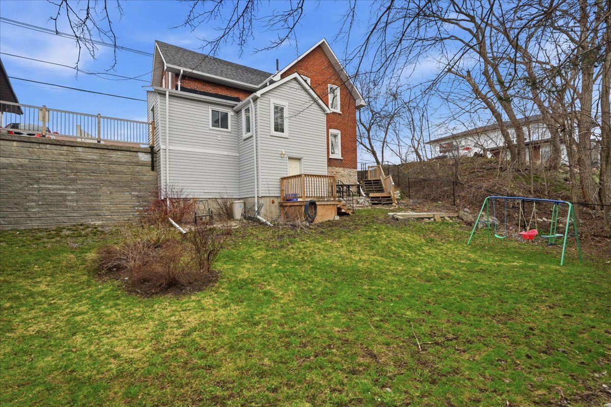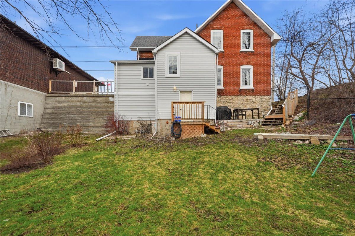 Charming and well maintained 2 storey brick home located in the heart of trenton, offering incredible convenience with shopping, restaurants, parks, schools, and everyday amenities just minutes away. A great blend of character, space and location. Inside, the home features a bright and inviting layout with a spacious living area filled with natural light and a separate dining room with detailed trim work, ideal for hosting or everyday living. The kitchen offers a clean, refreshed look with white cabinetry and modern backsplash, along with excellent potential to further customize and add value. Upstairs includes three well sized bedrooms and a full bathroom. The primary bedroom stands out with its own walkout balcony, providing a rare and private space to relax. The home has been very well maintained throughout, showing clear pride of ownership. Outside, you will find a large and private backyard, a rare find for this central location, complete with a deck and patio area for outdoor enjoyment. Additional features include separate access to the basement, offering great storage and future potential. A solid opportunity in a central location with strong value and unique features.