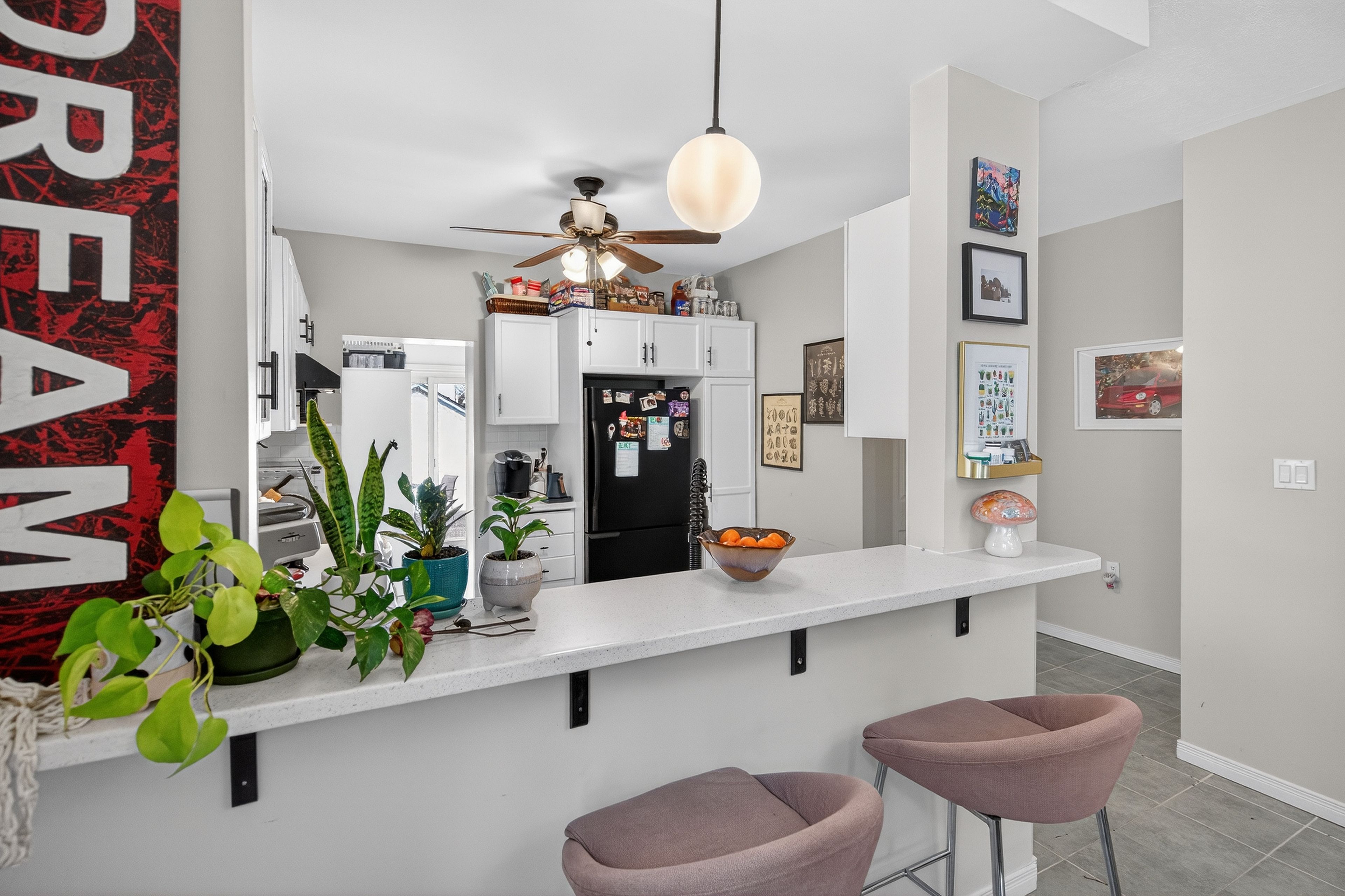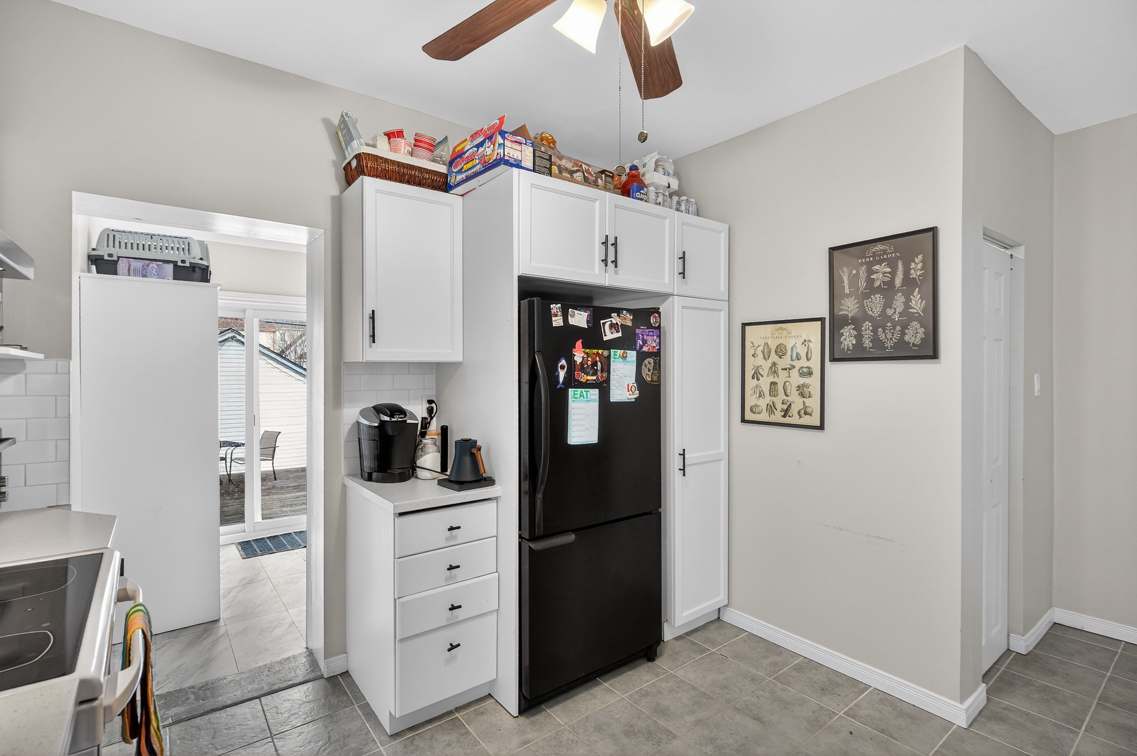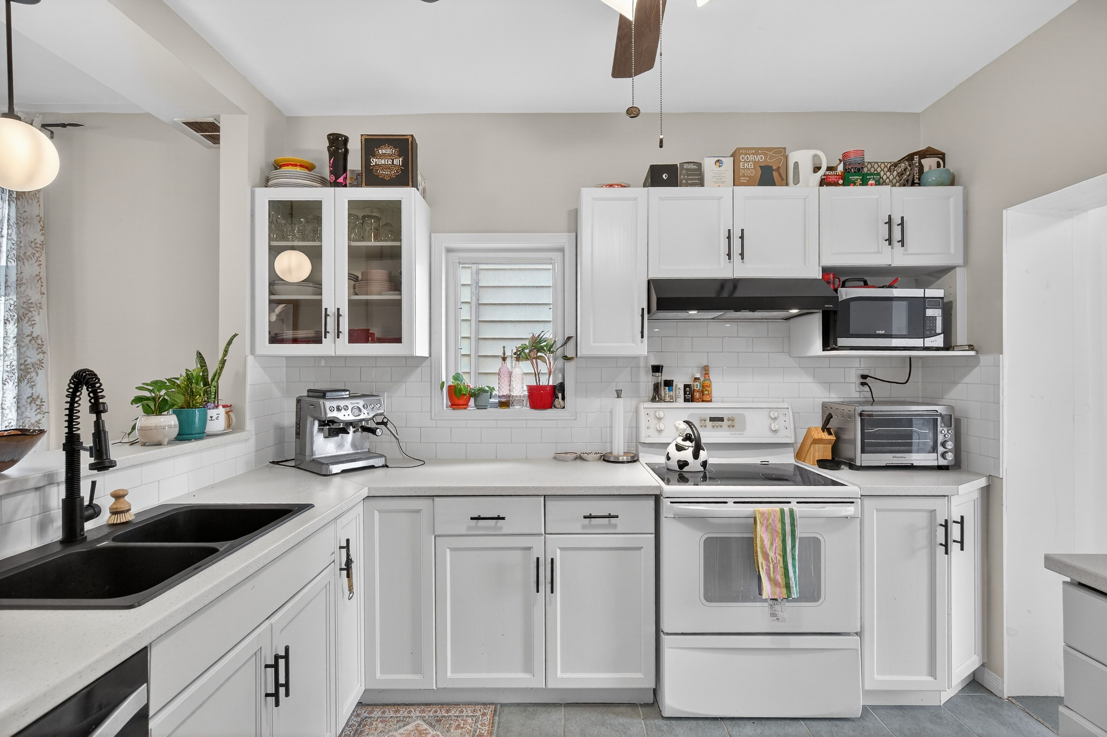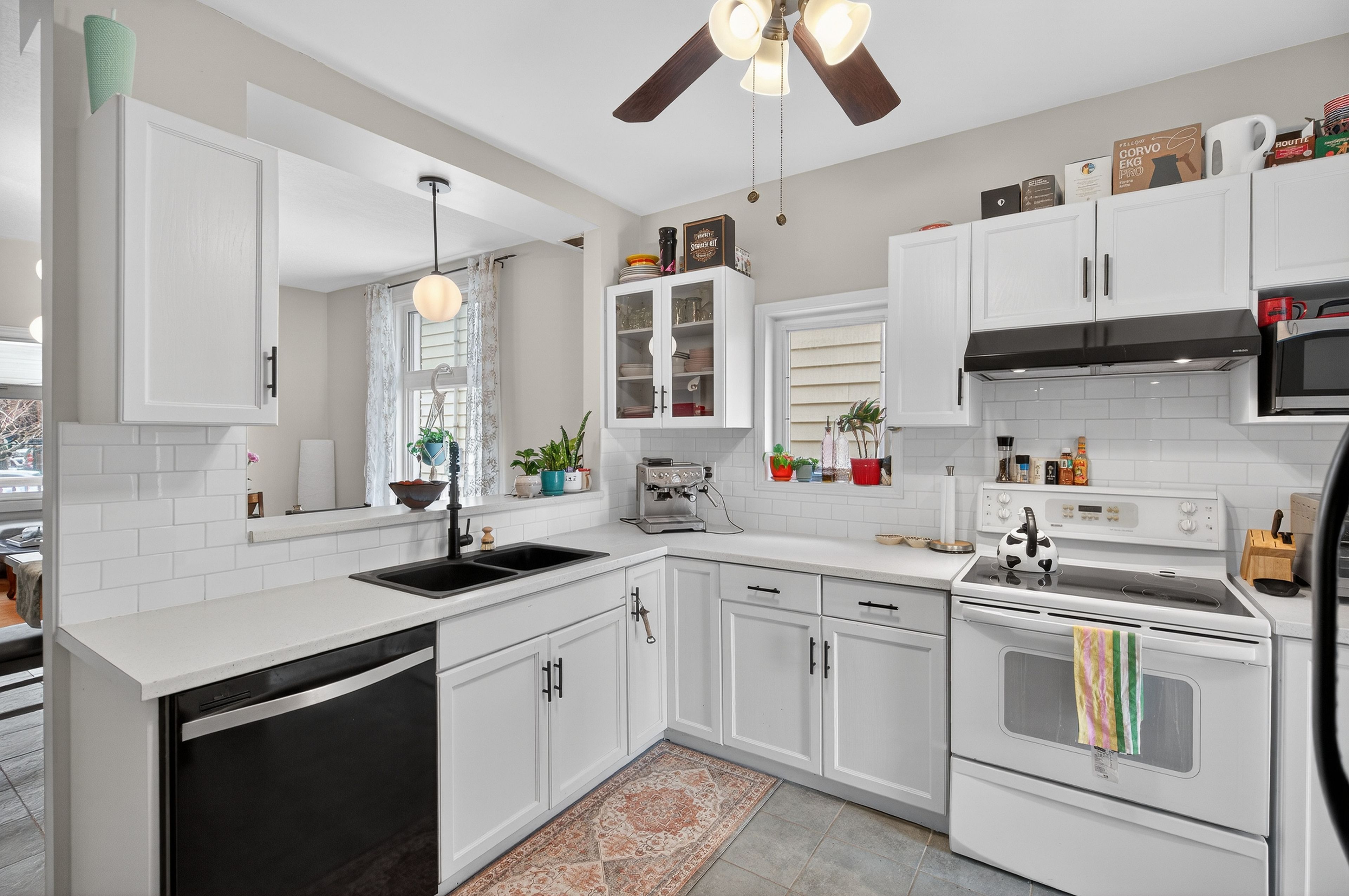 • Updated kitchen with new countertops, ample storage, and a walk-in pantry.