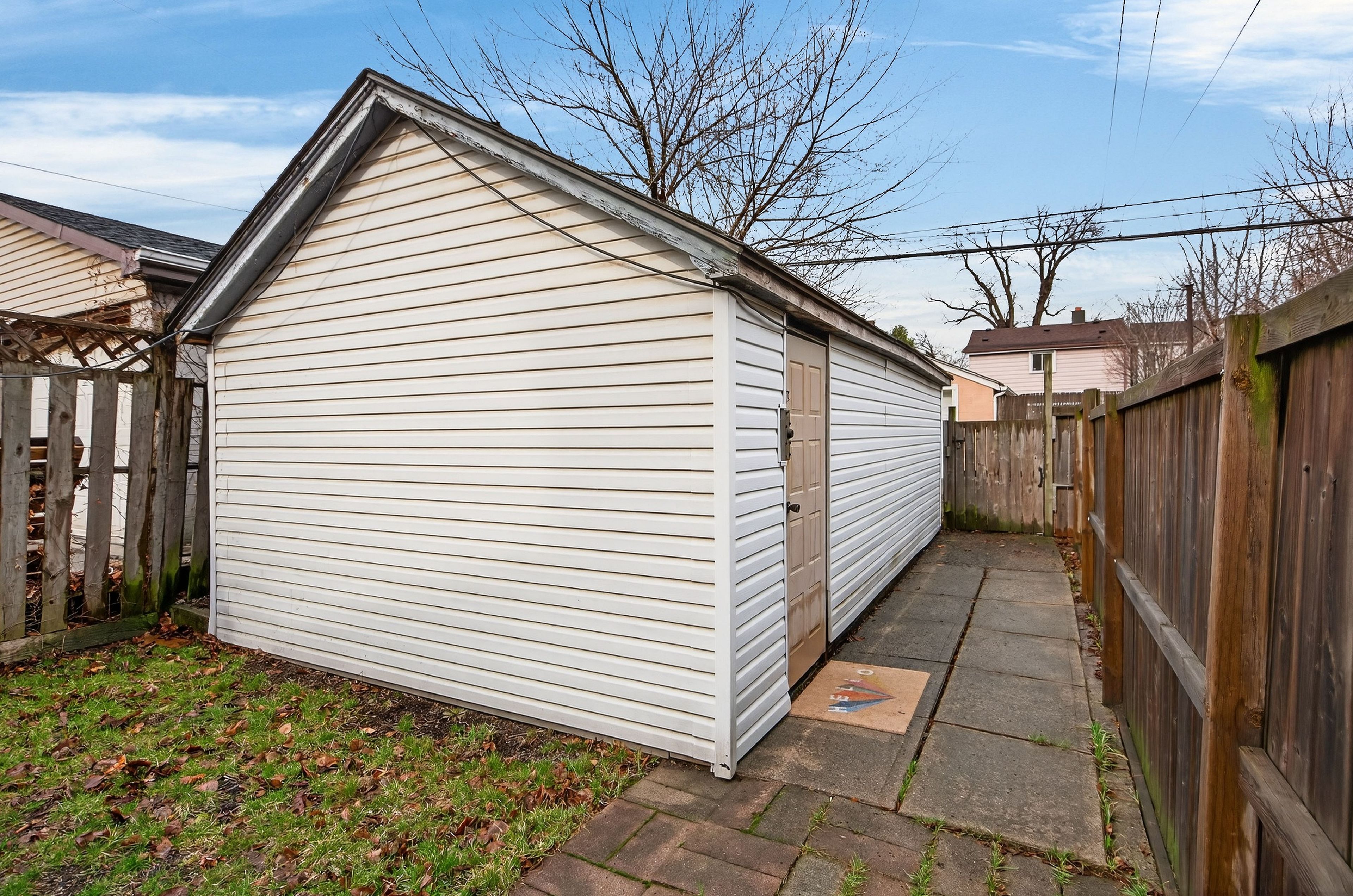 • Detached garage with power, great for storage or a workshop.