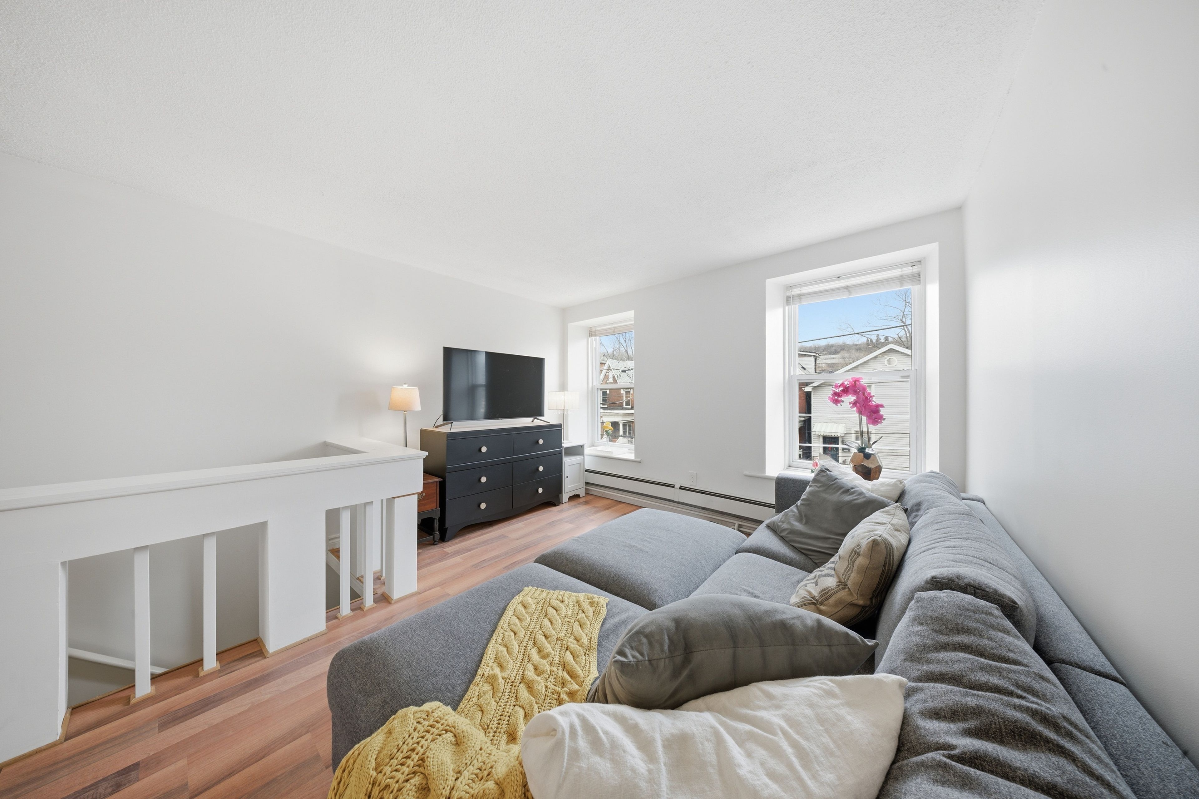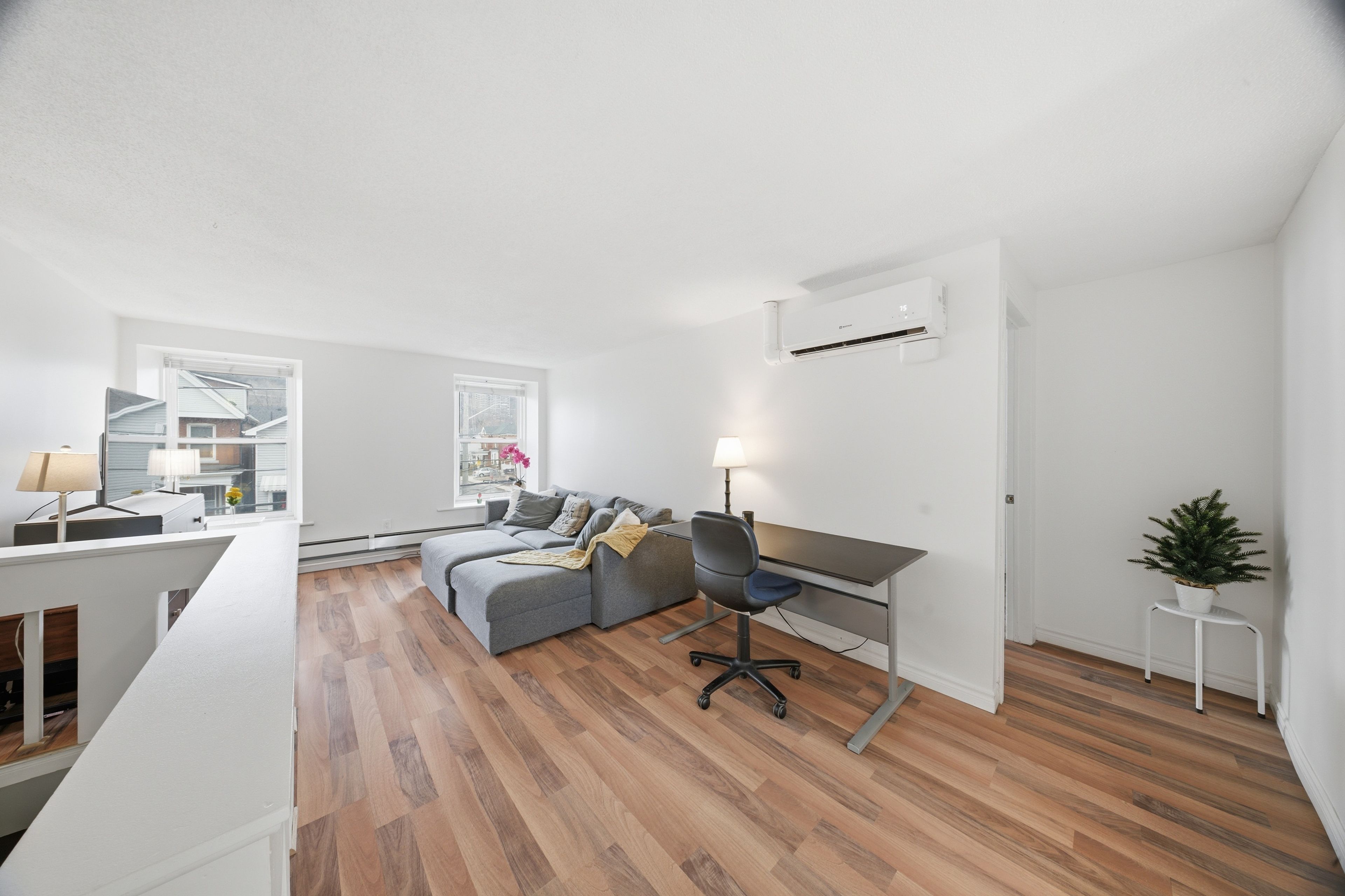 • Fully furnished upper-floor suite with large windows for natural light.
