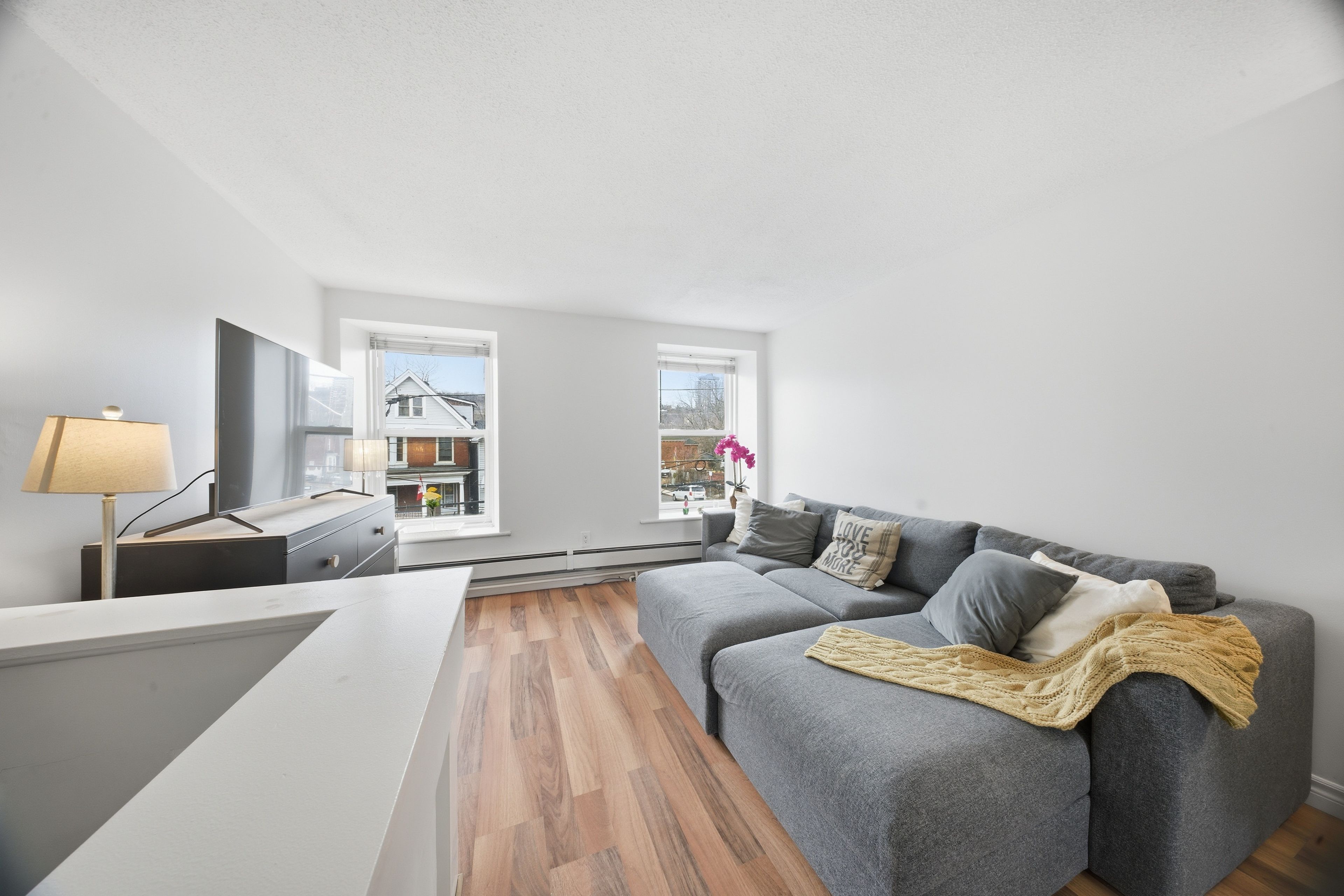 This fully-furnished, move-in-ready upper-floor suite includes 1 parking space and offers a functional layout with large windows throughout, filling the home with beautiful natural light. Enjoy the added comfort of air conditioning; perfect for those warm summer months! The suite features a gorgeous renovated eat-in kitchen with stainless steel appliances, built-in pantry cabinets and a comfortable living space; perfect for everyday life. Coin-operated laundry is located on the lower floor. Enjoy a highly connected downtown location just steps from the hamilton go centre. Ideally situated near several major hospitals, including st. Joseph's healthcare hamilton, hamilton general hospital and juravinski hospital, this location is especially appealing for healthcare professionals. Mcmaster university is also nearby, making this a great option for graduate students. Surrounded by cafes, restaurants, grocery stores and everyday essentials, you're also just minutes from parks, libraries and the vibrant downtown core of hamilton; everything you need is right at your doorstep! Perfect for young professionals or couples seeking a comfortable and well-located place to call home. Don't miss your chance to live in this beautiful turnkey suite in a prime, convenient location.