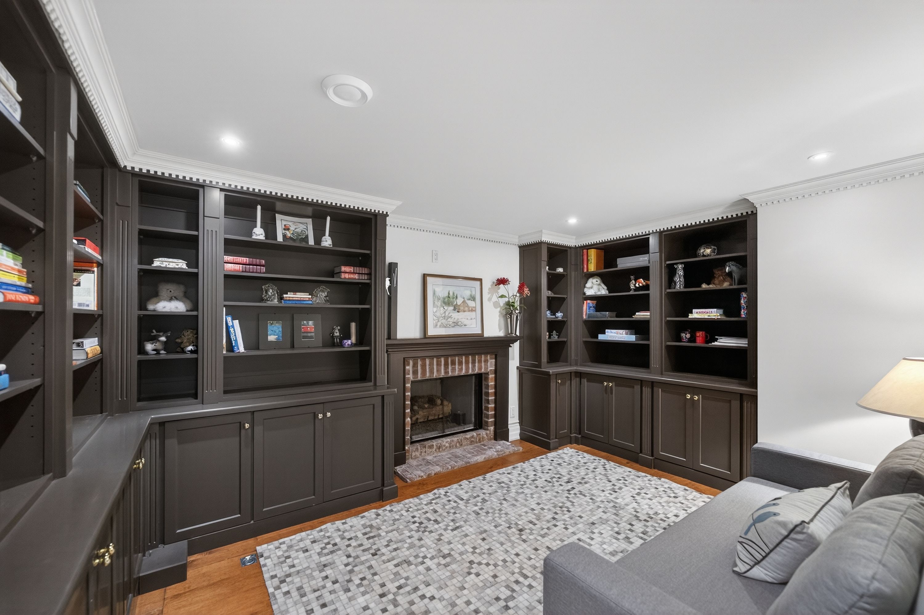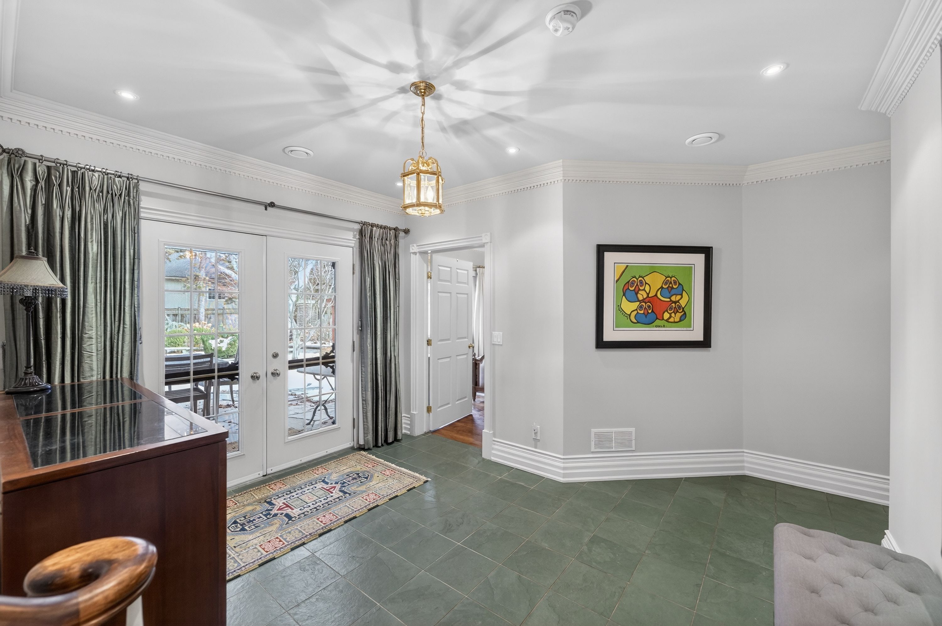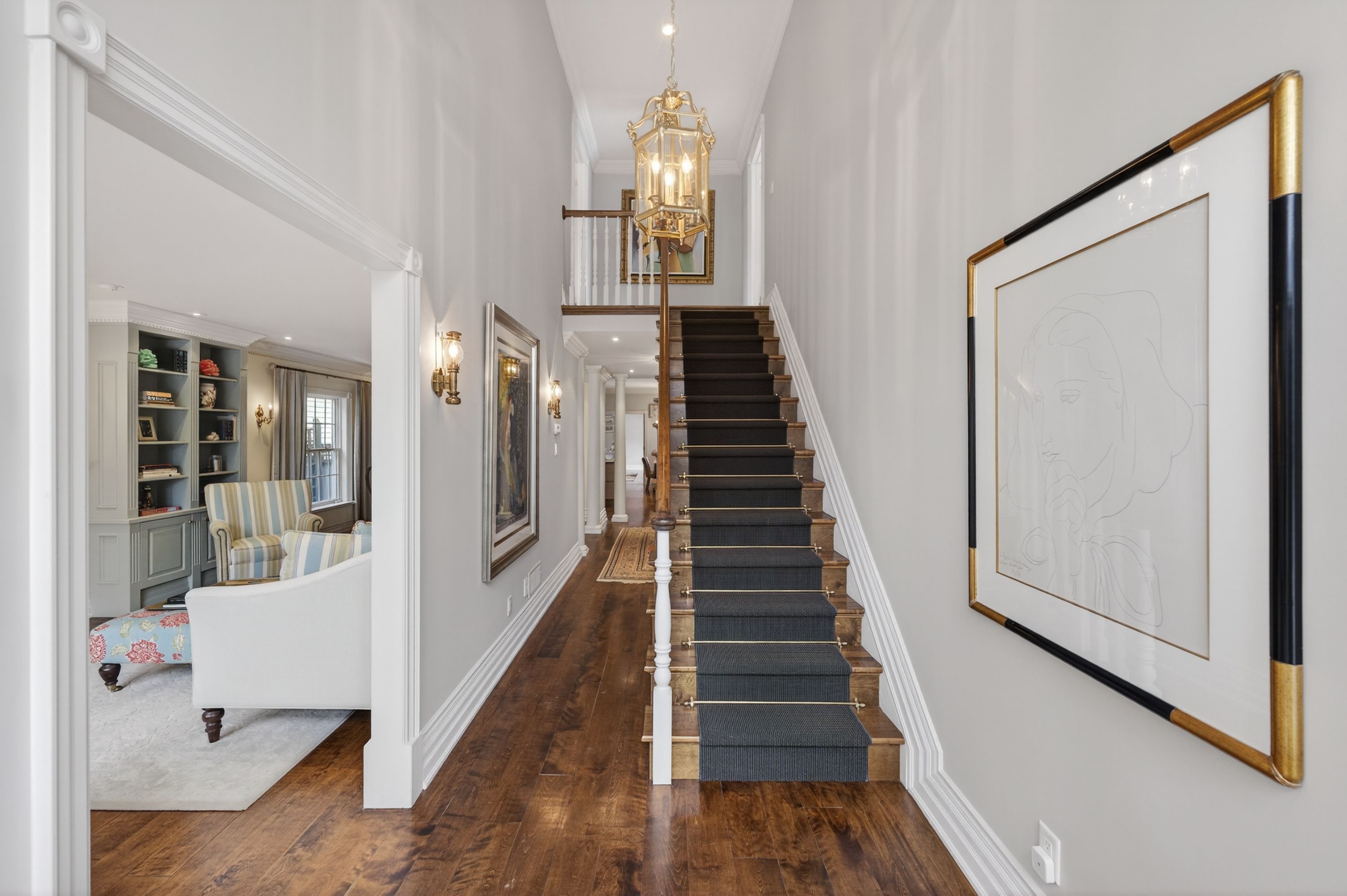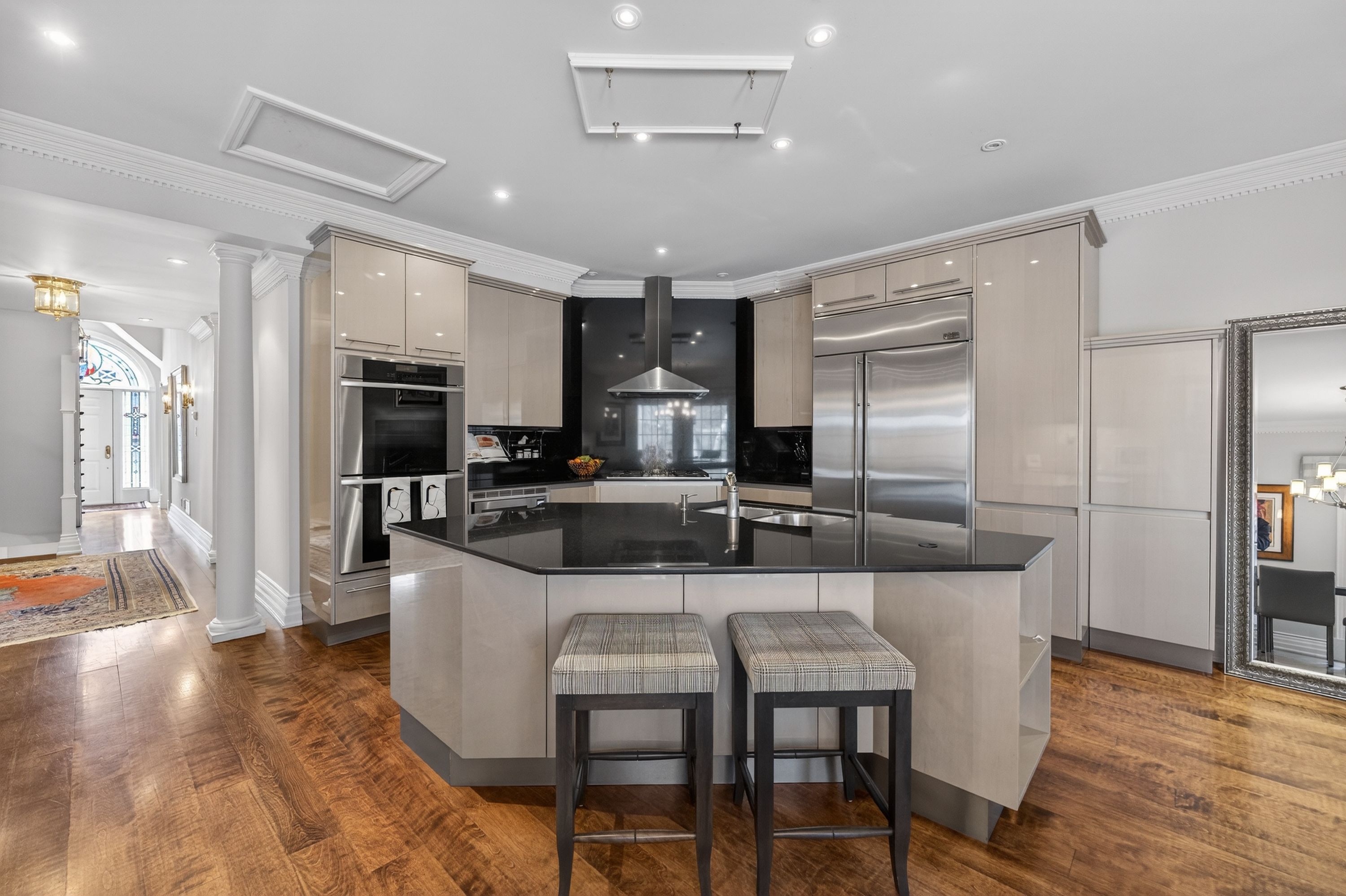 • Lower level includes media room, sauna, and wine cellar.