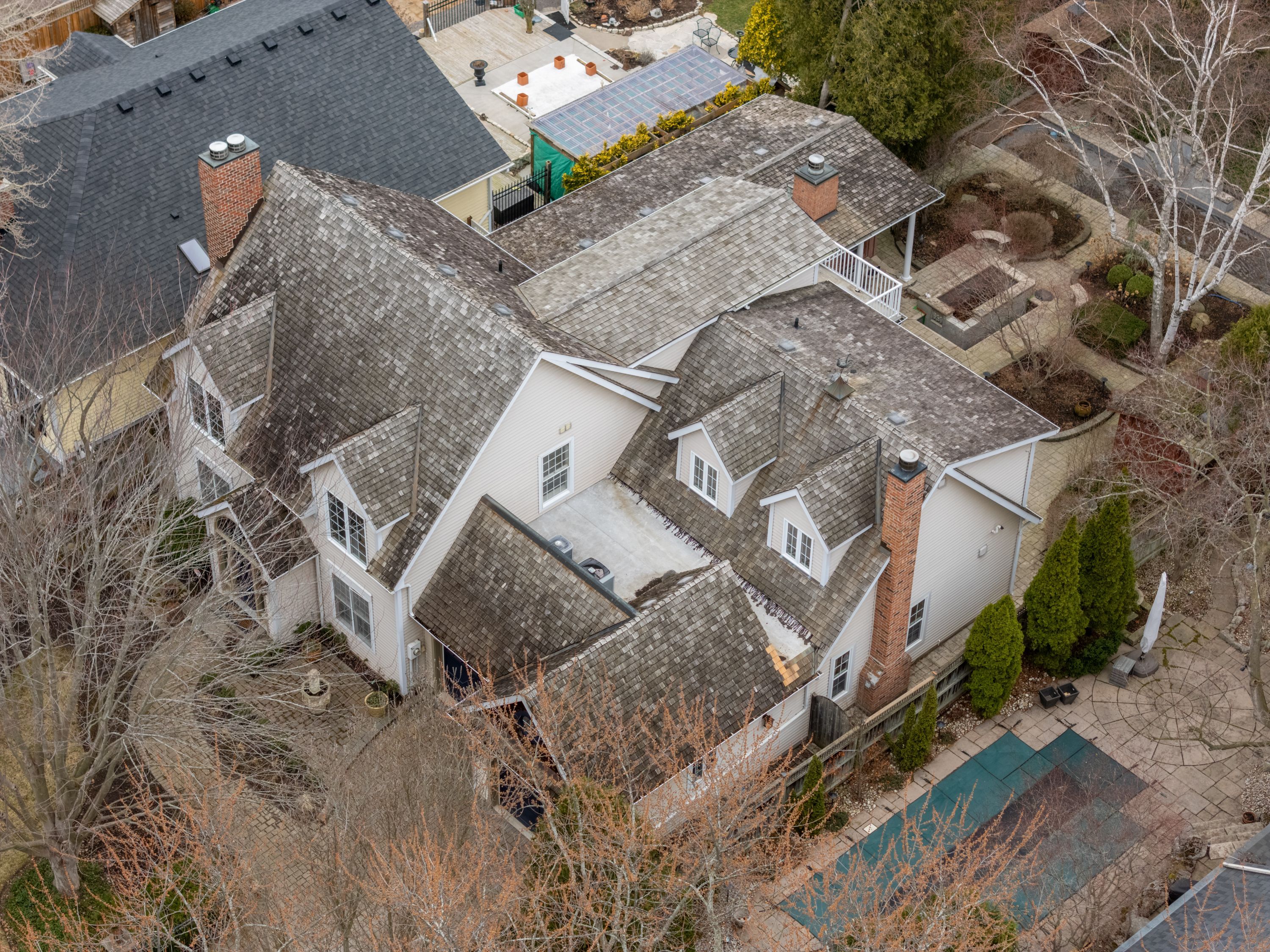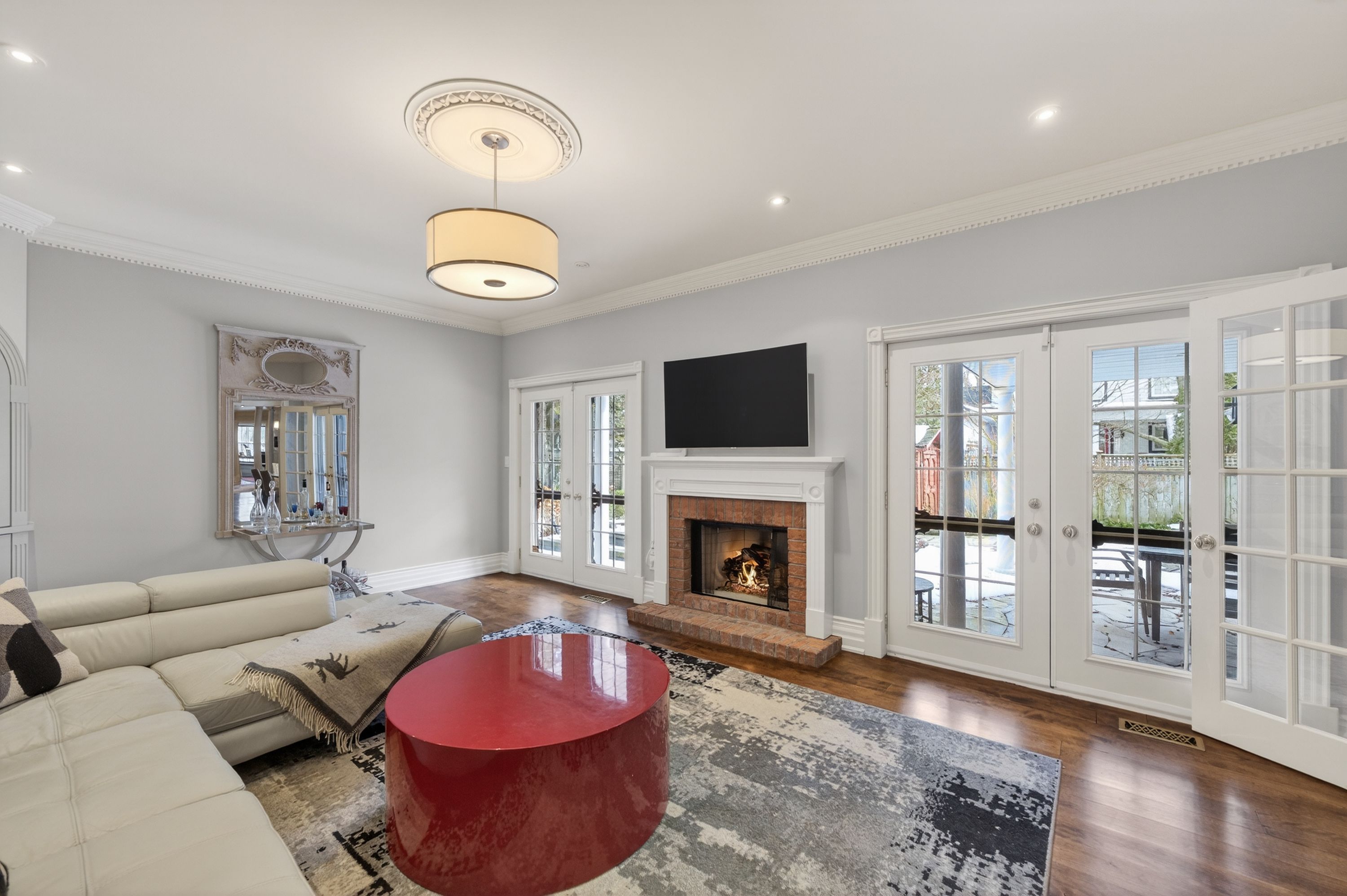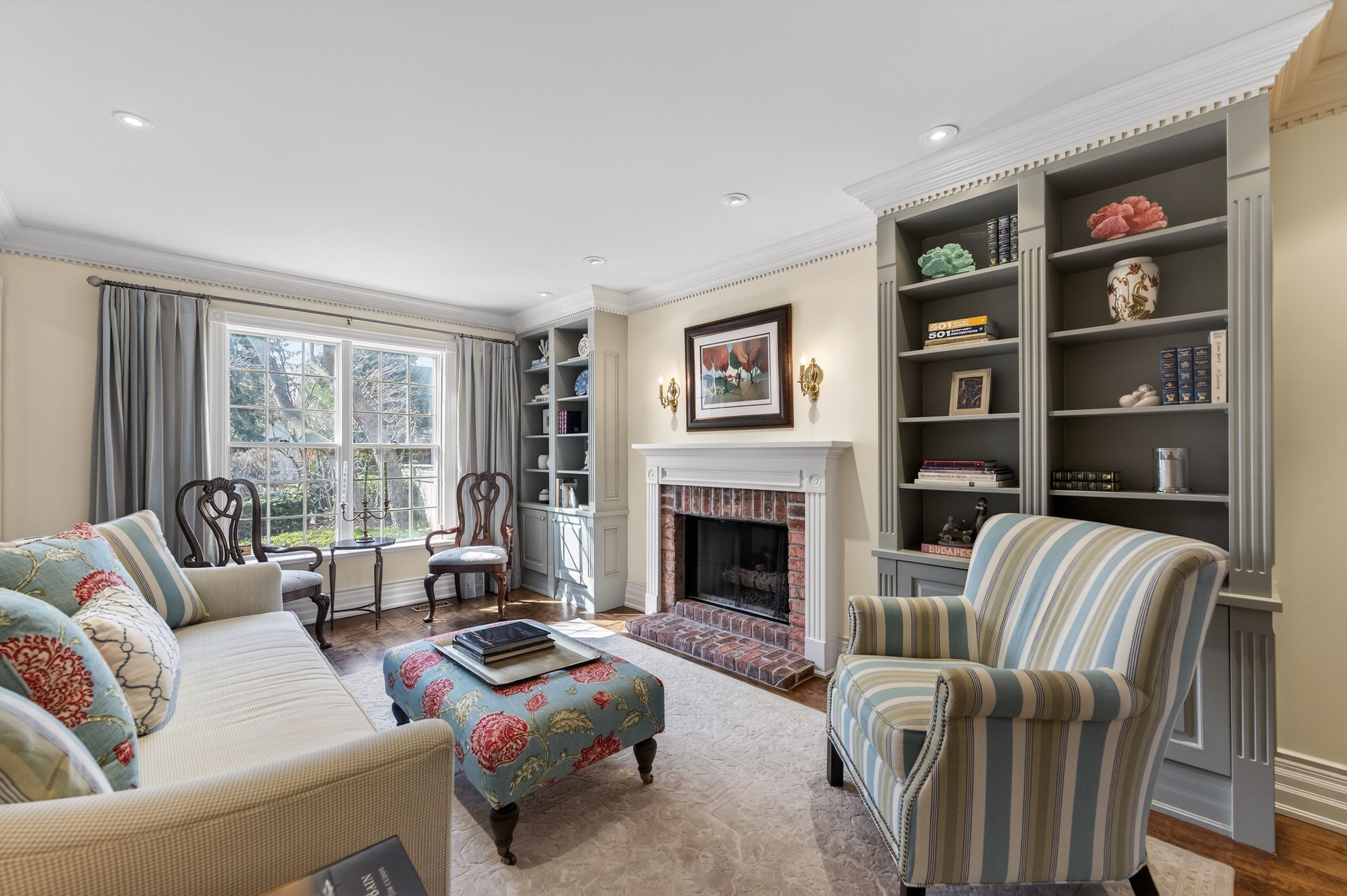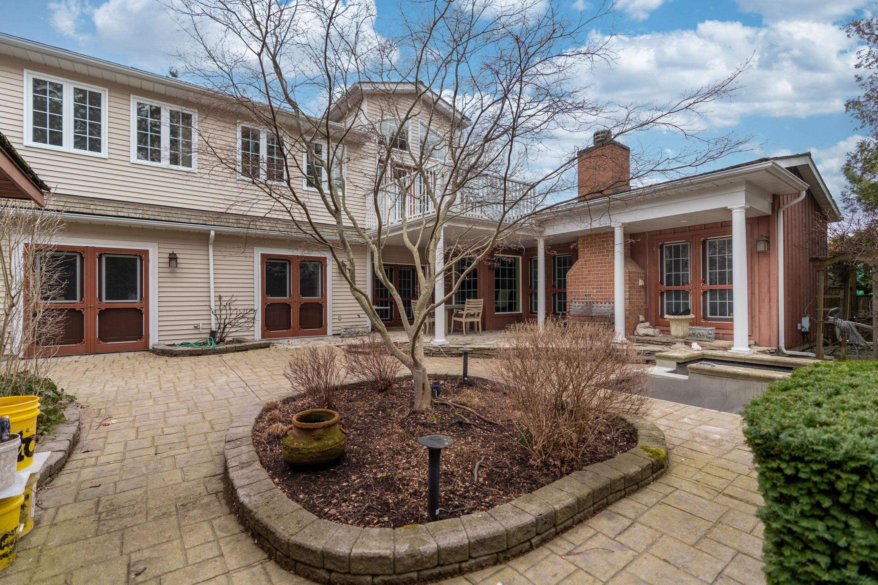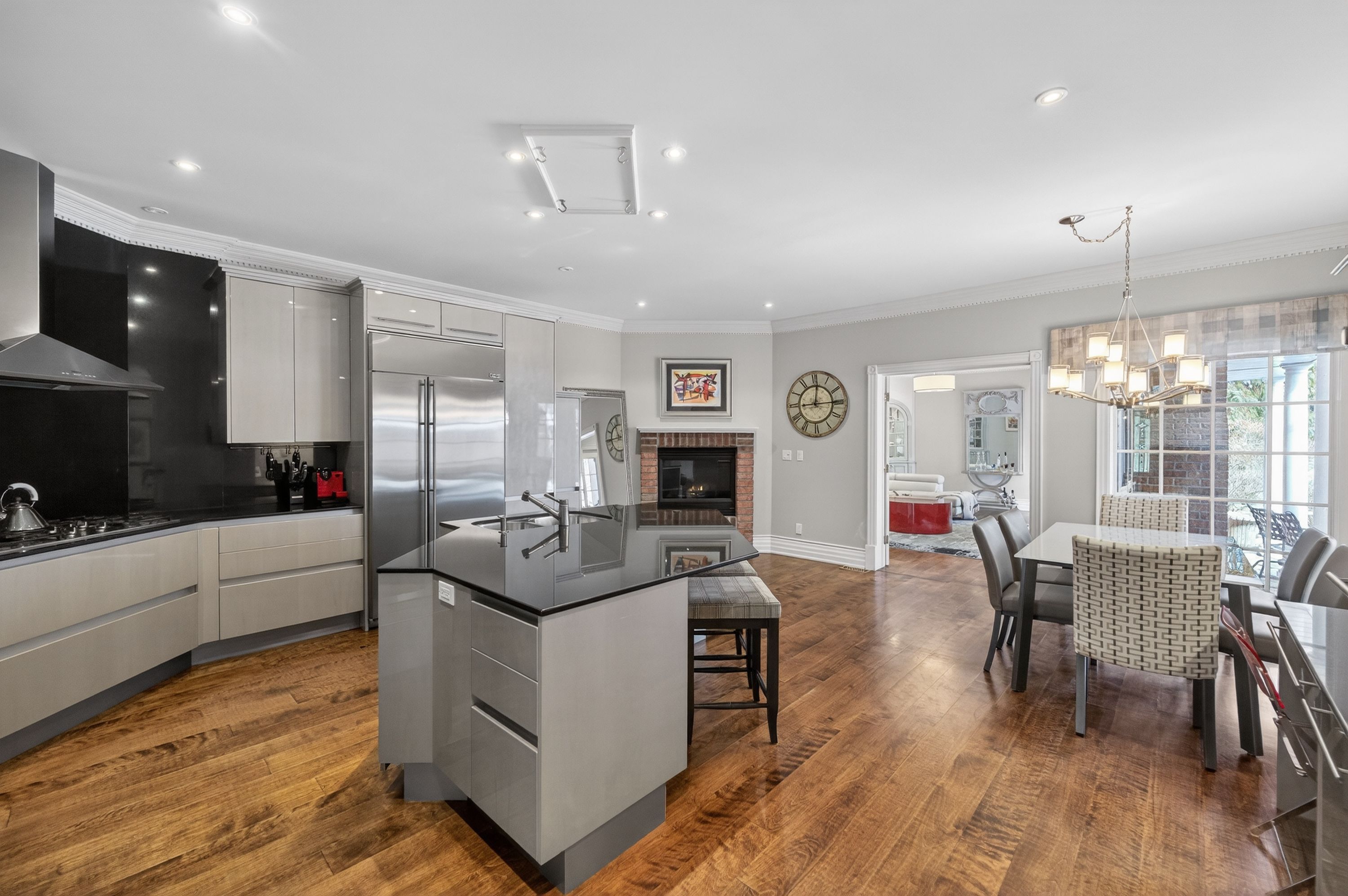 • Spacious 5-bedroom home with multiple living areas and six fireplaces.