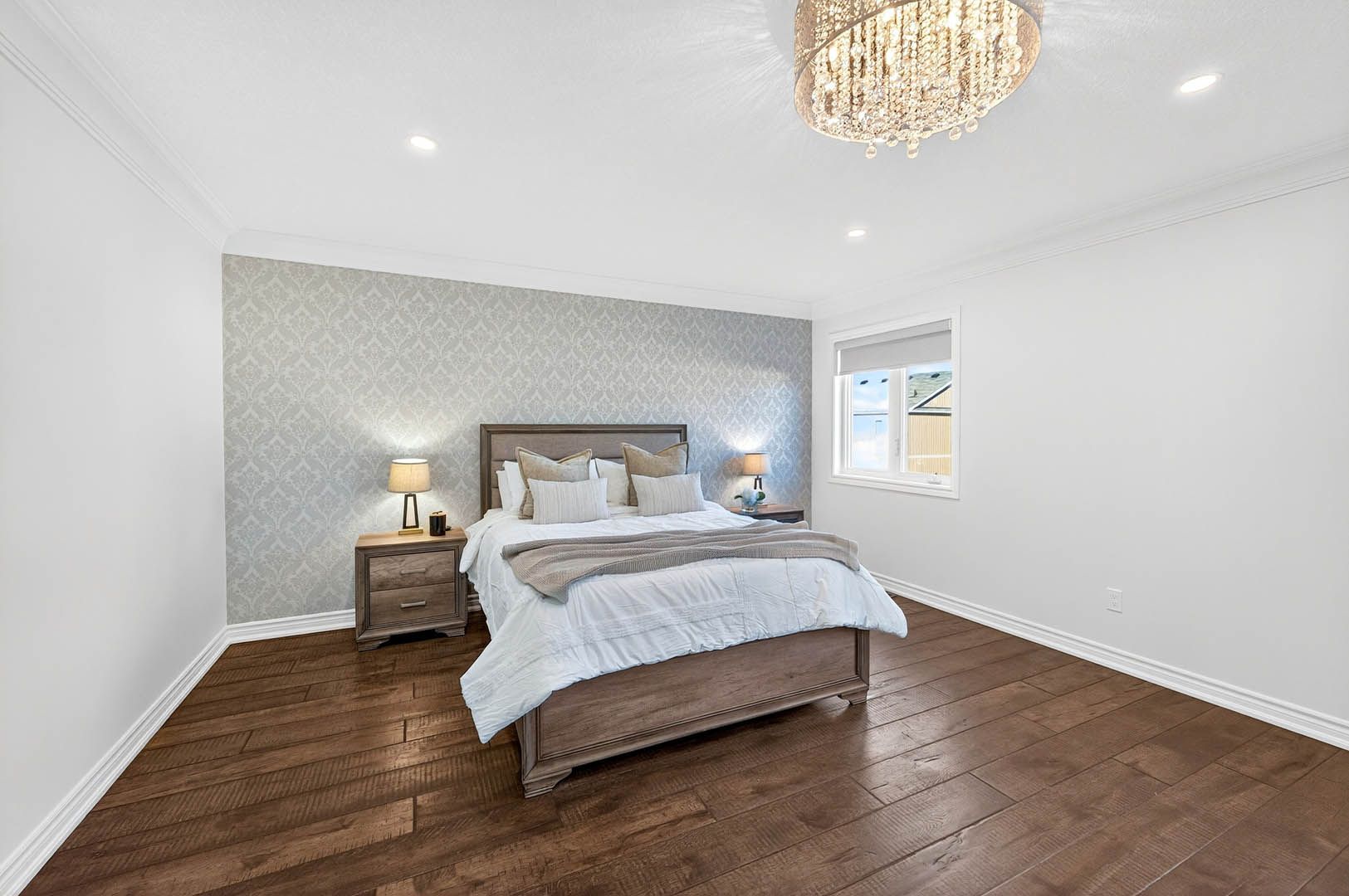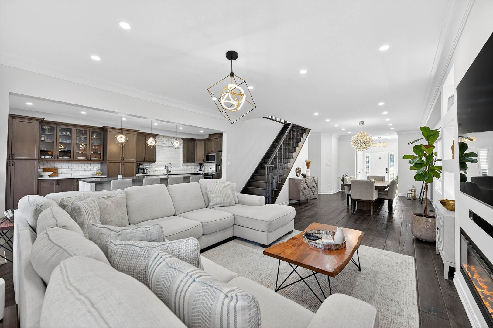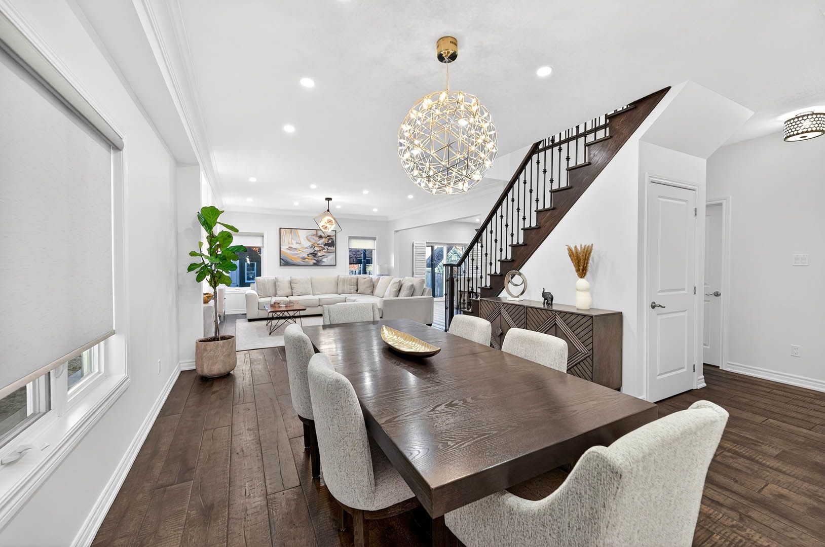Wow!! This stunning dream home w/2628 sft, has it all!! Gourmet kitchen with quartz counter top, large living room with electrical fireplace combined with dining! You can easily picture yourself entertaining guests or enjoying family meals at the impressive 10-inch island breakfast table, while the abundance of pot lights illuminates. Custom finished wide plank rich & rustic hardwood floor, crown mounding spectacular primary bedroom with oversize bathroom and a spacious w/i closet. Beautiful double car garage finished with epoxis. Legal basement apartment w/ 2 bedrooms, kitchen, in-suite laundry, open concept living and dining room and separate entrance. Amazing backyard with new shed, new stones and new pergola to entertain. Walking distance from schools, shopping areas, restaurants, library and recreation center. Don't miss it!