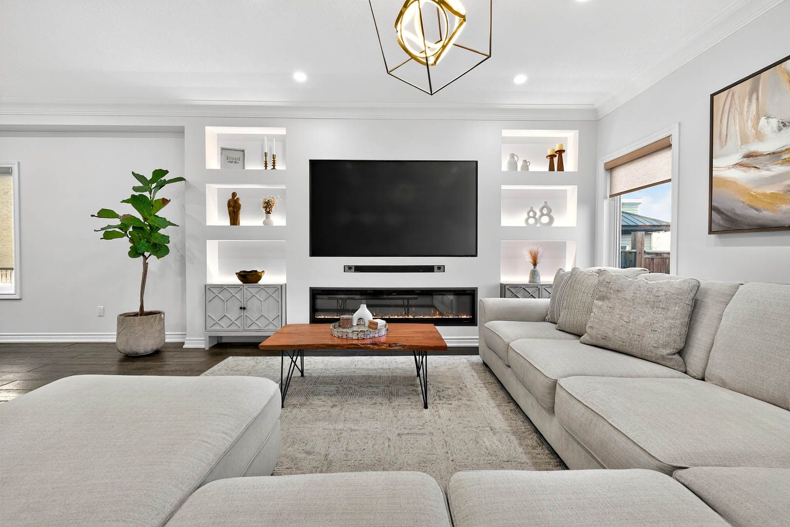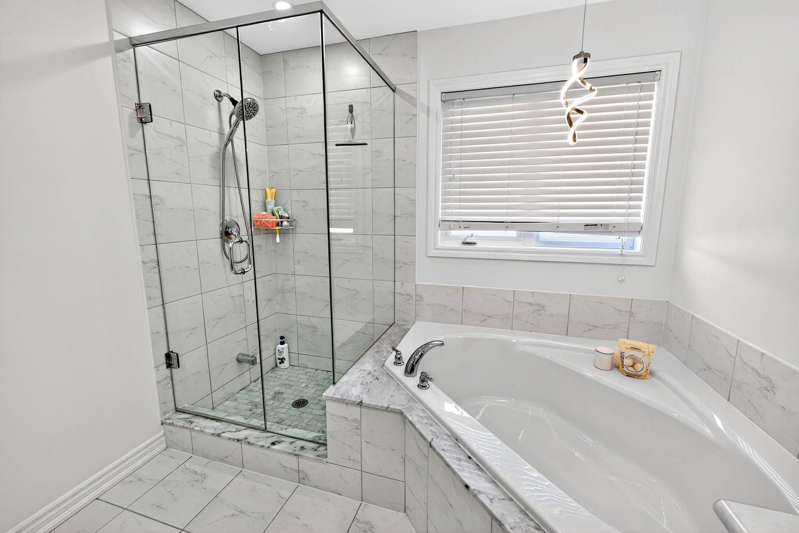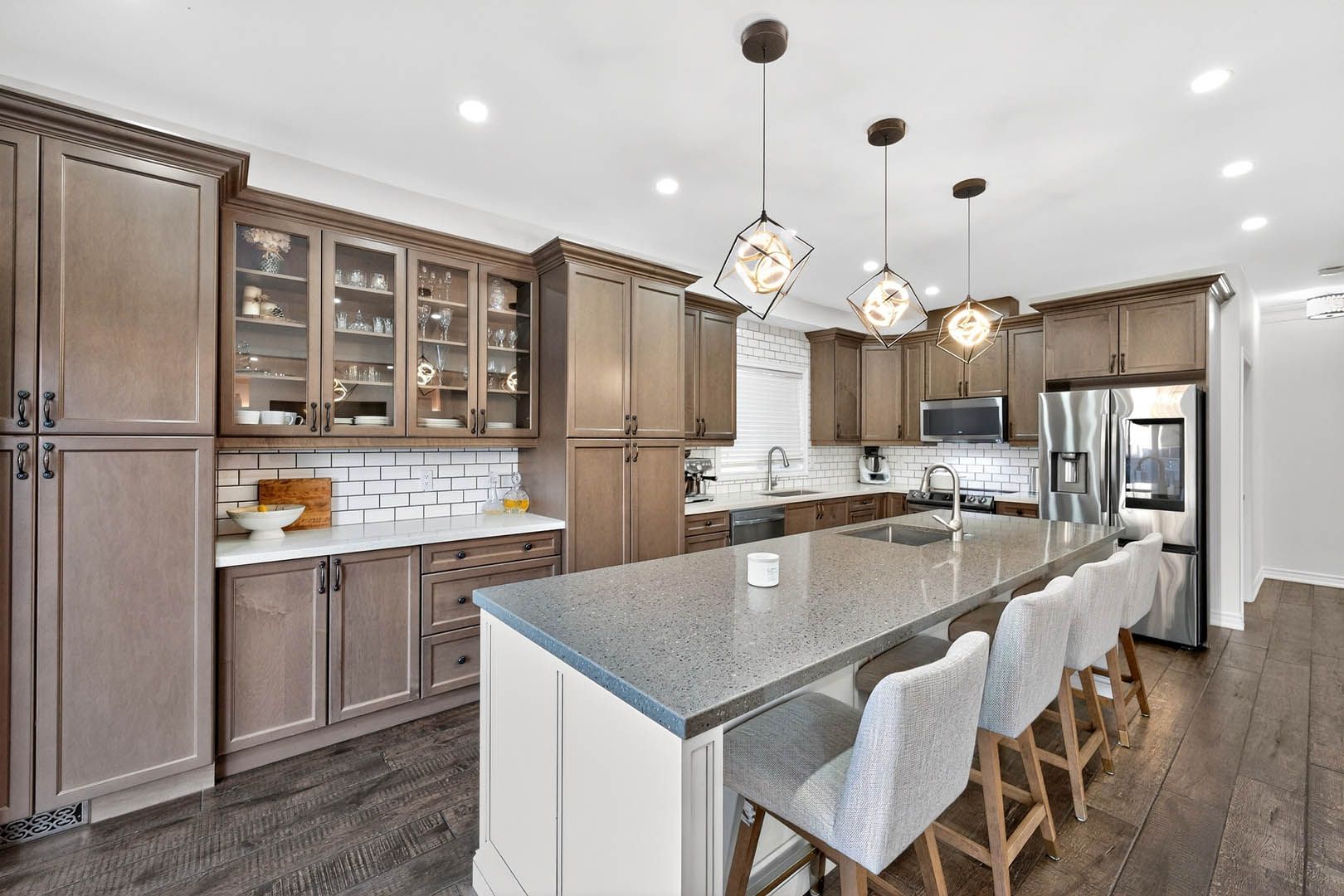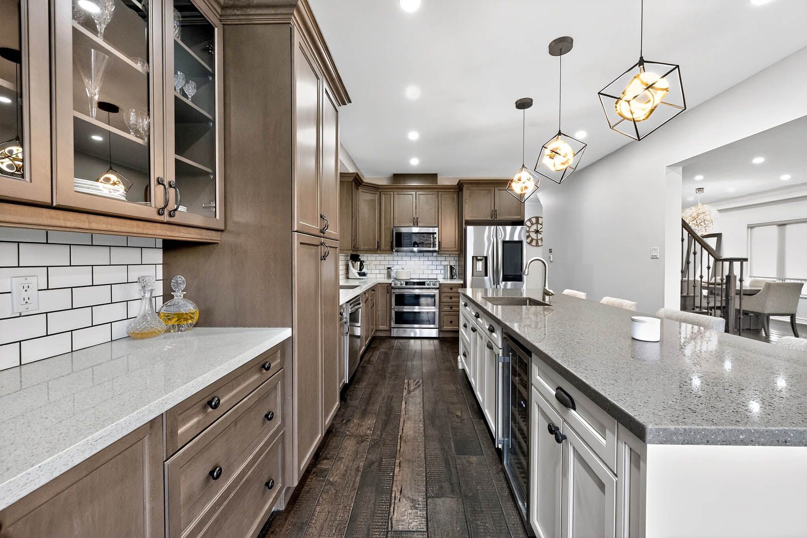 Wow!! This stunning dream home w/2628 sft, has it all!! Gourmet kitchen with quartz counter top, large living room with electrical fireplace combined with dining! You can easily picture yourself entertaining guests or enjoying family meals at the impressive 10-inch island breakfast table, while the abundance of pot lights illuminates. Custom finished wide plank rich & rustic hardwood floor, crown mounding spectacular primary bedroom with oversize bathroom and a spacious w/i closet. Beautiful double car garage finished with epoxis. Legal basement apartment w/ 2 bedrooms, kitchen, in-suite laundry, open concept living and dining room and separate entrance. Amazing backyard with new shed, new stones and new pergola to entertain. Walking distance from schools, shopping areas, restaurants, library and recreation center. Don't miss it!