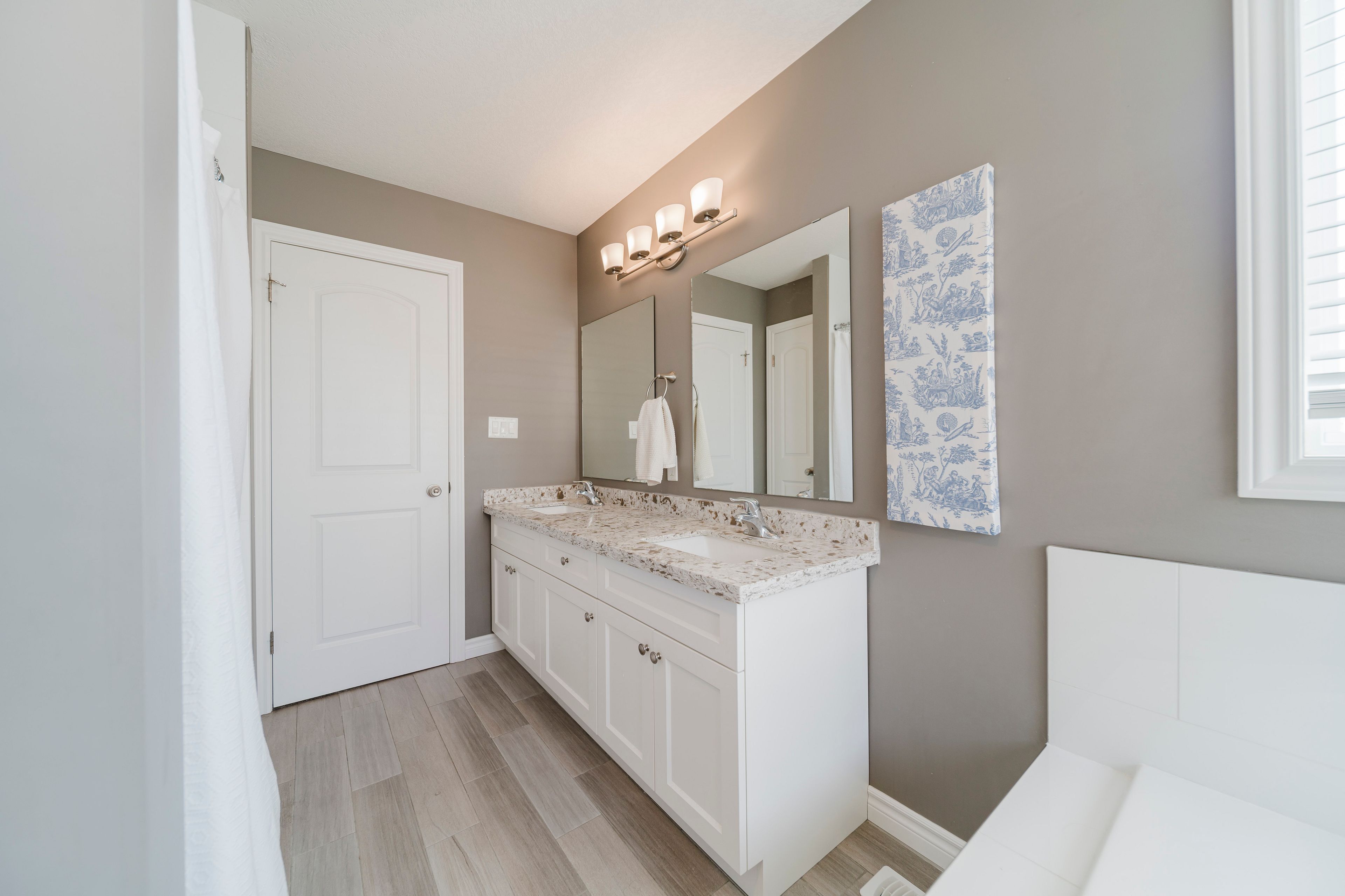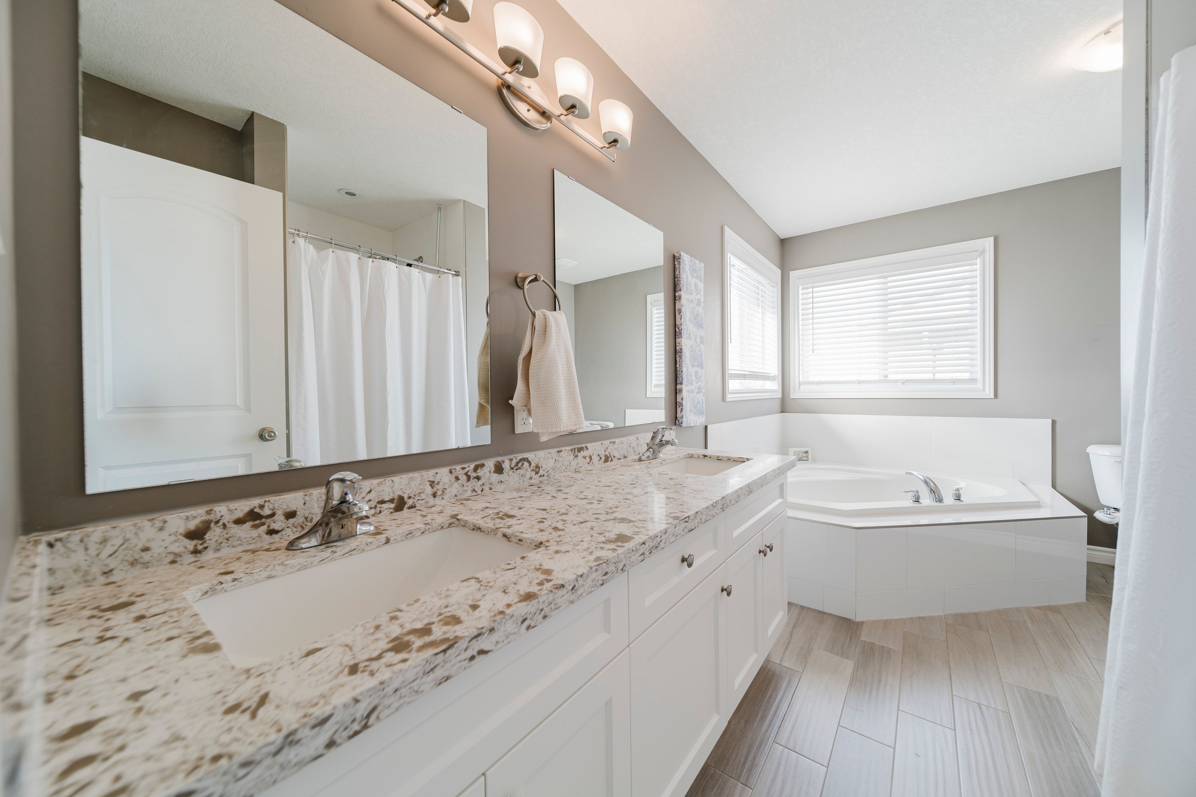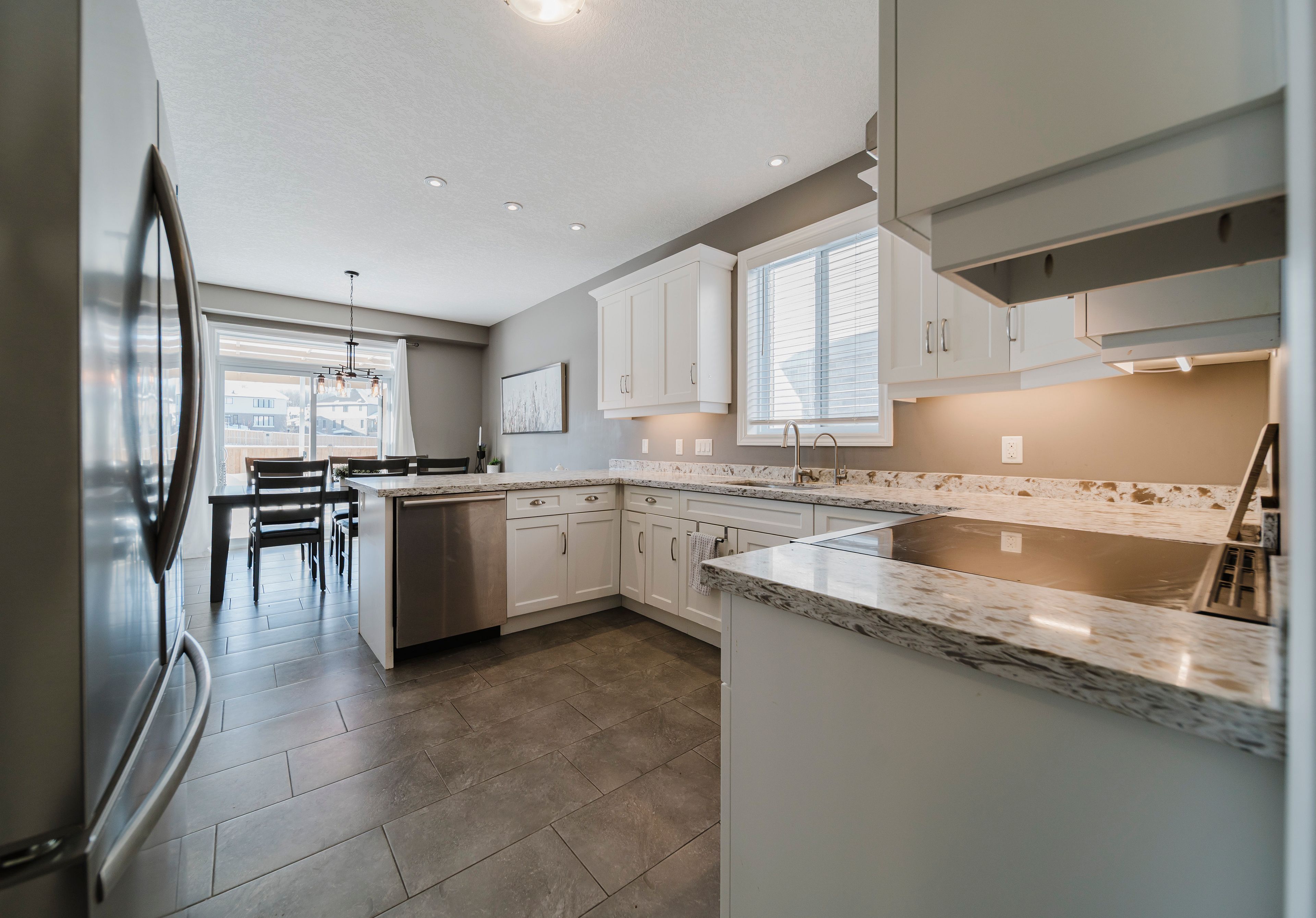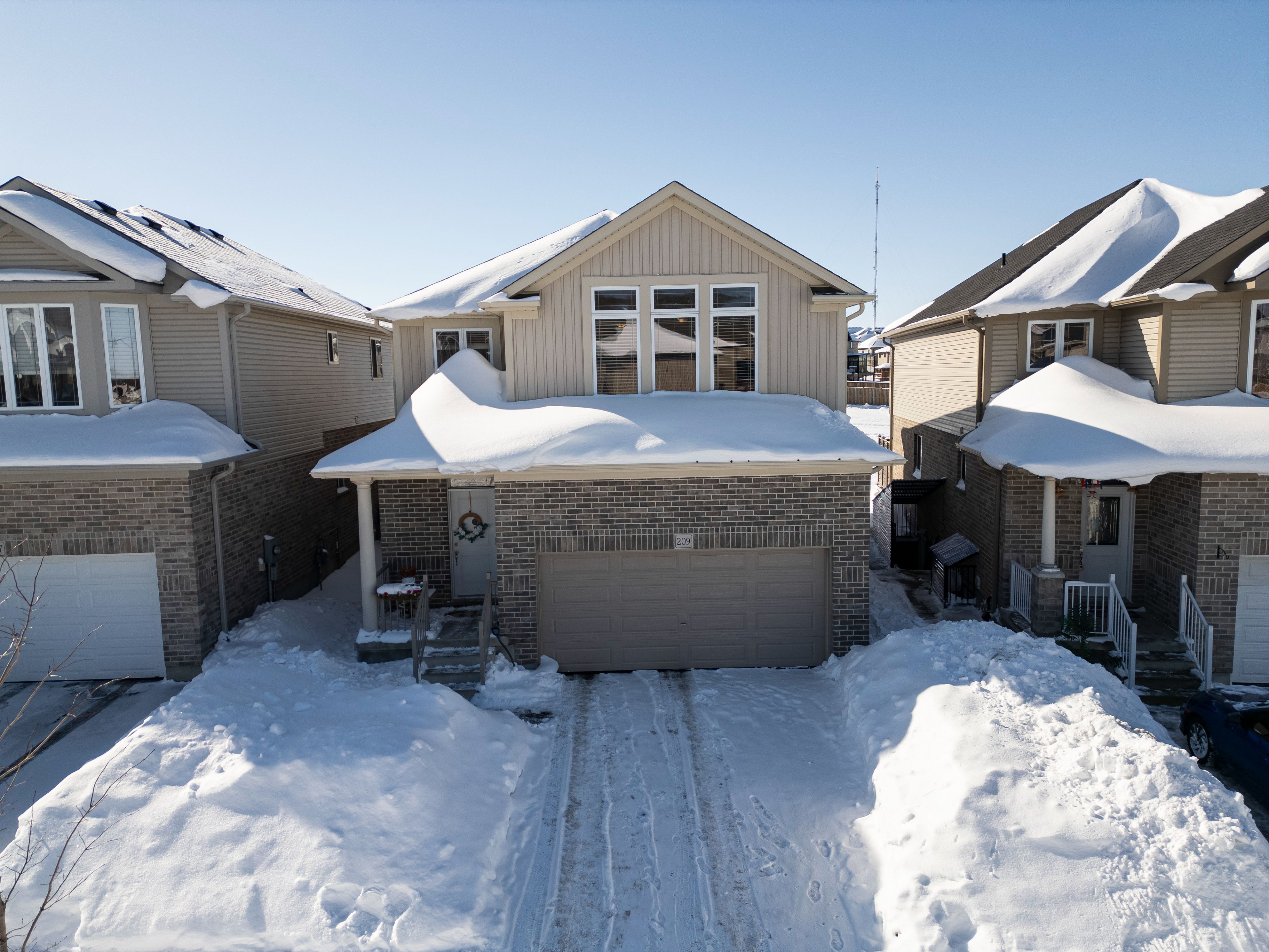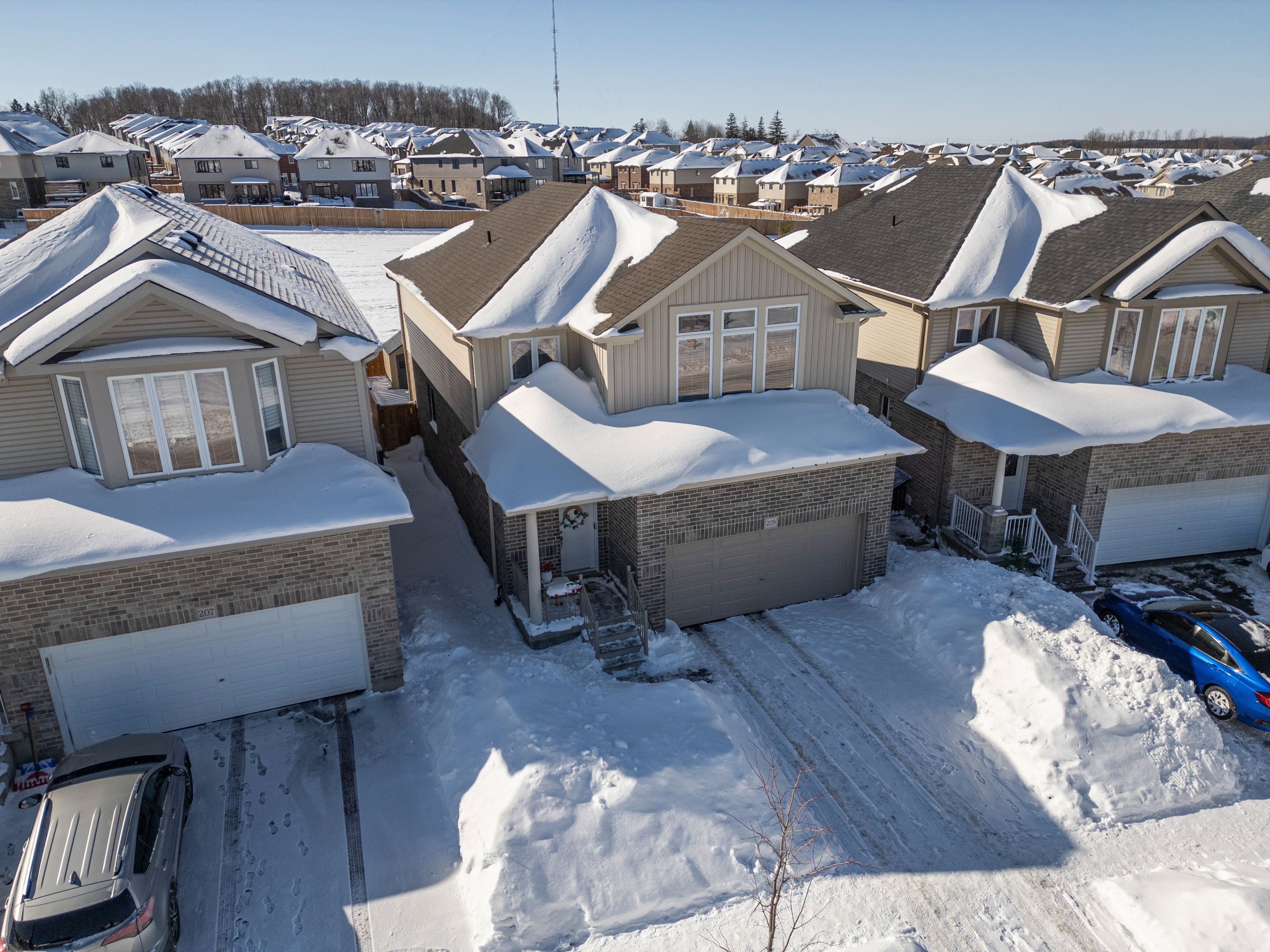 Welcome to 209 ladyslipper dr, waterloo, a stunning, 8-year-old home nestled in the desirable vista hills community. Perfect for families, this beautiful 3-bedroom, 2. 5-bathroom home with a double-car garage and double car driveway combines space, comfort, and style. Step inside to a bright and inviting main floor, completely carpet-free, featuring a solid wood staircase leading to the second floor. The modern kitchen is a chef's dream, offering plenty of counter space, a breakfast bar, and new quartz countertops installed in 2024 across the kitchen and all bathrooms. Enjoy cooking while keeping an eye on the backyard, which backs onto a premium greenbelt lot-no rear neighbors-and provides direct access to a nearby park and school, perfect for kids and pets. The spacious upper family room boasts soaring cathedral ceilings & recessed creating a cozy yet open space for family gatherings or quiet evenings together. Located just steps from vista hills public school and with convenient school bus access to laurel heights secondary school, this home makes family life easy. Plus, you're close to costco, the boardwalk shopping center, and both universities, offering everything you need within minutes. This home truly shows beautifully and is ready for its next family to make memories here. Don't miss it!