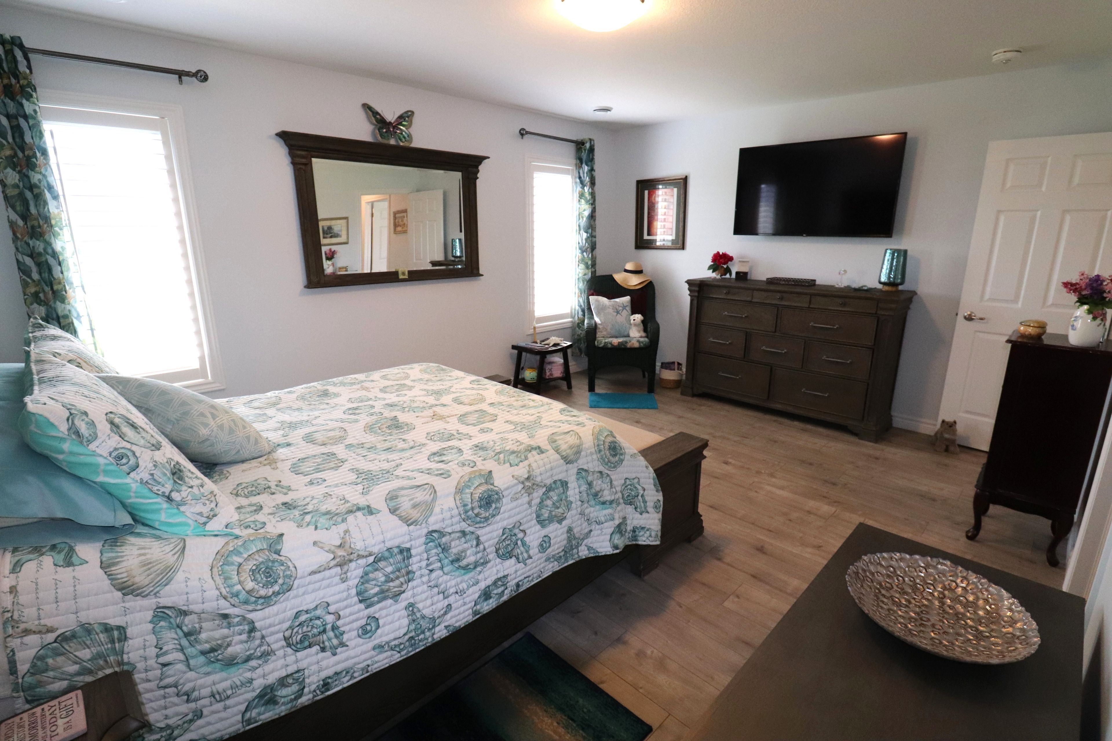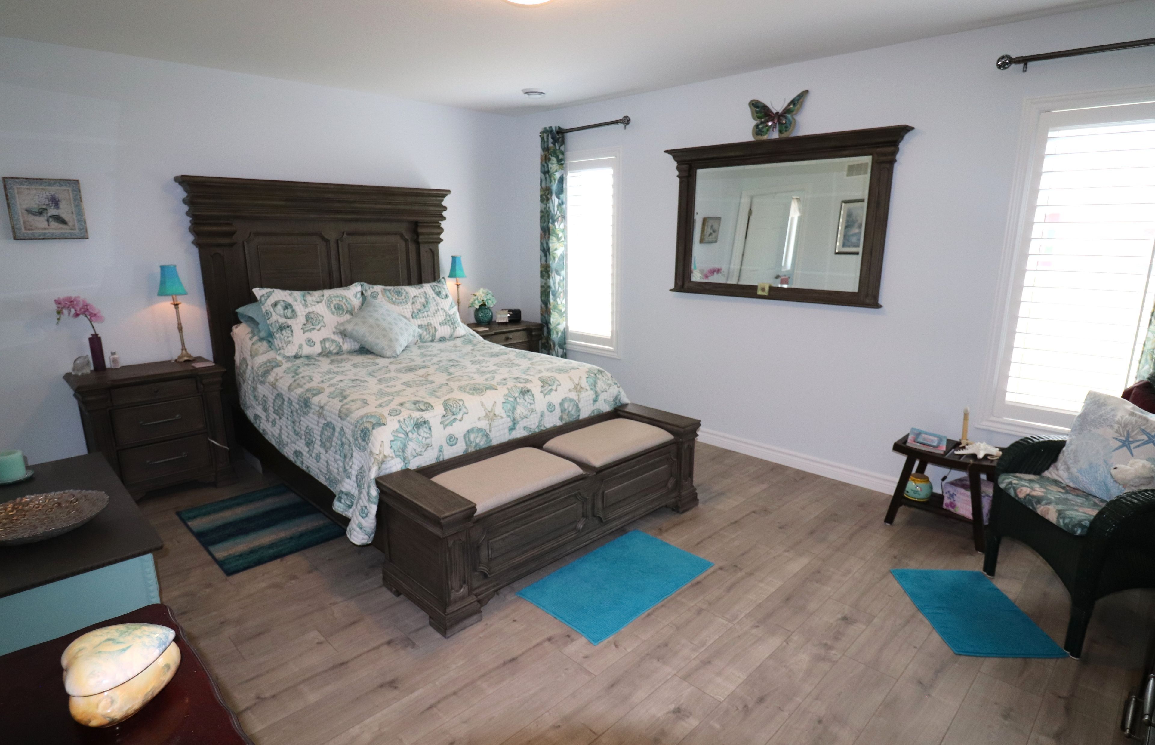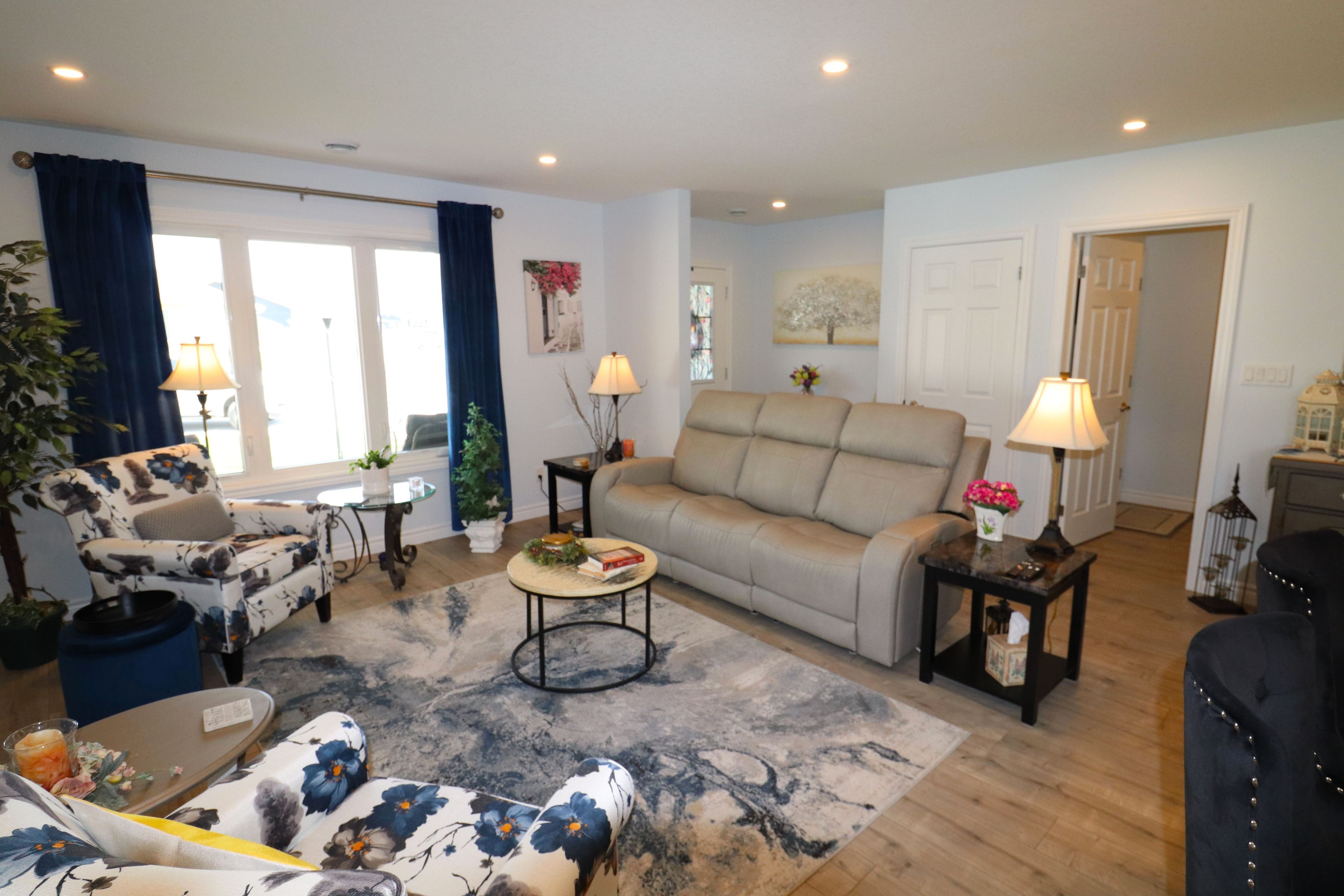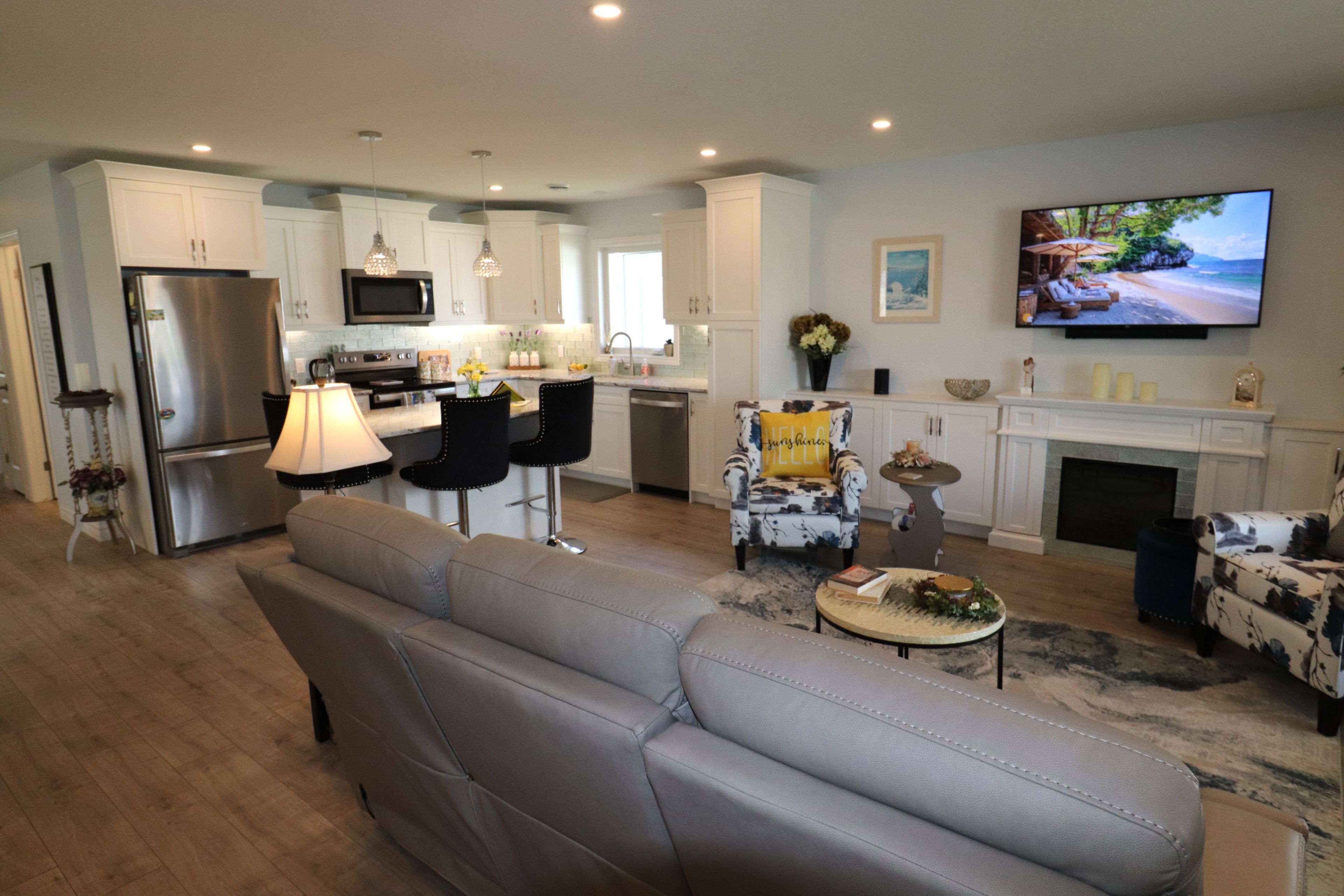 Absolutely stunning! This beautiful home offers nearly 1600 sq ft of living space and is situated on one of the largest and most private premium lots at the bluffs! Just imagine the lifestyle, living along the shores of lake huron, close to shopping and fantastic golf courses along with your own private community recreation center complete with library, party rooms, sauna and indoor pool! This incredible "cliffside b with sunroom" model has seen an extensive number of upgrades added and is an absolute pleasure to show! Features include a large custom kitchen with crown moulding, center island, pantry, upgraded appliances and quartz countertops. You will love all of the custom "pull out" shelving in the cabinets as well! The living room boasts a fireplace surrounded by wall-to-wall custom cabinetry. Also located close to the kitchen is a spacious dining room, perfect for dinner parties! The sunroom sports a cathedral ceiling and patio doors leading to a concrete patio overlooking the extensive gardens and offering a panoramic view of the countryside! Other features include a large primary bedroom with walk-in closet, 3 pc ensuite bath including a shower light and vanity with quartz countertop. Just down the hall is a spacious second bedroom and 4 pc main bath with shower/bath light, linen closet and vanity with quartz counter top. Premium window coverings and upgraded light fixtures are also prevalent throughout. Services include radiant in-floor radiant heating along with a gas furnace offering forced air heating and a/c. There's also an attached two car garage with custom shelving and separate storage shed on the property. This home is truly the ultimate in quality construction and location!