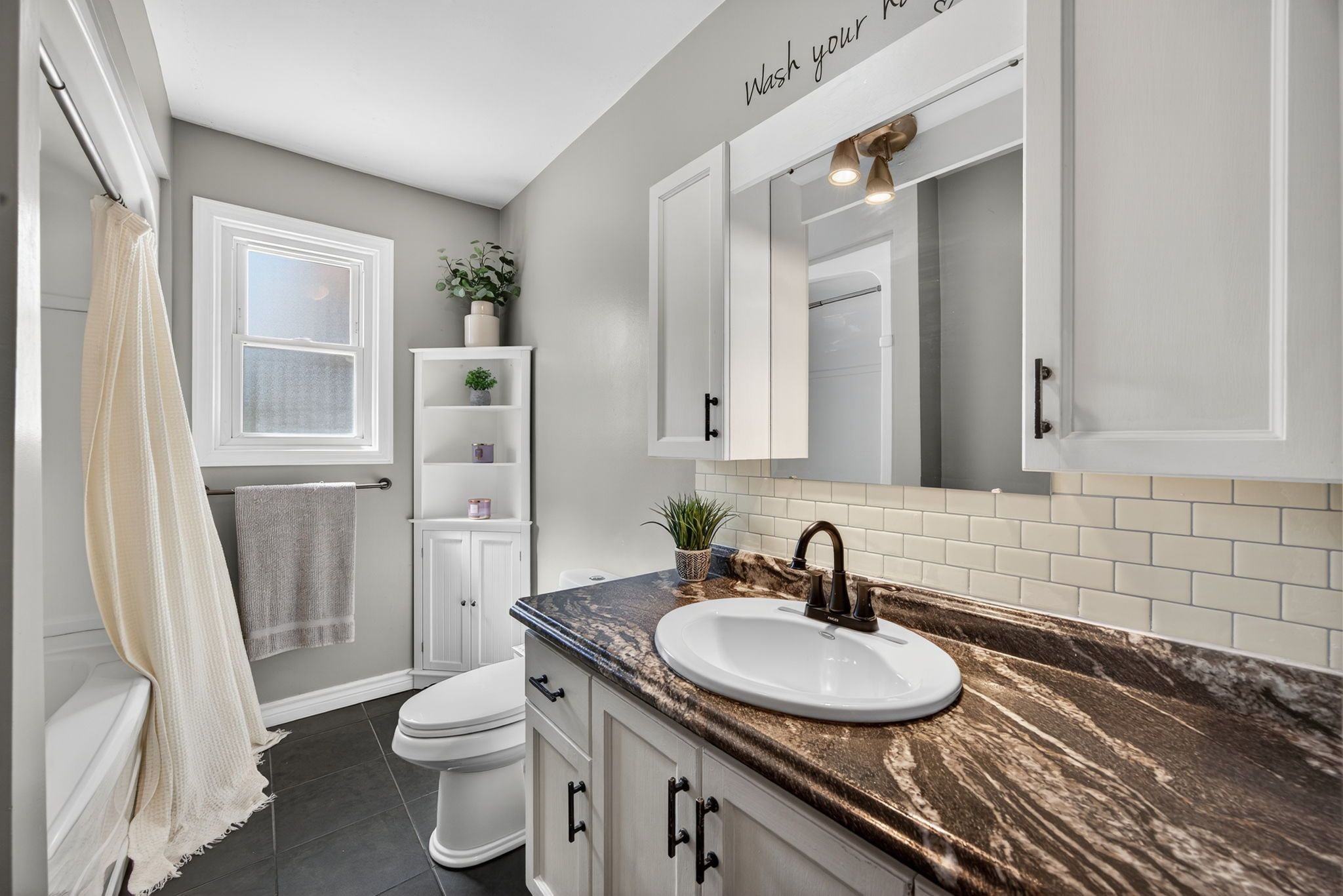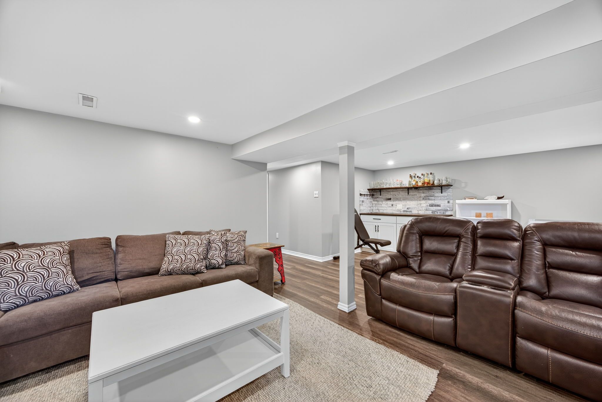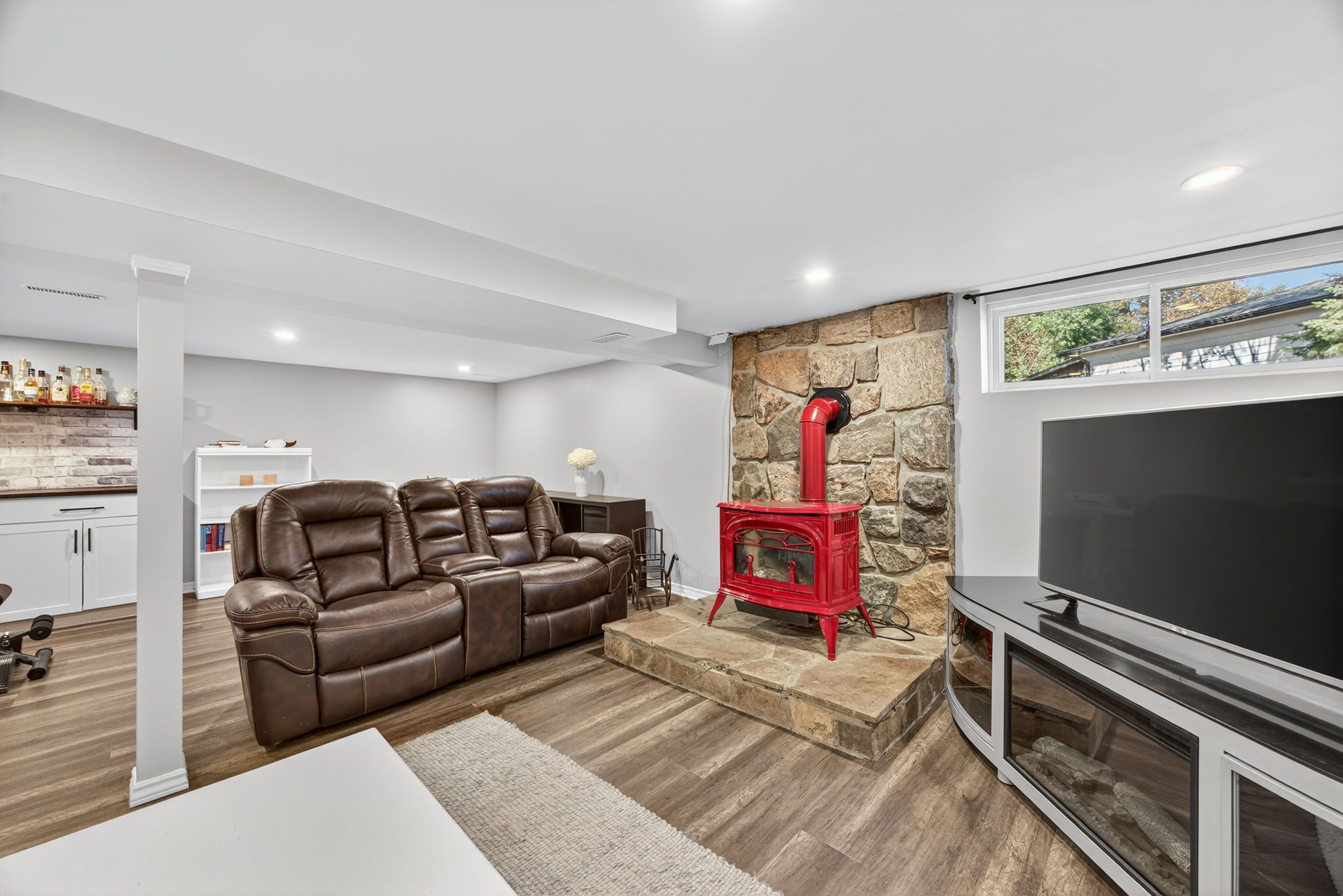 • Finished basement with recreation room, gas fireplace, and additional bedroom.