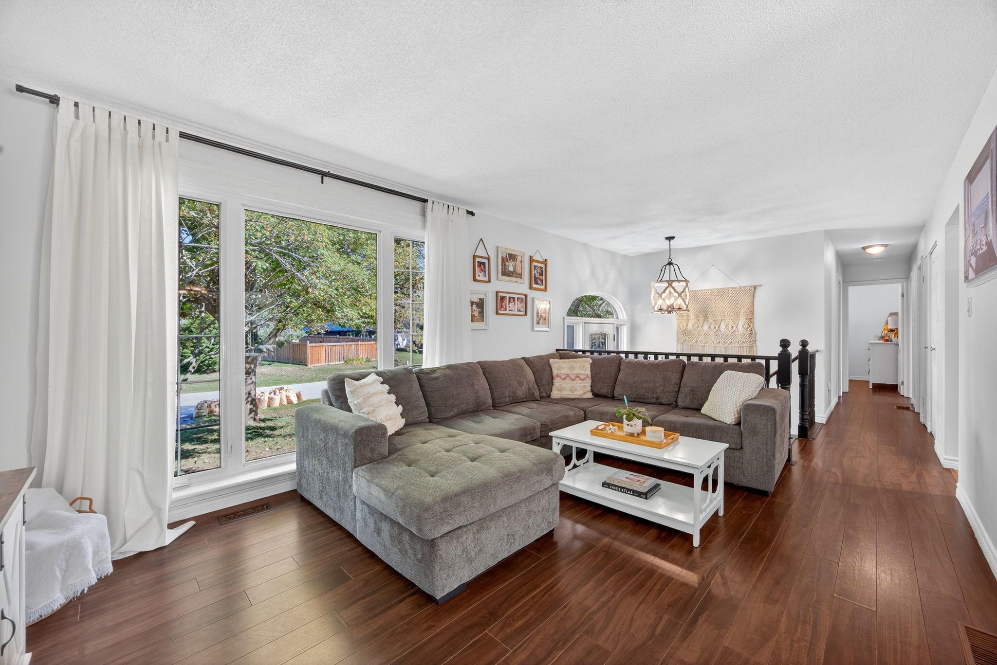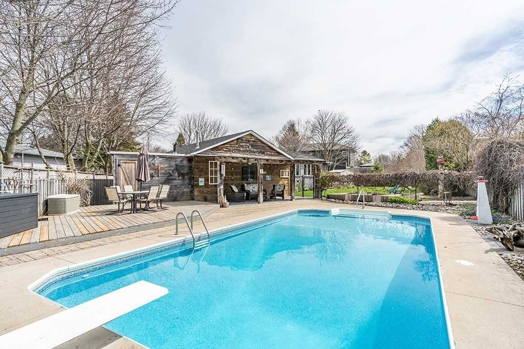 Welcome to your dream oasis in a quiet hamlet. Beautifully updated, move-in-ready home with spacious, light-filled rooms and resort-style outdoor living featuring a heated inground saltwater pool & heated 2-car garage. The bright, open-concept main floor boasts a large kitchen with stainless-steel appliances, pantry, eat-in area & a cozy coffee nook. Relax in the year-round sunroom, accented with shiplap & oversized windows, overlooking the massive pie-shaped lot & private backyard. This home offers three main-level bedrooms plus a fully finished basement with a recreation room, dry bar, gas fireplace & an additional bedroom, perfect for guests or a home office. The outdoor entertaining area includes a covered pool cabana, expansive decking, fire pit & a tranquil pond. Serve drinks through the bar window to guests by the pool from the detached insulated and heated garage, also ideal for car enthusiasts or storing all the toys. An oversized driveway accommodates 10+ vehicles, perfect for large gatherings. Conveniently located steps from grocery stores, restaurants & a short drive to costco, park place, the go train & highway 400. Combining thoughtful updates, versatile living areas & exceptional outdoor amenities. Enjoy this home for many years to come!!