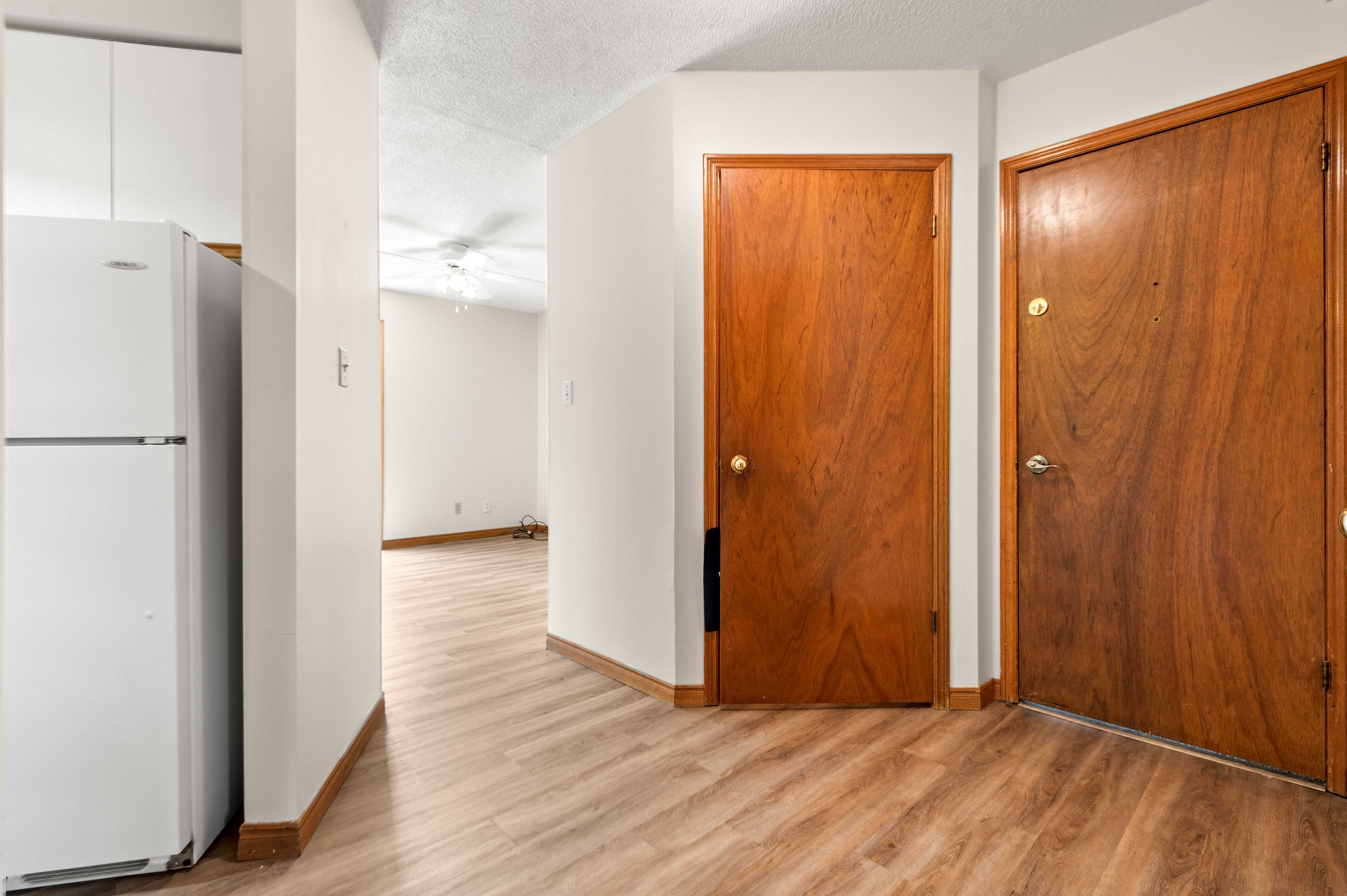 • Building has walk-out balconies and patios for outdoor access.