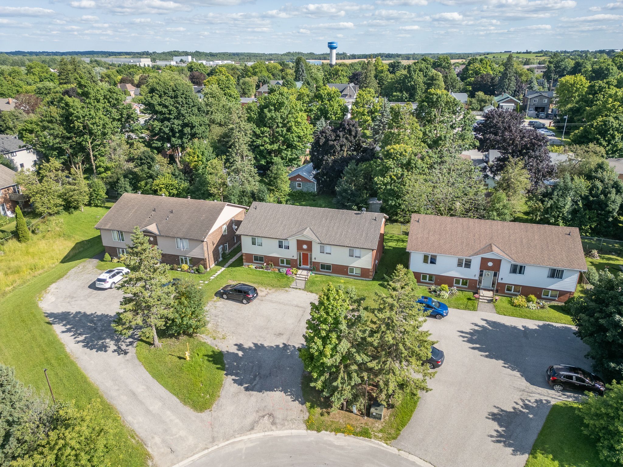 Fourplex apartment building, in great location, in area of other 4 plex's, close to downtown shelburne, walk to shopping, parks and schools. Brick and vinyl building, two storey with walk out to balcony on upper level and walk out to patio on lower level. Asphalt shingled roof, paved parking for 6+ cars, paved driveway in a court, 4 apartments currently all leased to good long term tenants. Each apartment is approx. 800 sq ft has common entrance and hall way. Each unit has their own ensuite laundry, two bedrooms, 4 pc bathroom, storage room, kitchen, living room and dining room, with walk out to a deck or patio. Owned water heaters one for each unit. Upper units water heater is under the stairs. Tenants have their own hydro, and shared water. Baseboard heat, paid by tenants. Nice building 2 units up and 2 units down. Great for someone to live and rent out, or investor for 4 great units in shelburne.