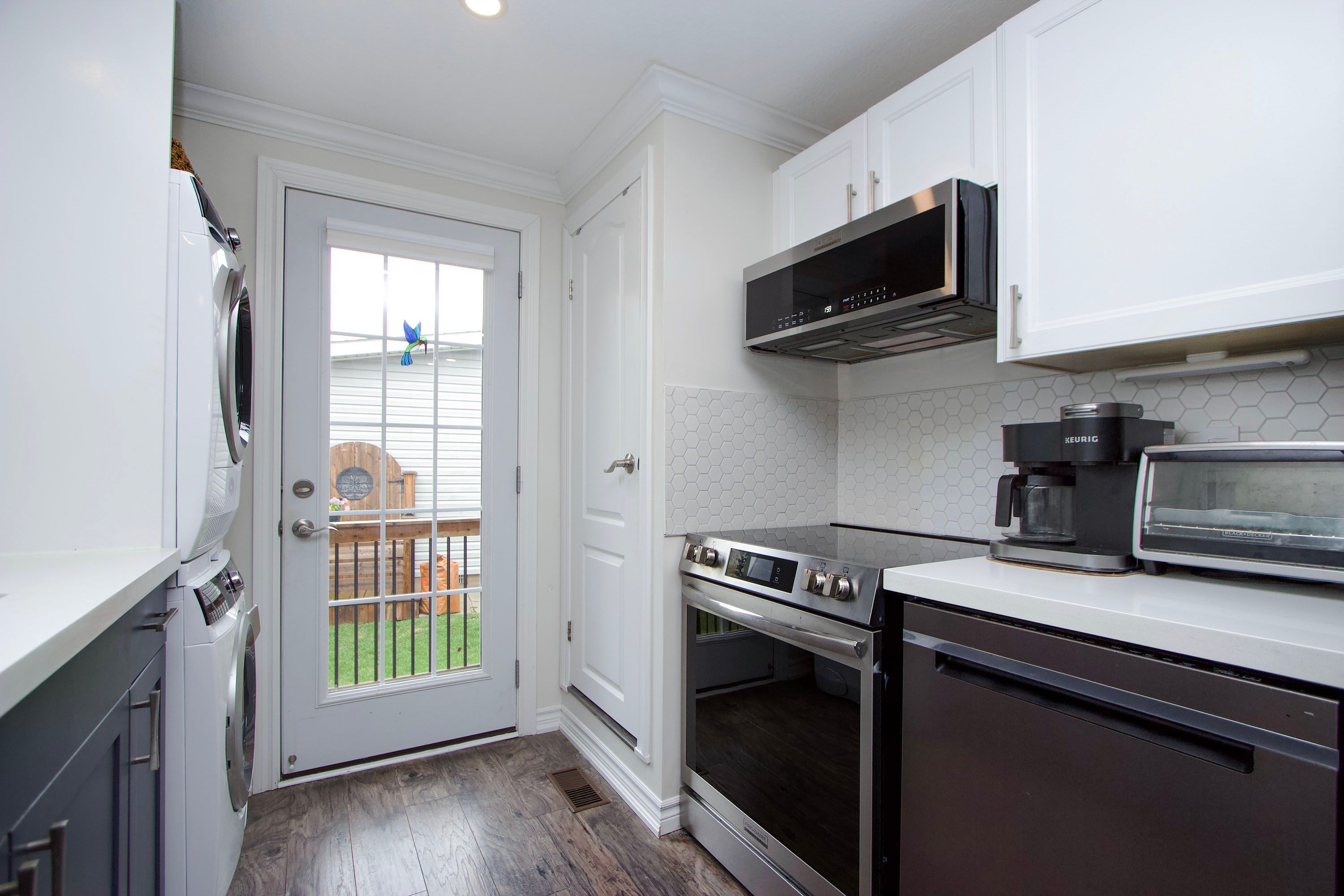 • Modern kitchen featuring stainless steel appliances and ceramic backsplash.