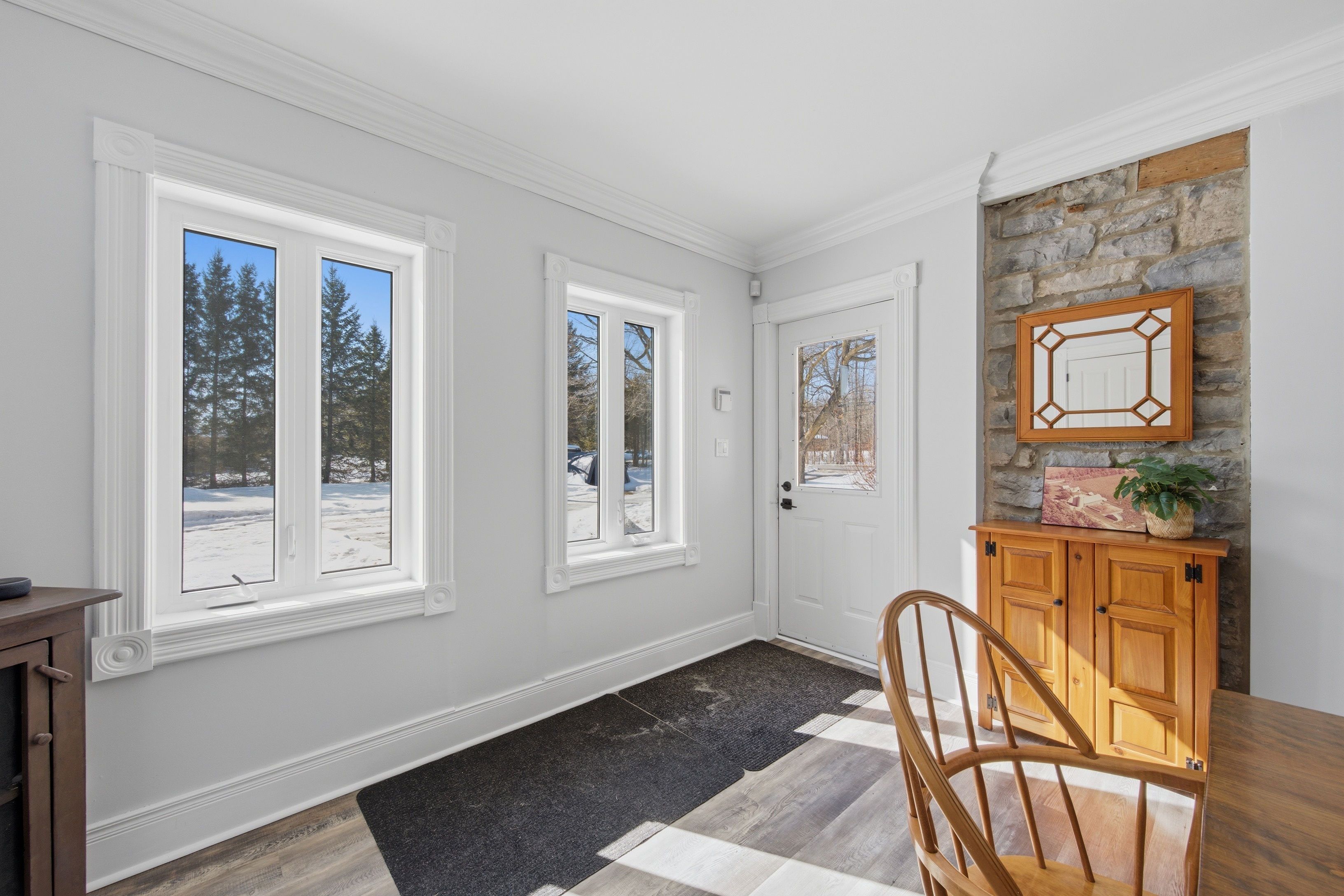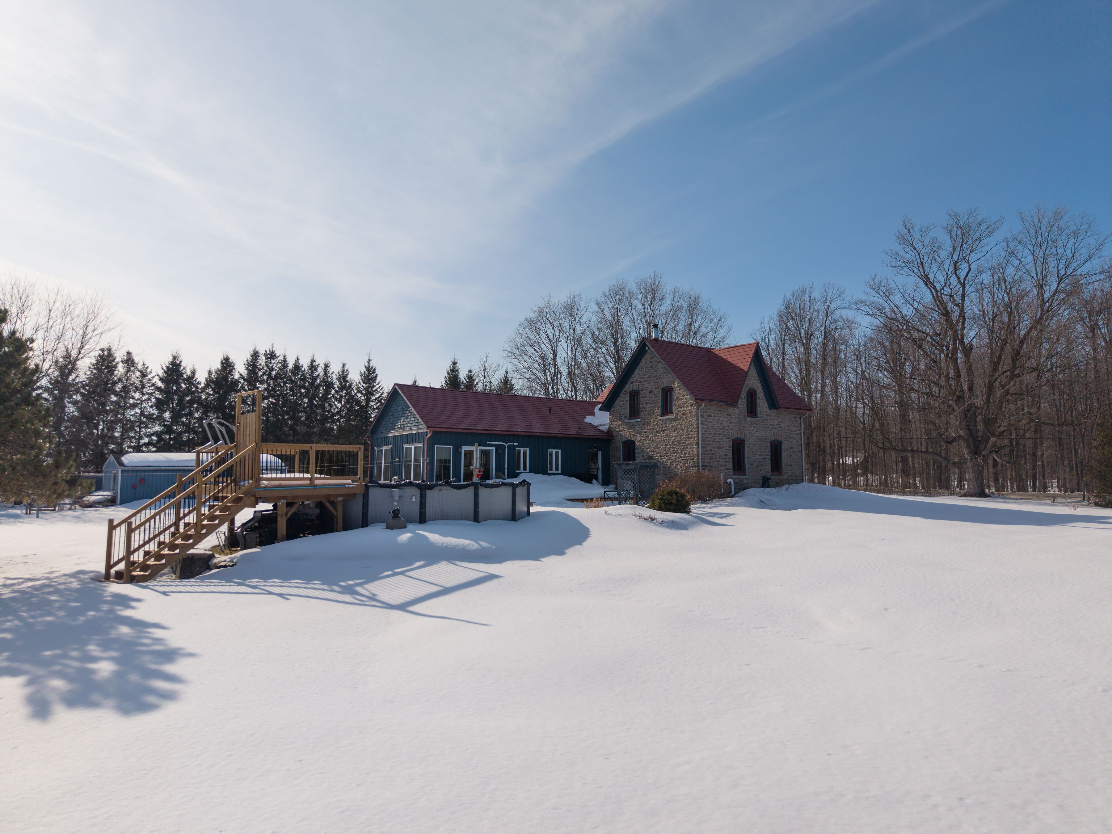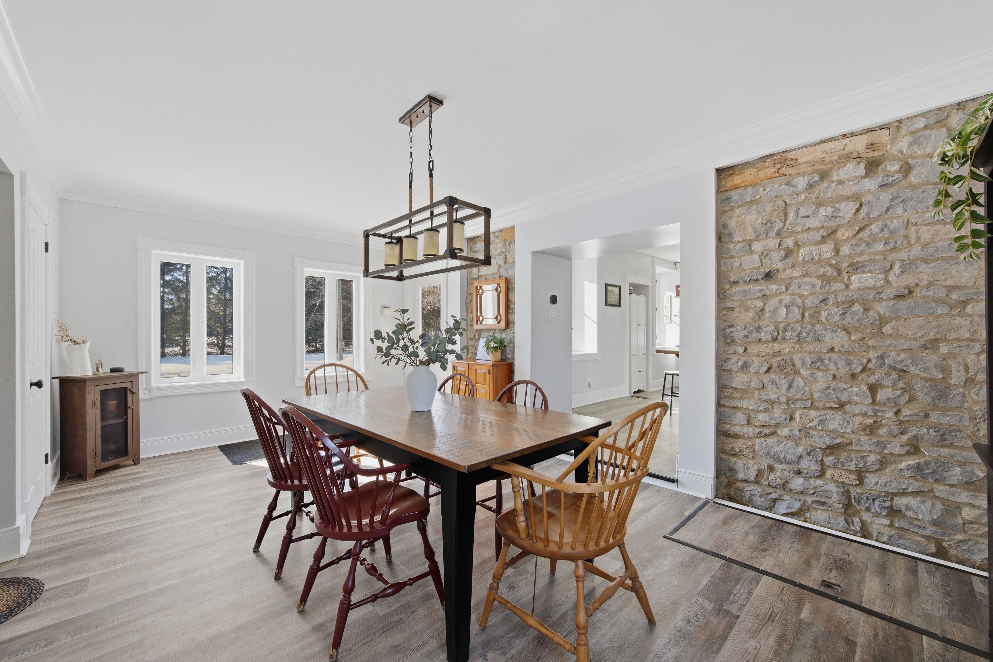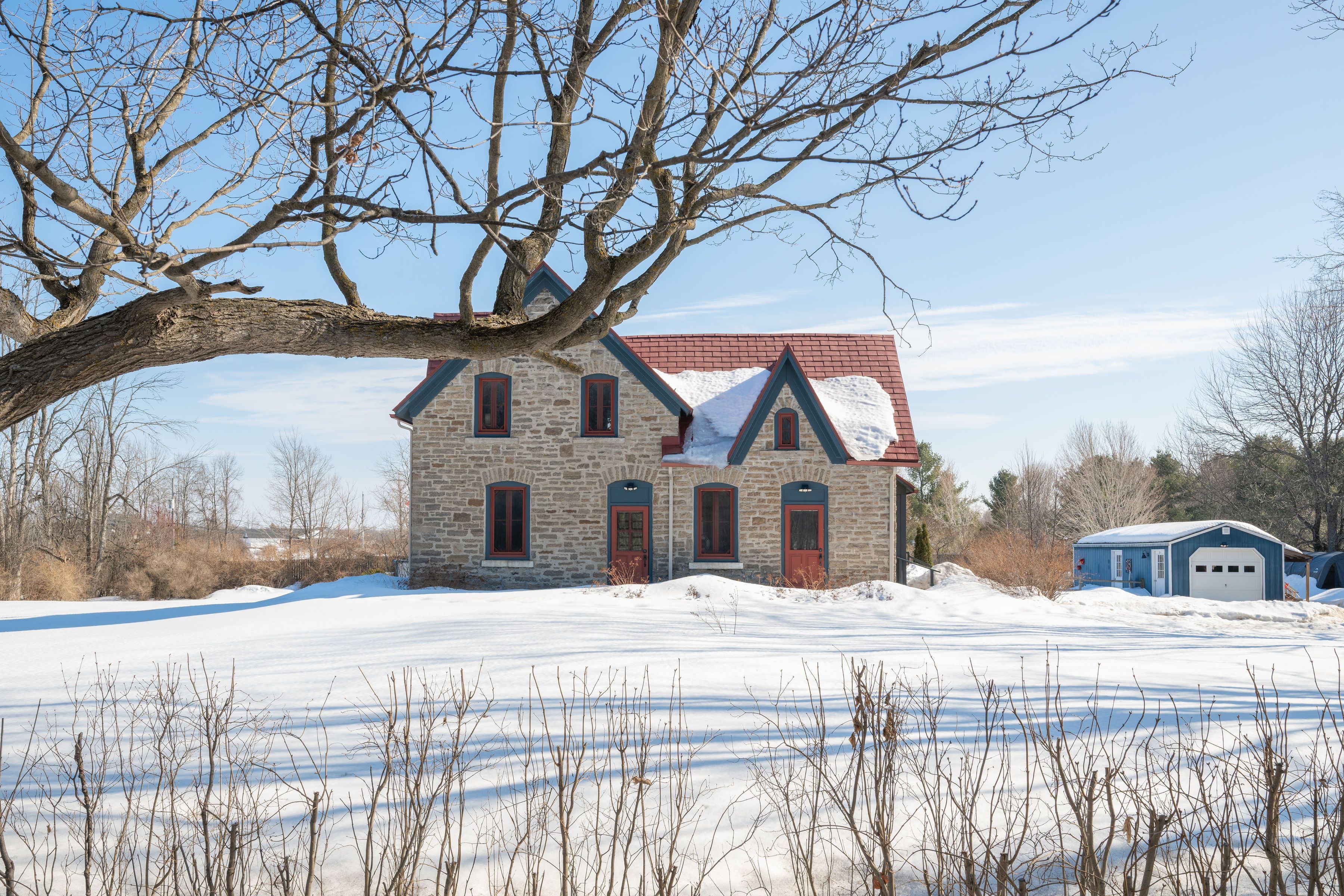 Some homes just have a story. This 1860s stone residence in oxford mills is one of them. Built to last and updated to live in, this four-bedroom home sits on 1. 25 acres with the kind of bones you can't manufacture. Original pine plank floors, deep windowsills, and exposed stone walls that have been standing for over 150 years. It's the real thing. The main floor is functional and warm. A well-used kitchen with butcher block and corian surfaces, a family room anchored by a wood stove, and a sunroom that looks out over established perennial gardens and a neighbouring pond. Upstairs, four bedrooms and a bathroom with a clawfoot tub. Out back, a saltwater pool and deck installed in 2025. Ready for summer without the wait. The attached nanny suite has its own separate entrance, giving family members, guests, or a live-in caregiver genuine independence without leaving the property. A detached garage and a heated studio with hydro, round out the practical side of things. Oxford mills puts you 10 minutes from kemptville and 40 from ottawa, right off highway 416. Rural without being remote. If you've been looking for a heritage property that actually functions for modern life, this is worth a serious look.