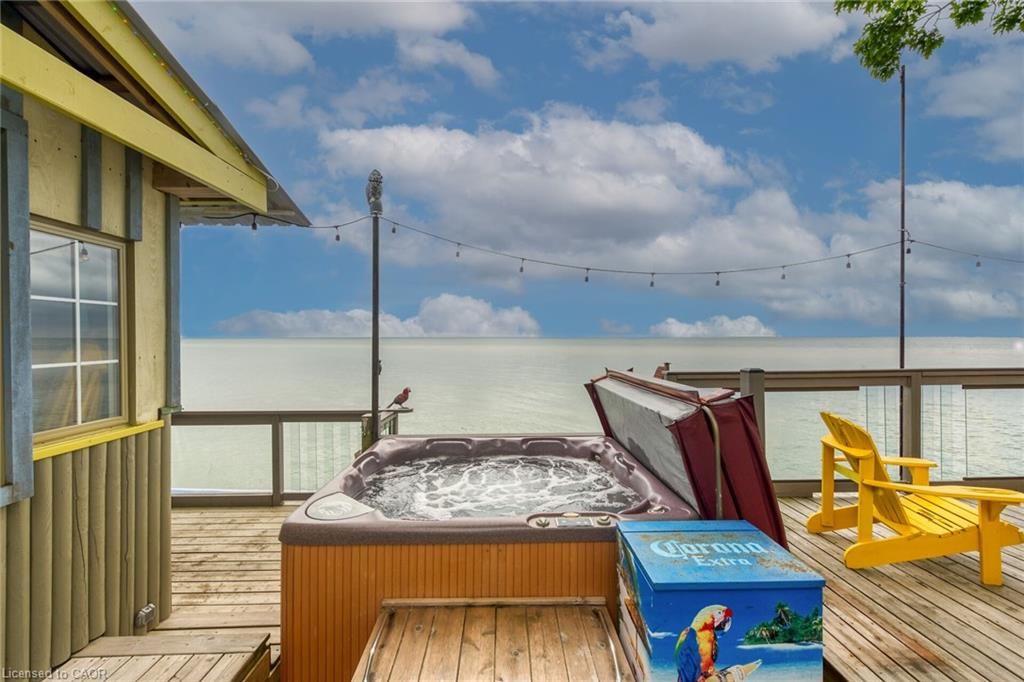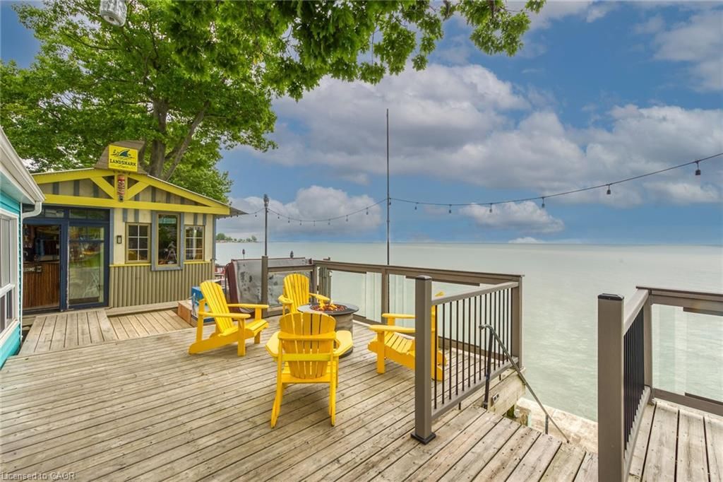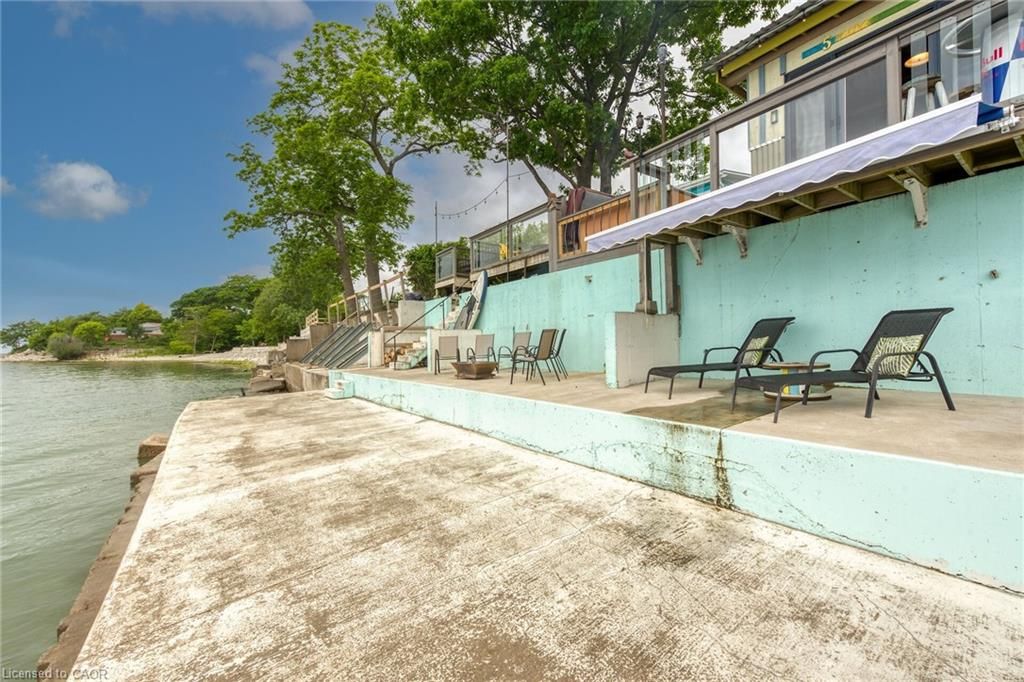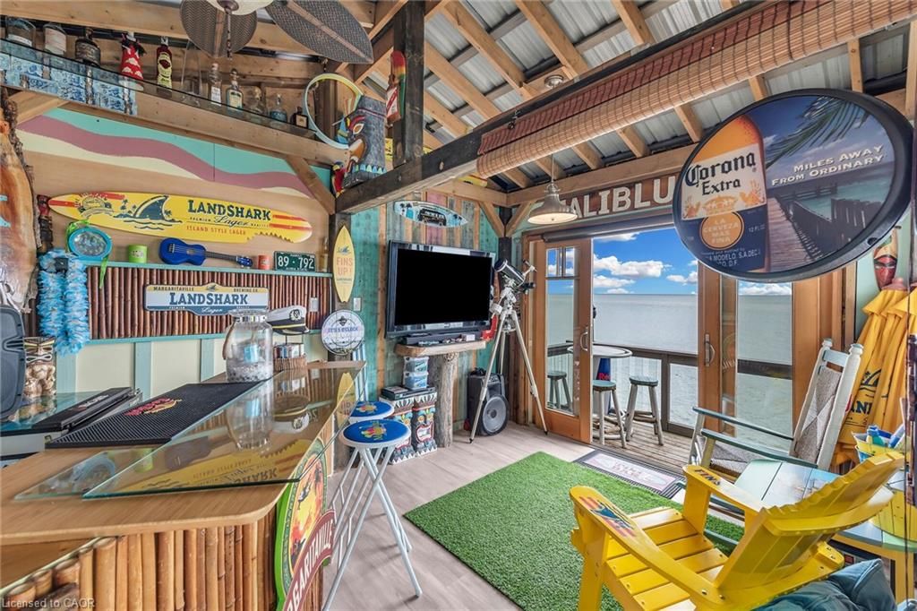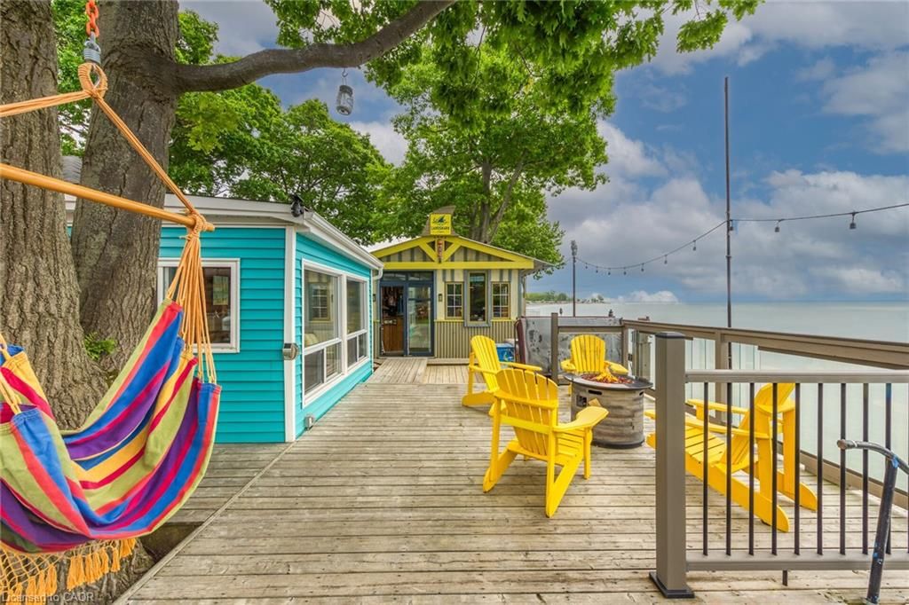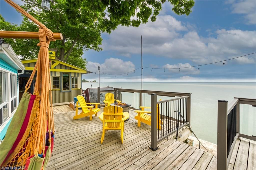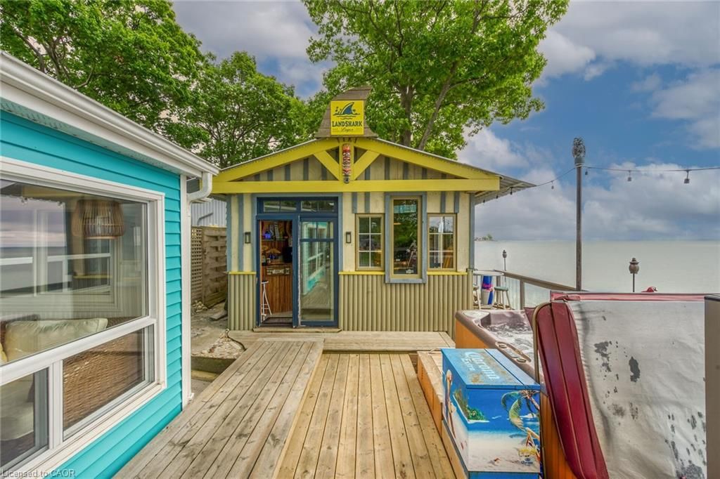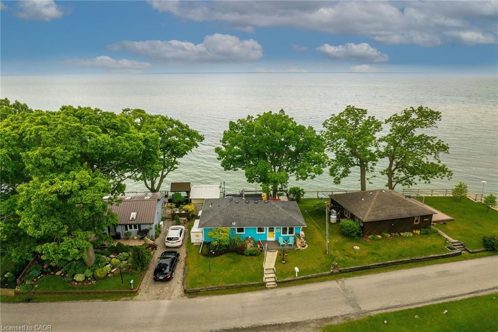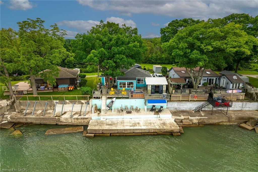 Wasting away in "margaritaville". Discover this waterfront "party-central" venue - and there is good chance you may never leave - as you embrace panoramic water views from beautiful glass panelled deck incs "beachcomber" hot tub, private "jimmy buffet" designed tiki hut offering lake front balcony plus huge concrete entertainment area mounted on re-built concrete break-wall incs built-in steps leading to sand beach. Beachie themed year round cottage showcases modern kitchen sporting ample cabinetry, tile back-splash, live-edge wood breakfast bar, ss appliances, dinette, adjacent living room ftrs p/g "napoleon" fireplace & sliding door deck walk-out - seamlessly flows to sun-splashed family room - completed with 3 bedrooms & 4pc bath. Desired north side lot (separate pin#) incs 12x20 metal clad garage w/concrete flooring, 6x8 multi-purpose bunkie/building boasts retractable loft enjoying solar lighting + concrete double parking pad. Continues extras - ductless heat/cool hvac-2022, standby generator/panel-2022, roof-2013, windows-2018, kitchen/bath flooring-2024, interior doors/hardware-2024, spray foam insulated under-floor-2022, cinder block foundation, holding tank, cistern, 2nd cistern, 100 hydro, fibre internet & majority of furnishing! 50 mins south of hamilton - 15 mins west of dunnville. Experience "key-west" north!